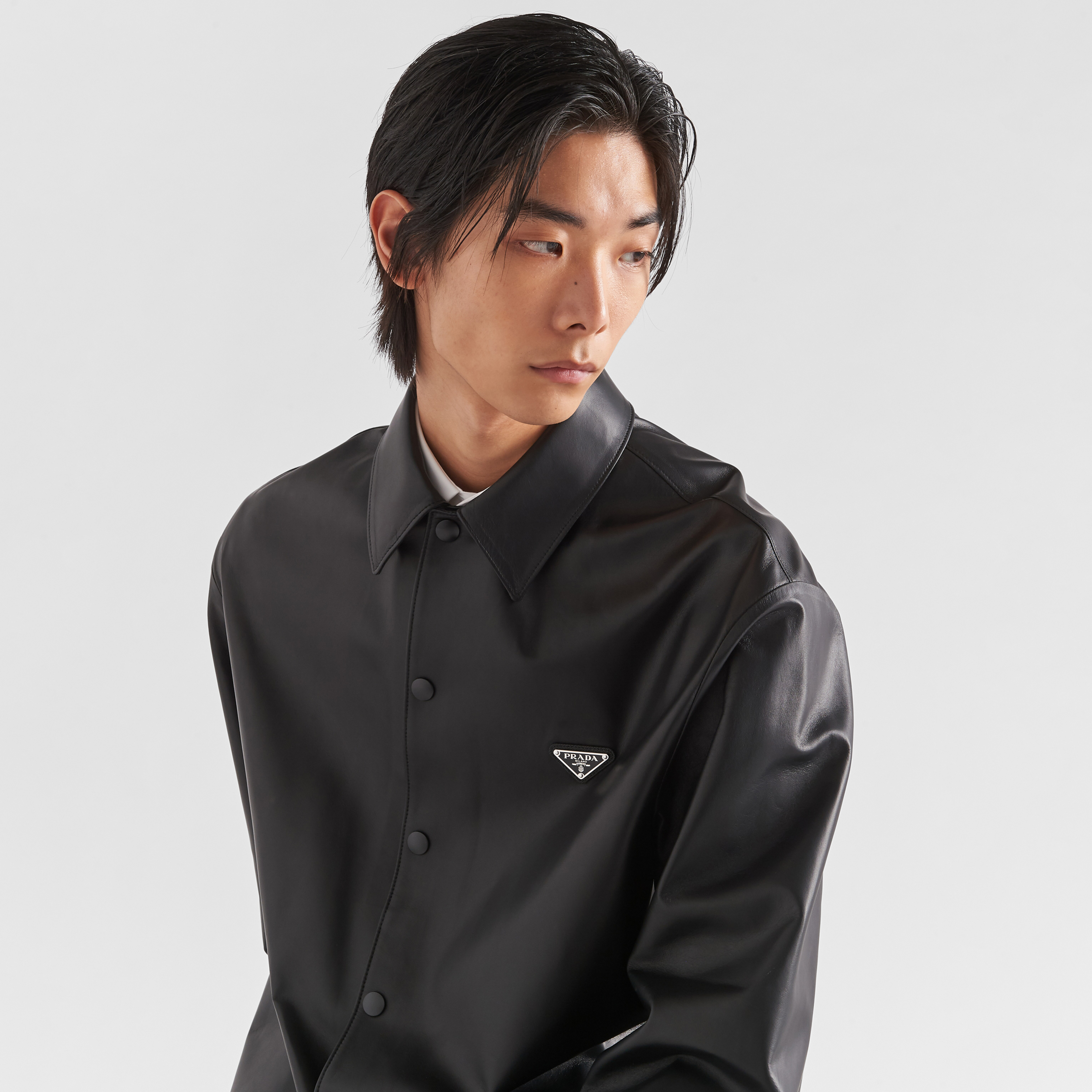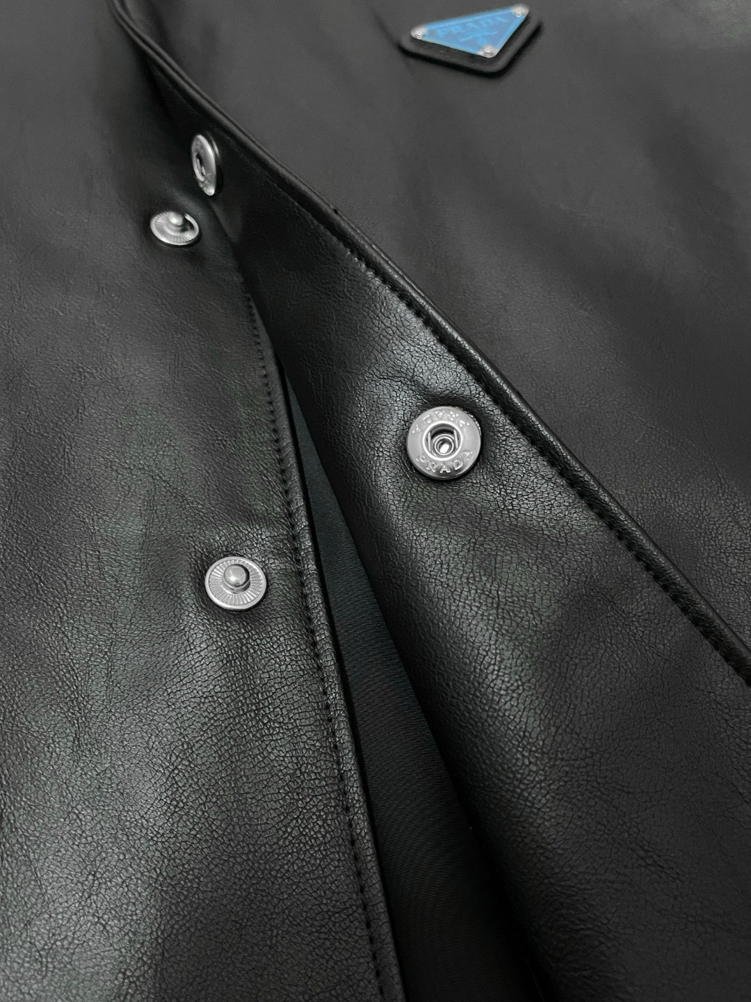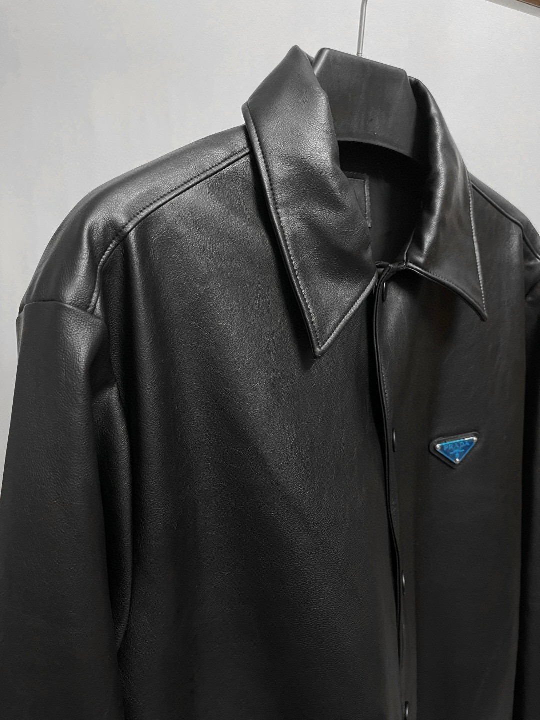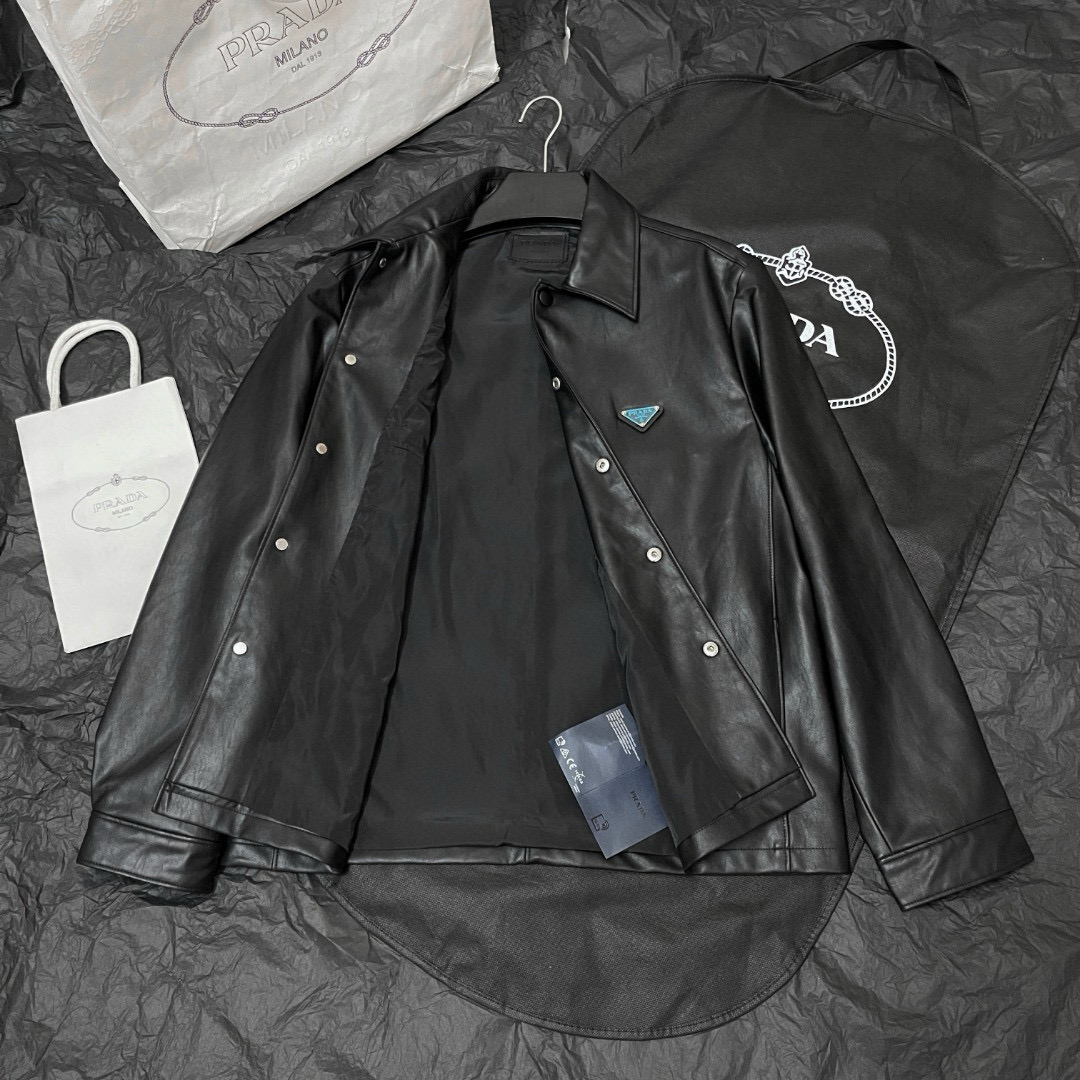 NIGO Prada Men's Fall/Winter Fashion Casual Solid Color Lapel Single Breasted Leather Jacket With Logo Triangle Emblem Jacket #nigo79343