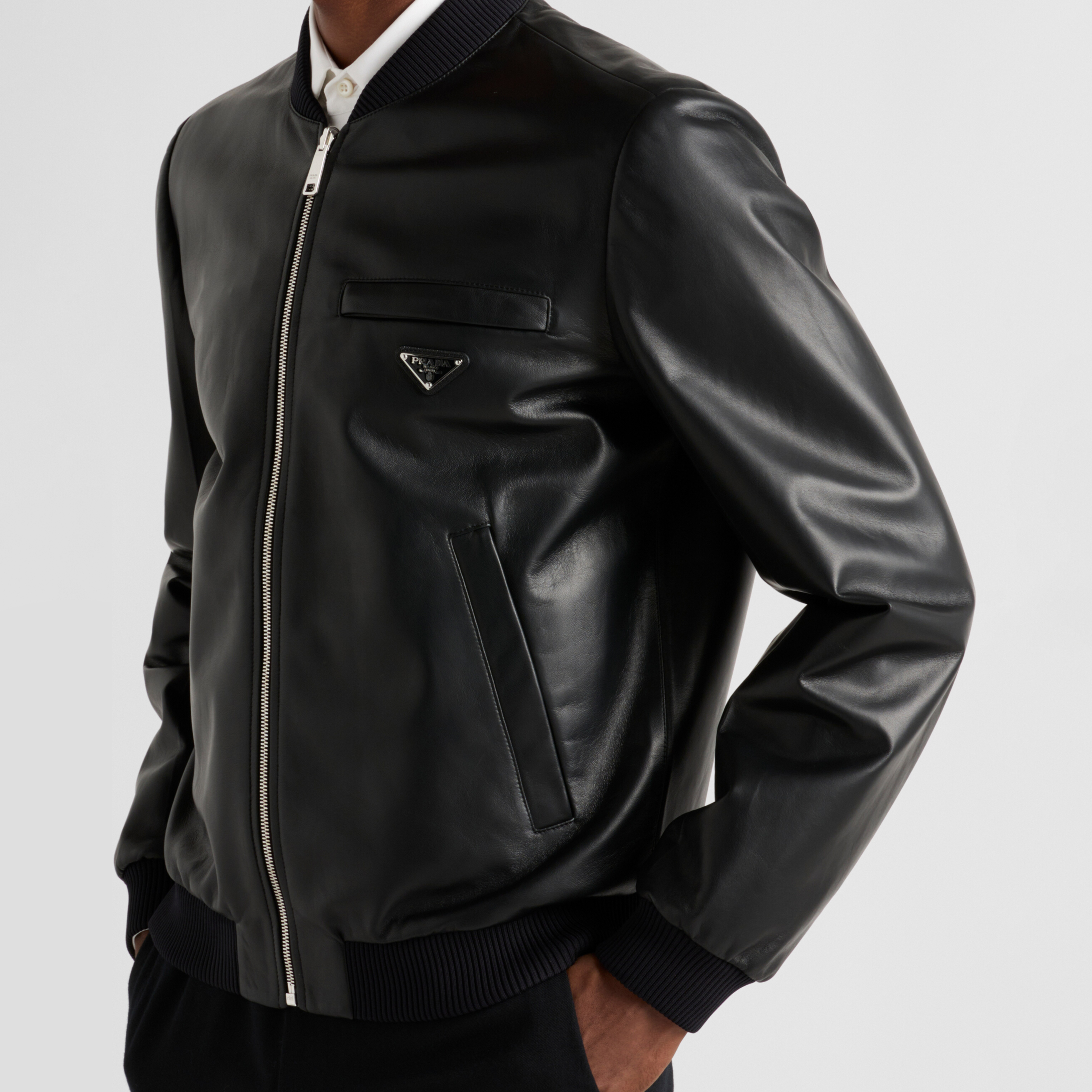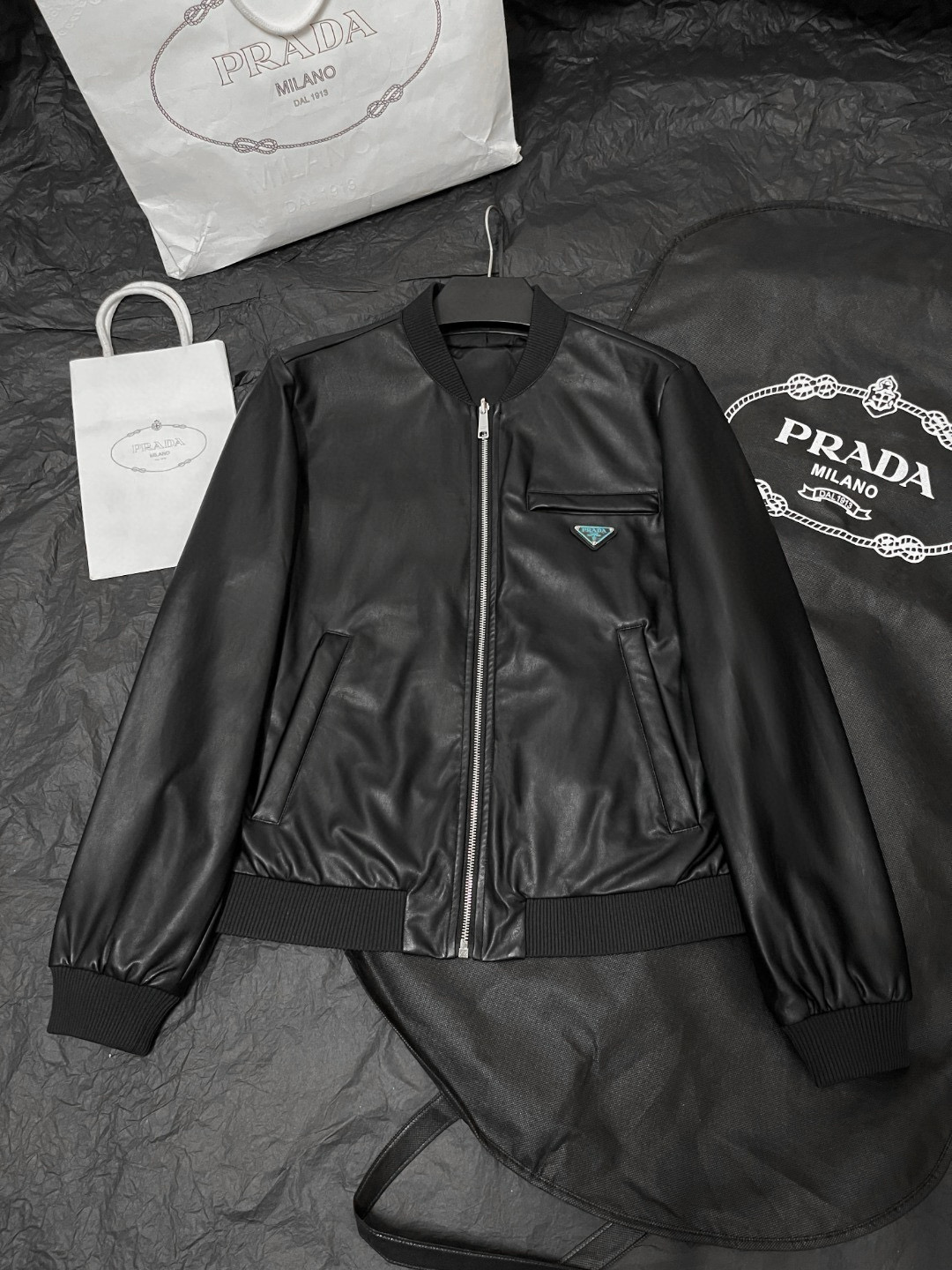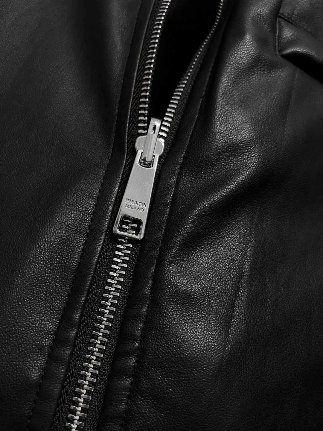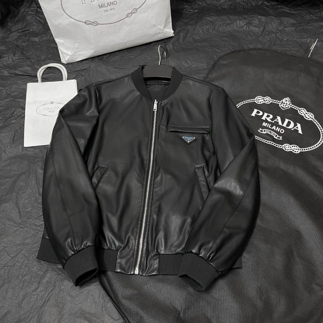 NIGO Prada Men's Fall/Winter Fashion Classic Solid Color Leather Crew Neck Zip Up Reversible Leather Plain Weave Jacket #nigo79345