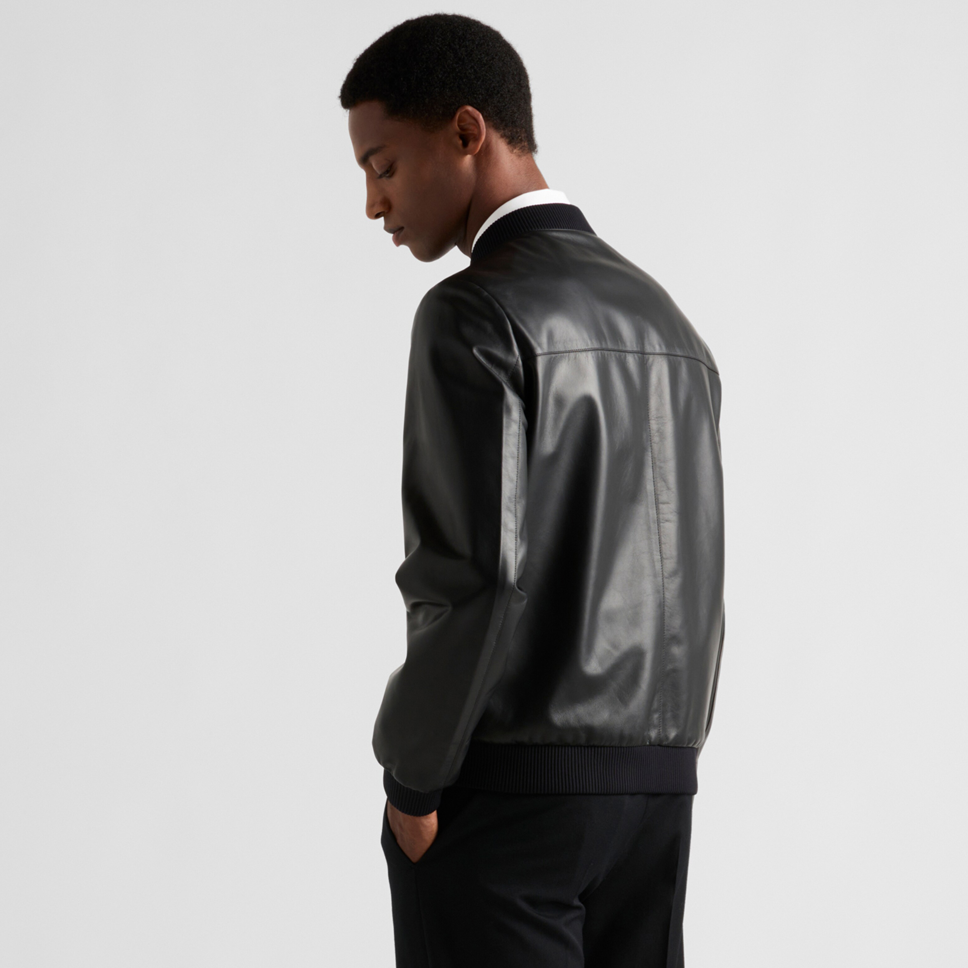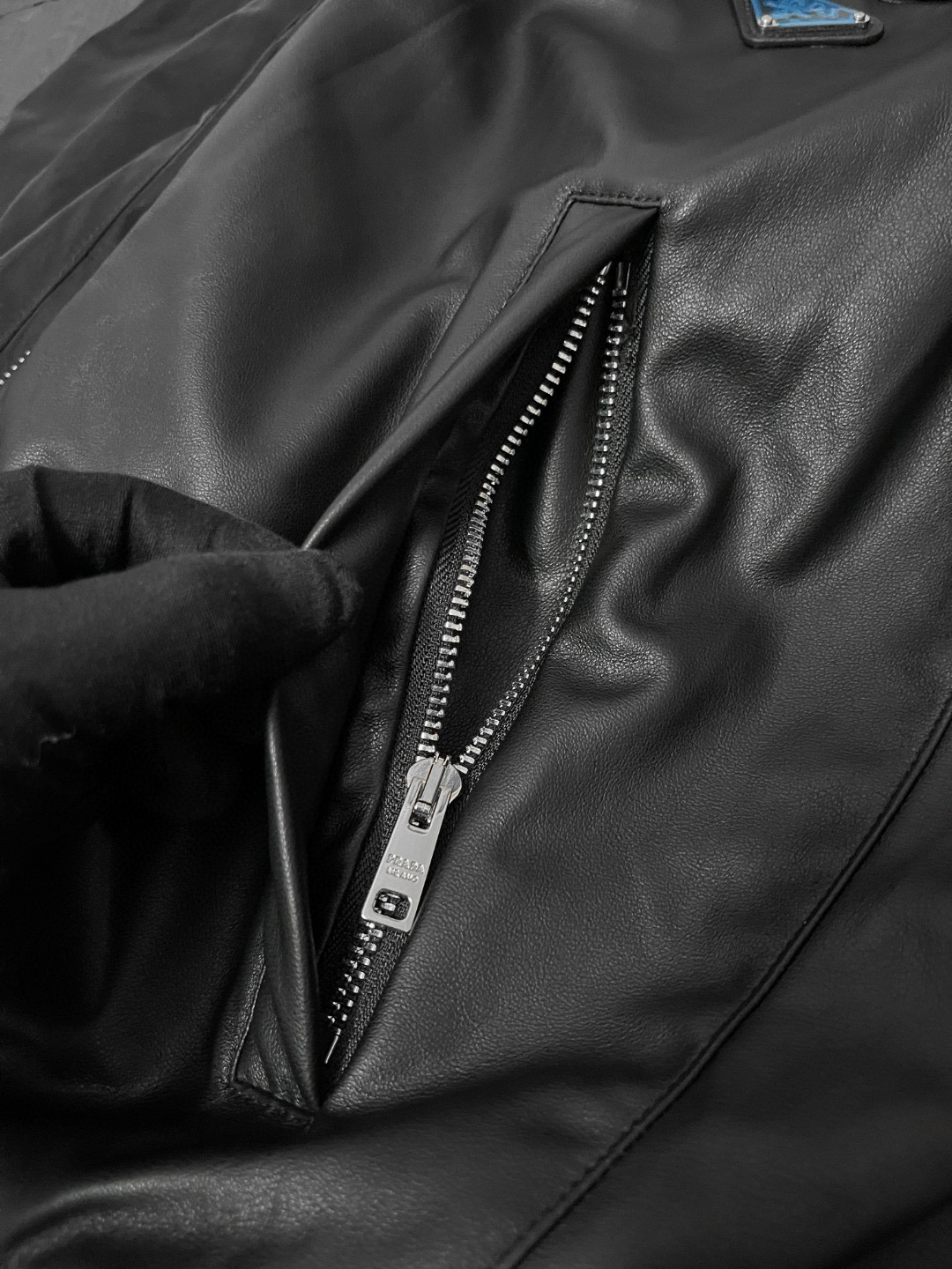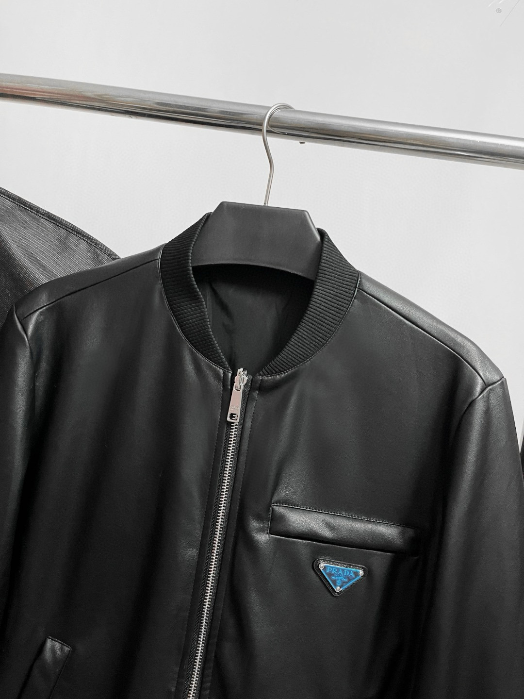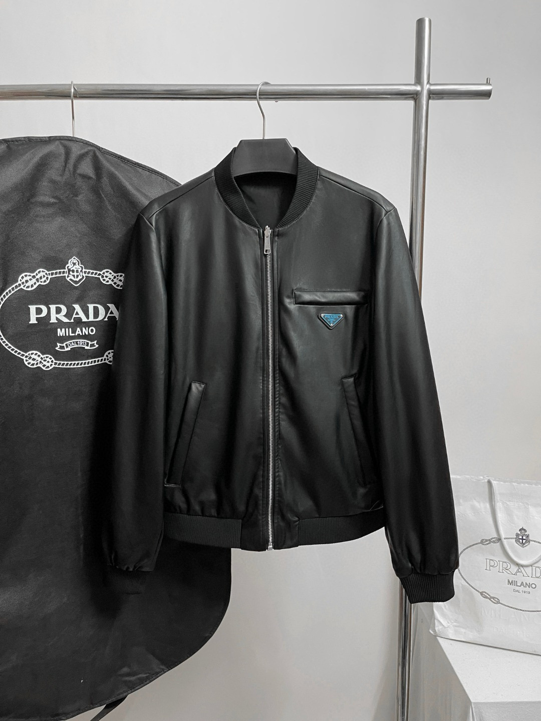 NIGO Prada Men's Fall/Winter Fashion Classic Solid Color Leather Crew Neck Zip Up Reversible Leather Plain Weave Jacket #nigo79345