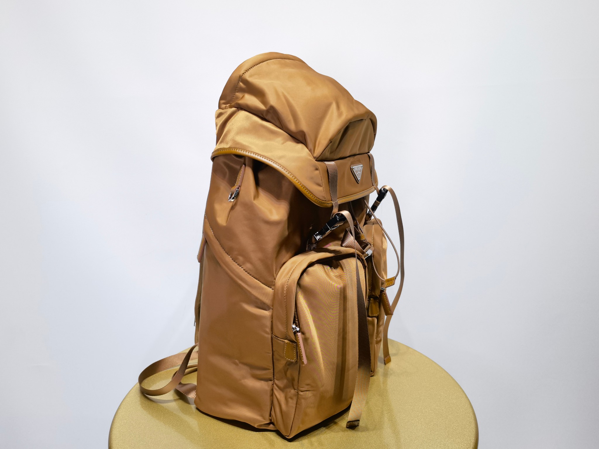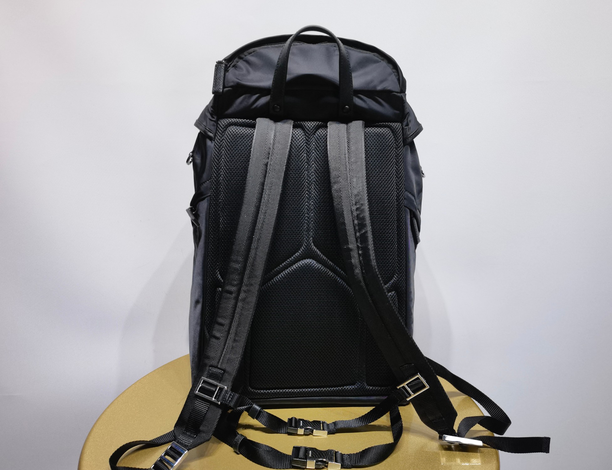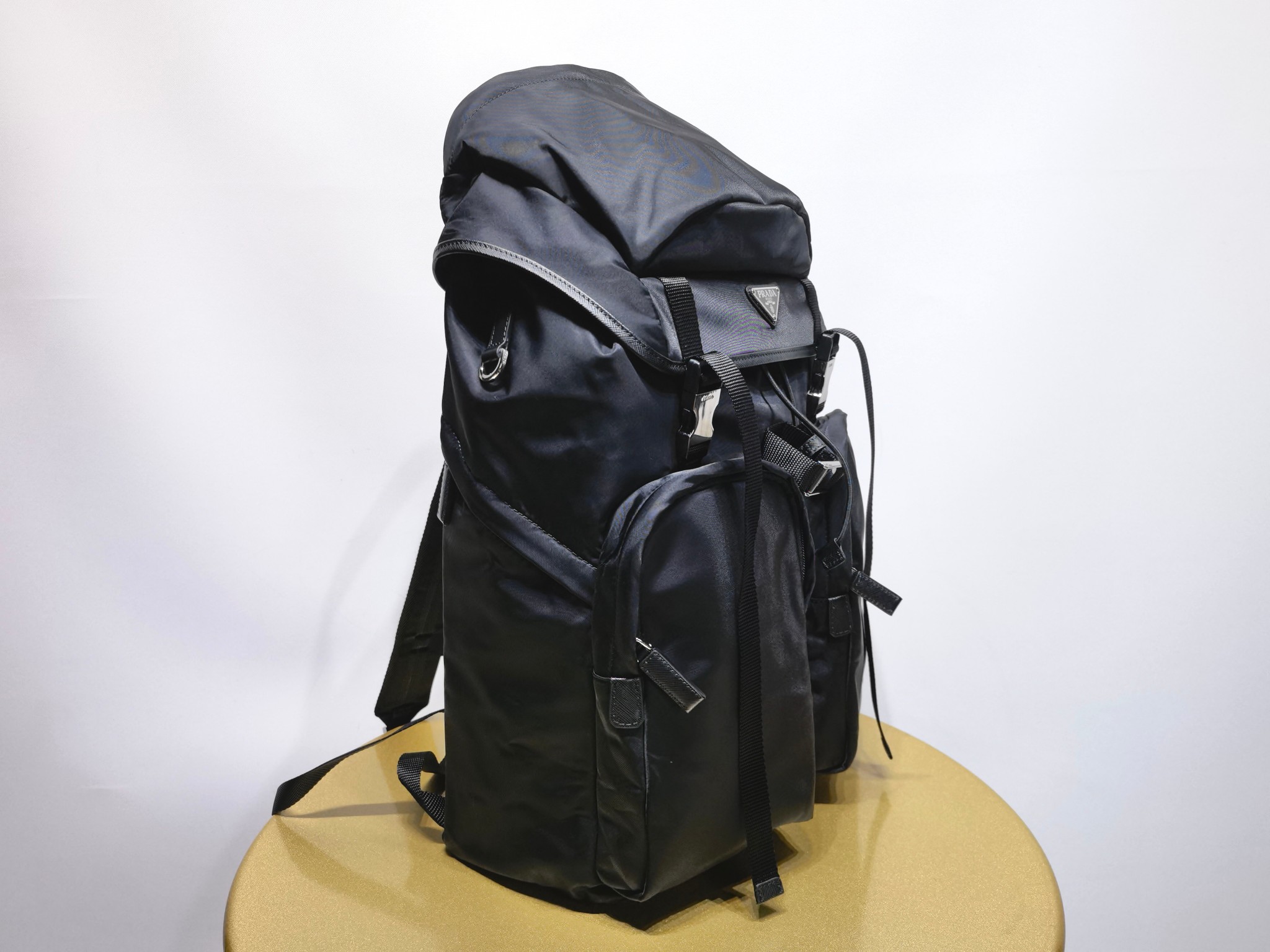 NIGO Prada Men's Solid Color Metal Triangle Label Flap Closure Backpack Recycled Nylon with Leather Shoulder Travel Bag Bags #nigo74382