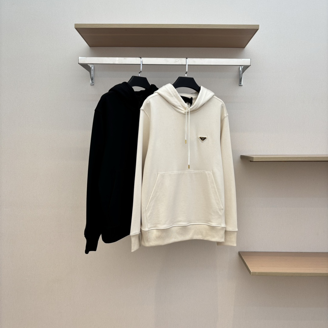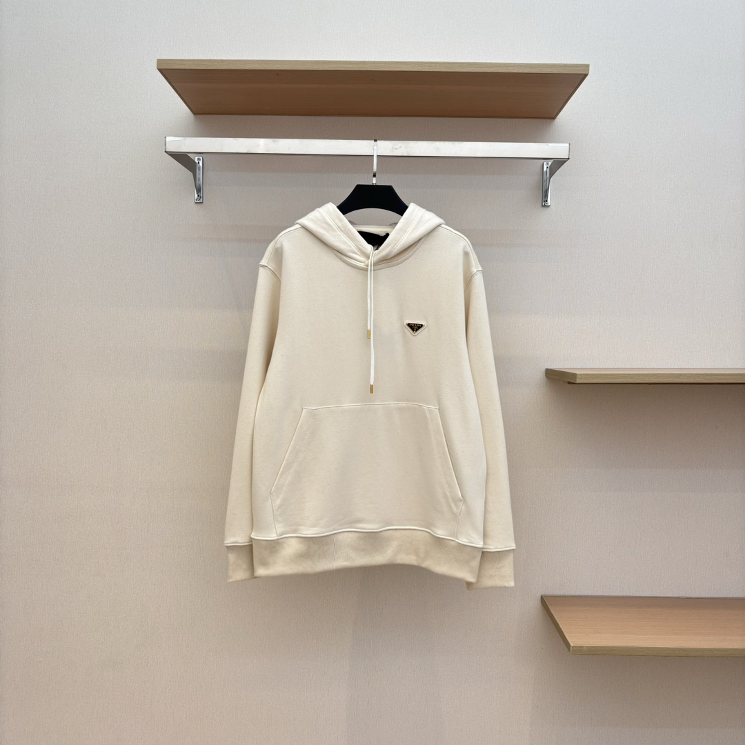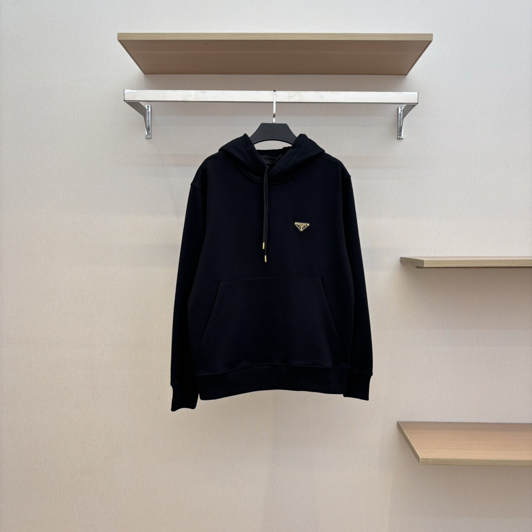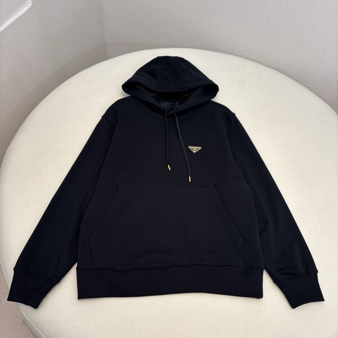 NIGO Prada Men's Spring and Autumn Solid Color Logo Triangle Label Hooded Loose Long Sleeve Sweatshirt #nigo74295