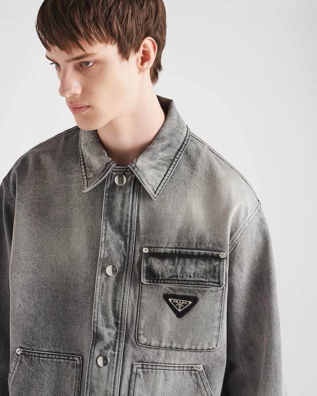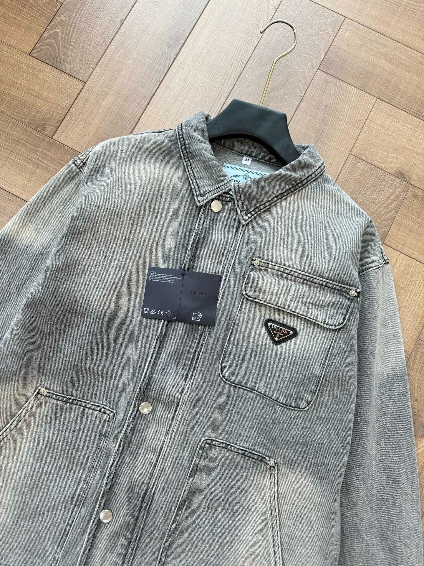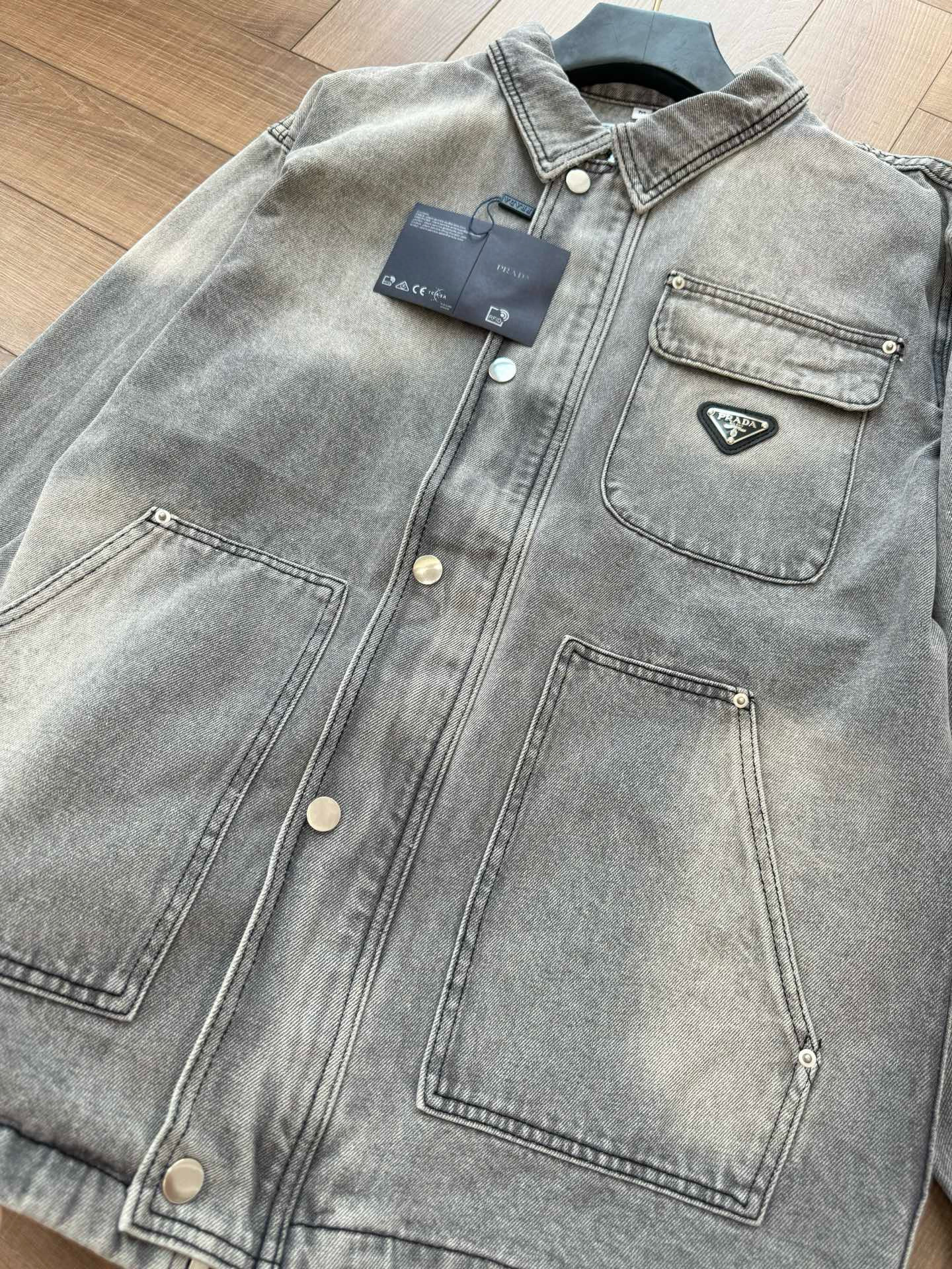 NIGO Prada Men's Spring/Autumn Solid Color Triangle Logo Single-Breasted Casual Denim Jacket #nigo77989