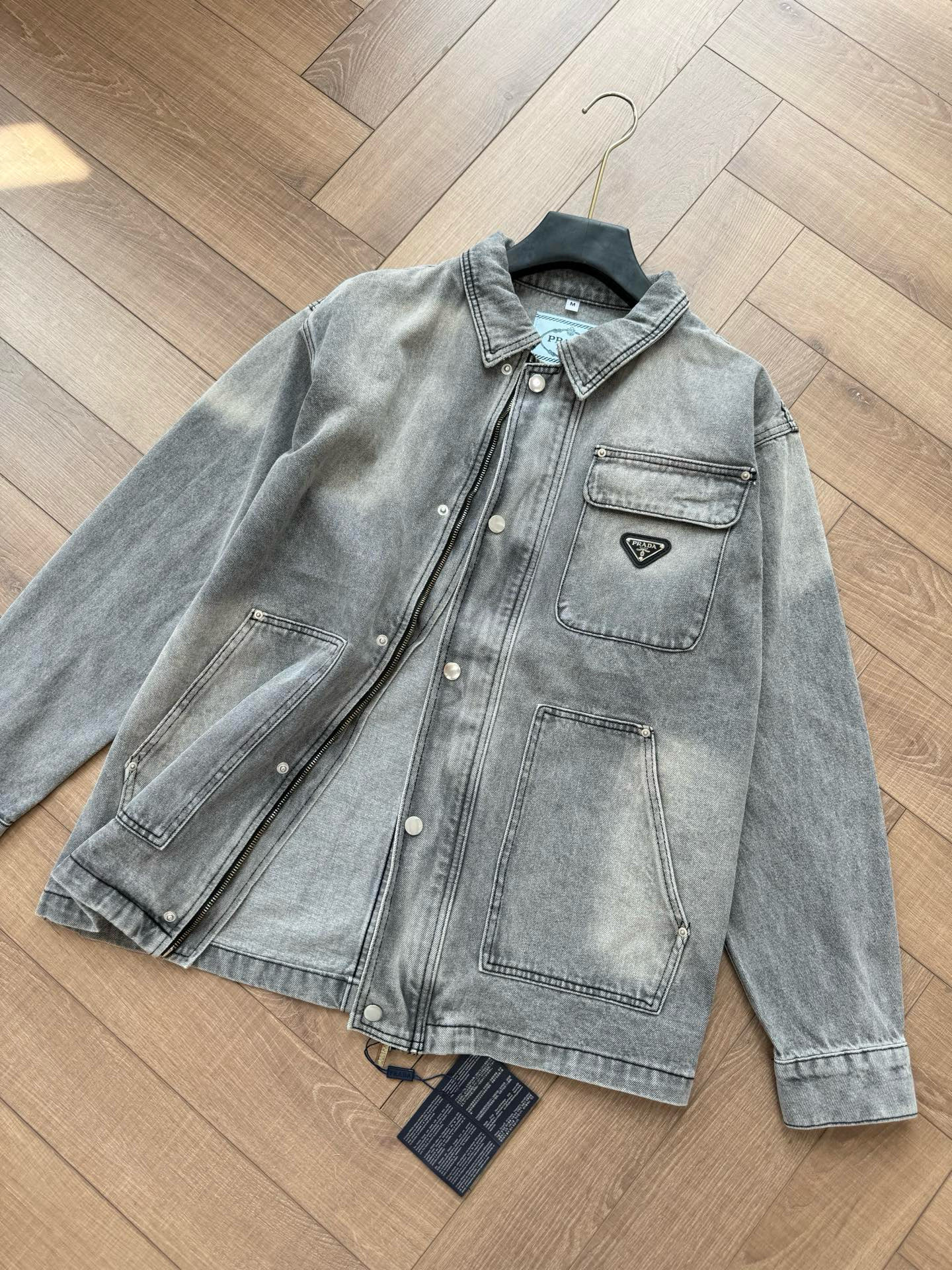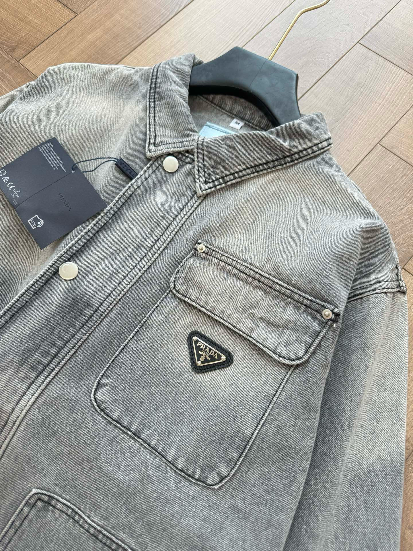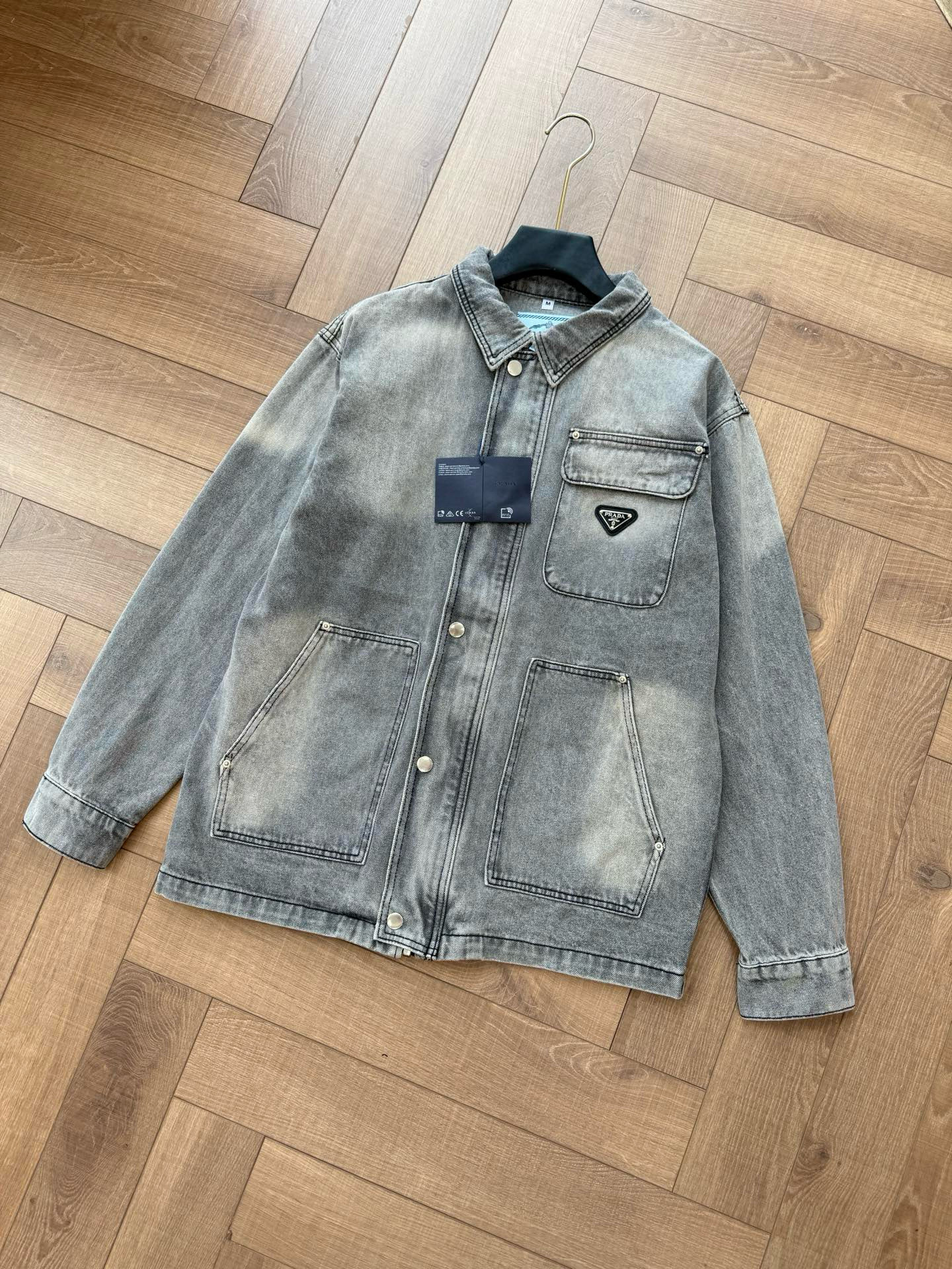 NIGO Prada Men's Spring/Autumn Solid Color Triangle Logo Single-Breasted Casual Denim Jacket #nigo77989