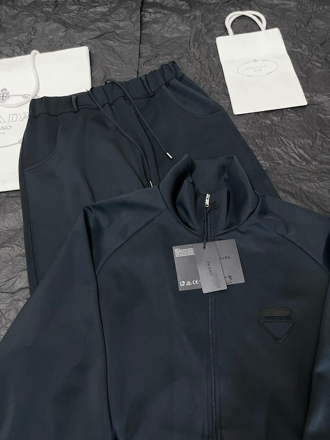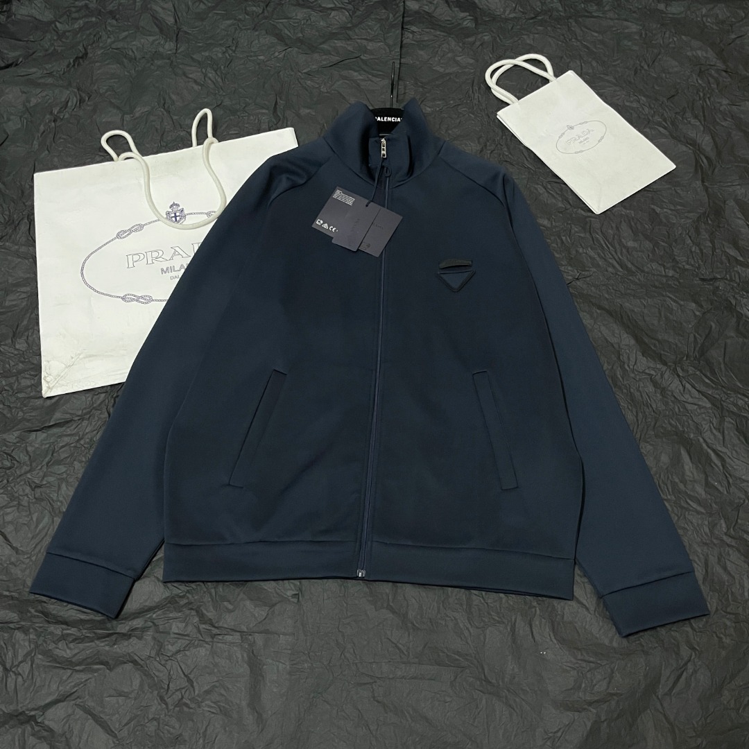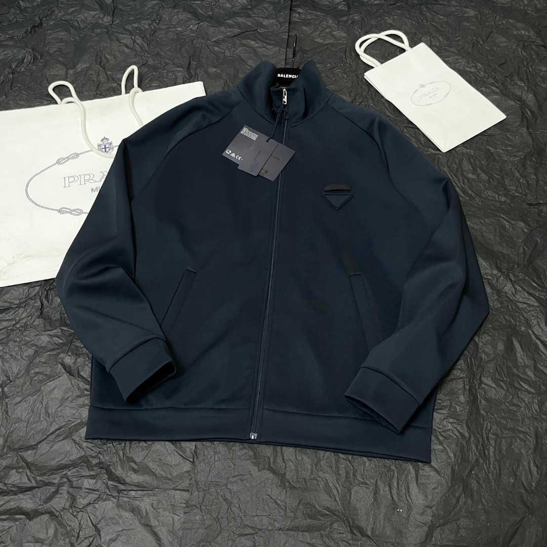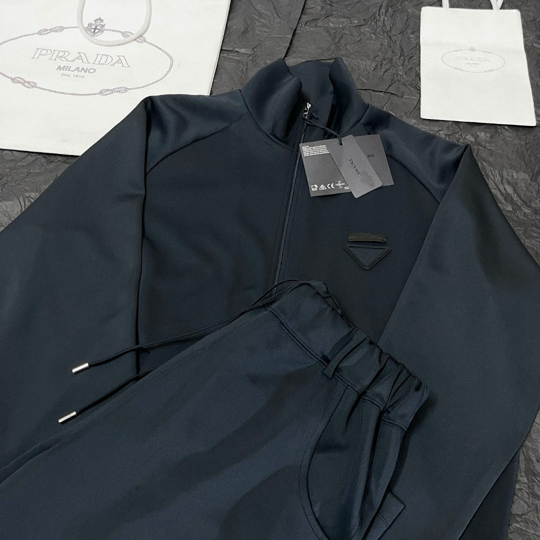 NIGO Prada Men's Spring/Fall Fashion Casual Solid Color Stand Up Collar Zipper Fabric Jacket Solid-Color Elastic Waist Casual Suit Pants Suit Set #nigo78677