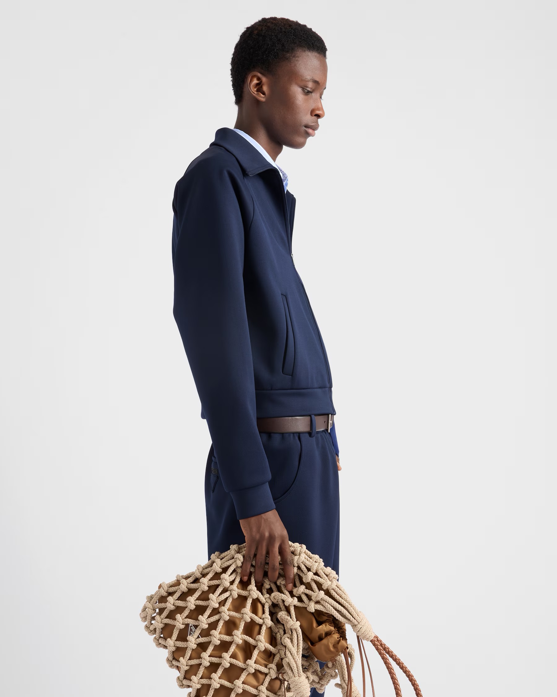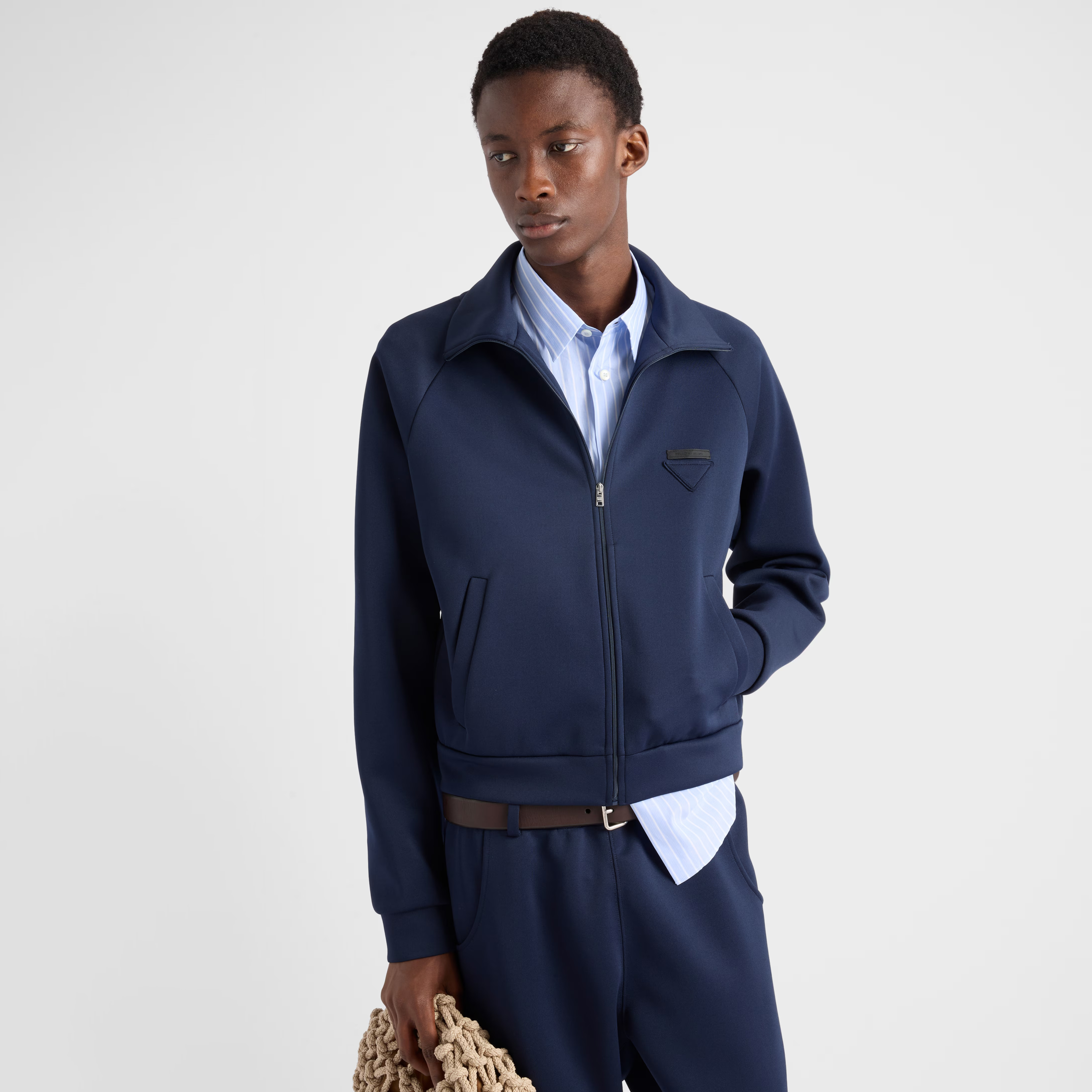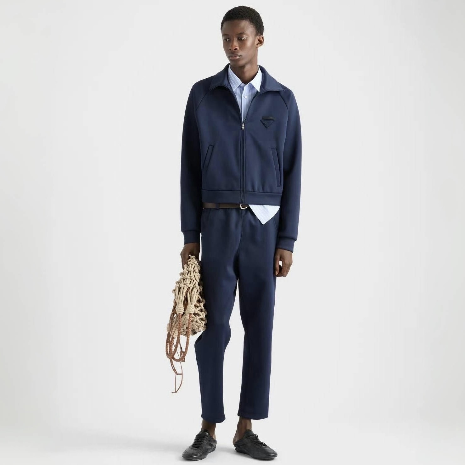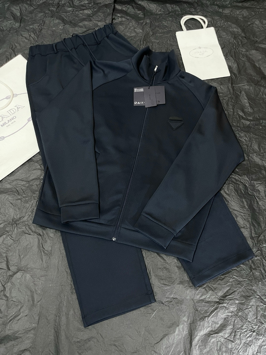 NIGO Prada Men's Spring/Fall Fashion Casual Solid Color Stand Up Collar Zipper Fabric Jacket Solid-Color Elastic Waist Casual Suit Pants Suit Set #nigo78677