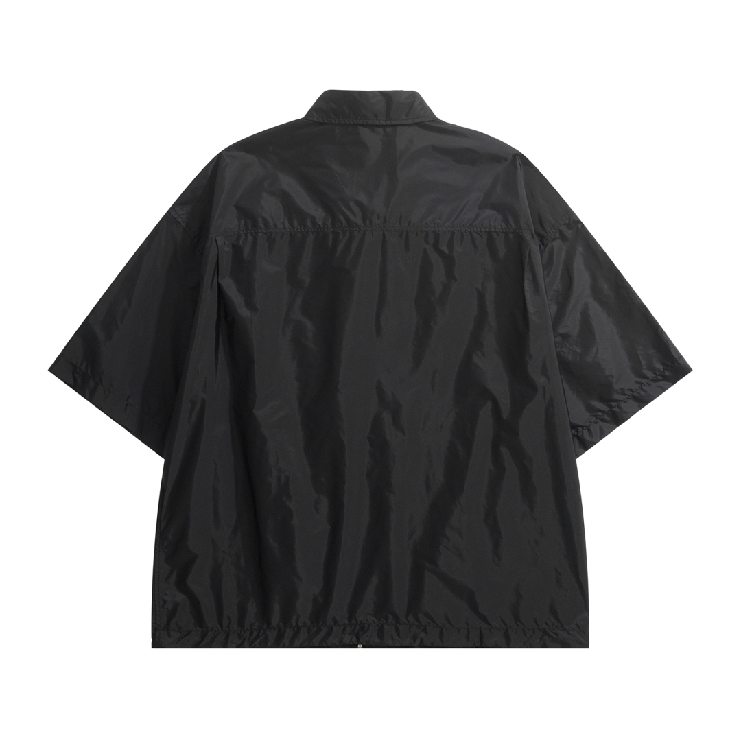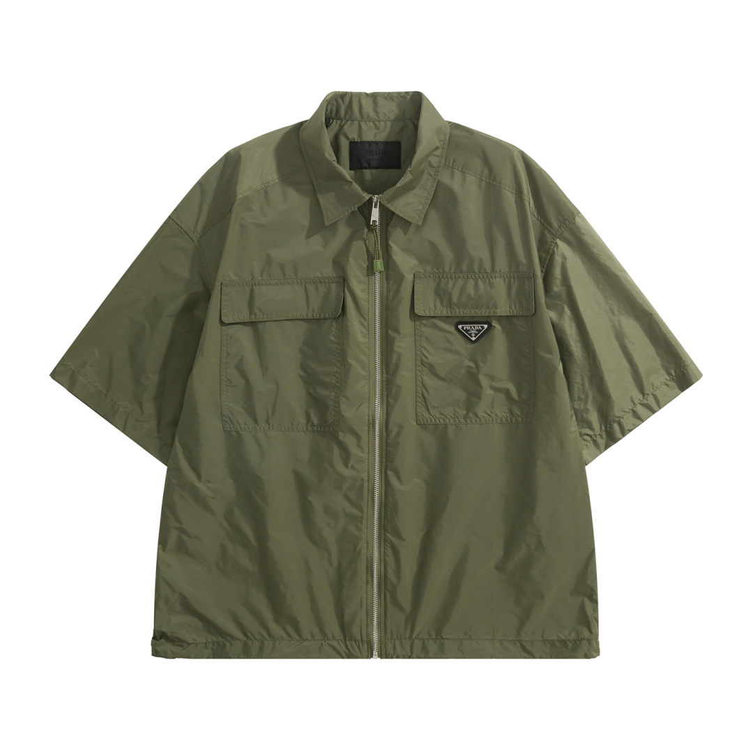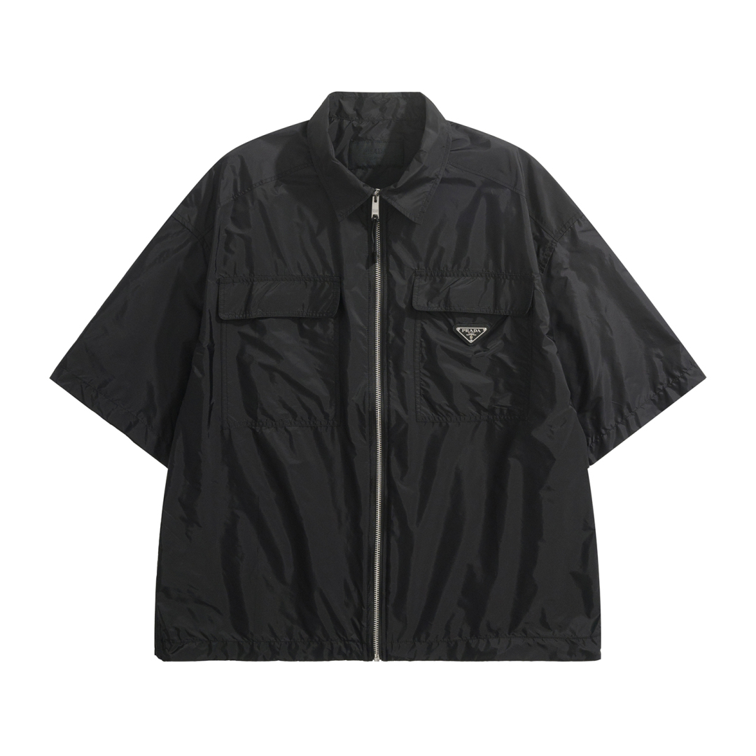 NIGO Prada Men's Summer Fashion Casual Solid Color Collared Zipper Enamel Triangle Metal Logo Short Sleeve Lightweight Re-Nylon Shirt #nigo78671