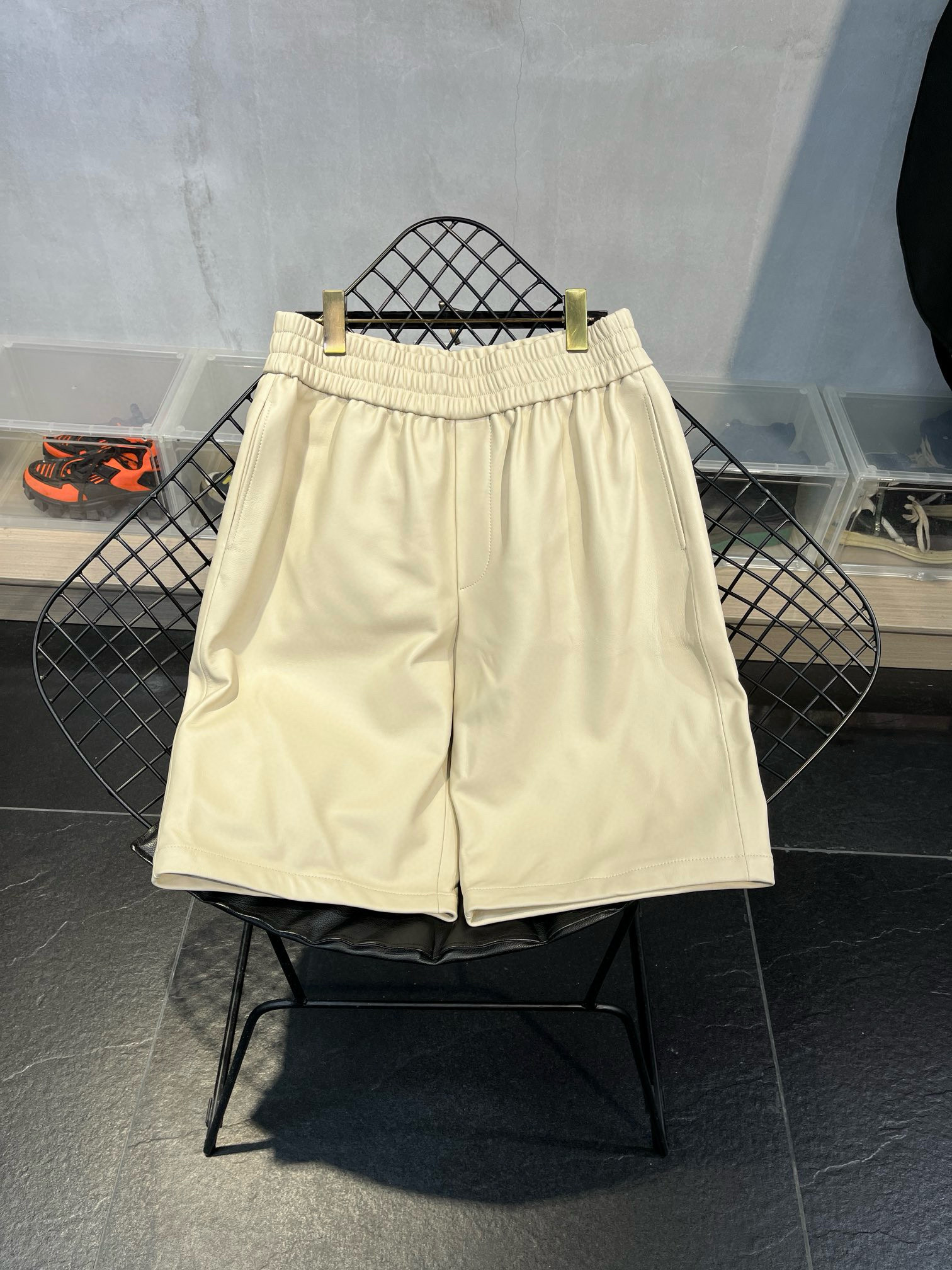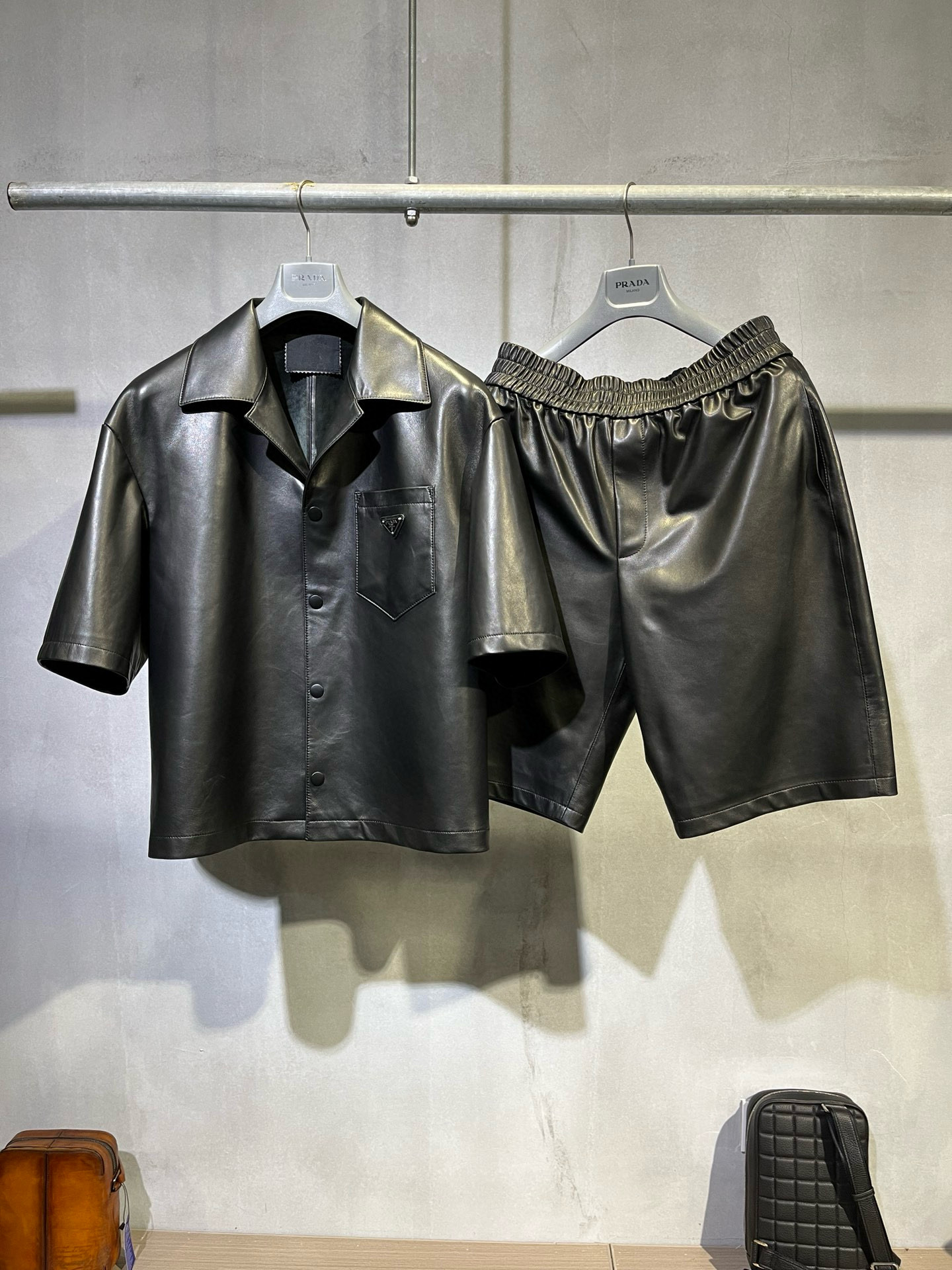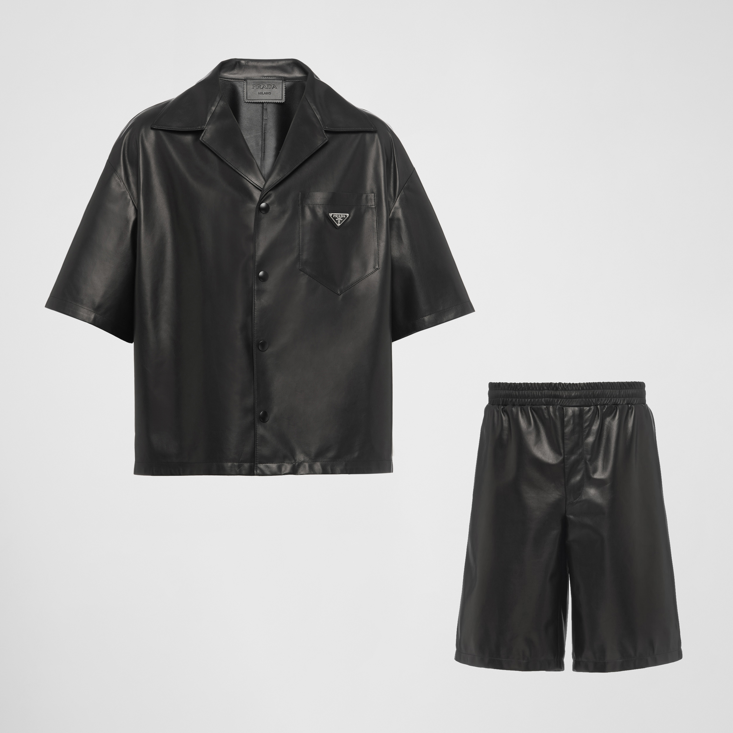 NIGO Prada Men's Summer Solid Color Leather Single Breasted Short Sleeve Shirt Stretch Shorts Set Suit #nigo98895
