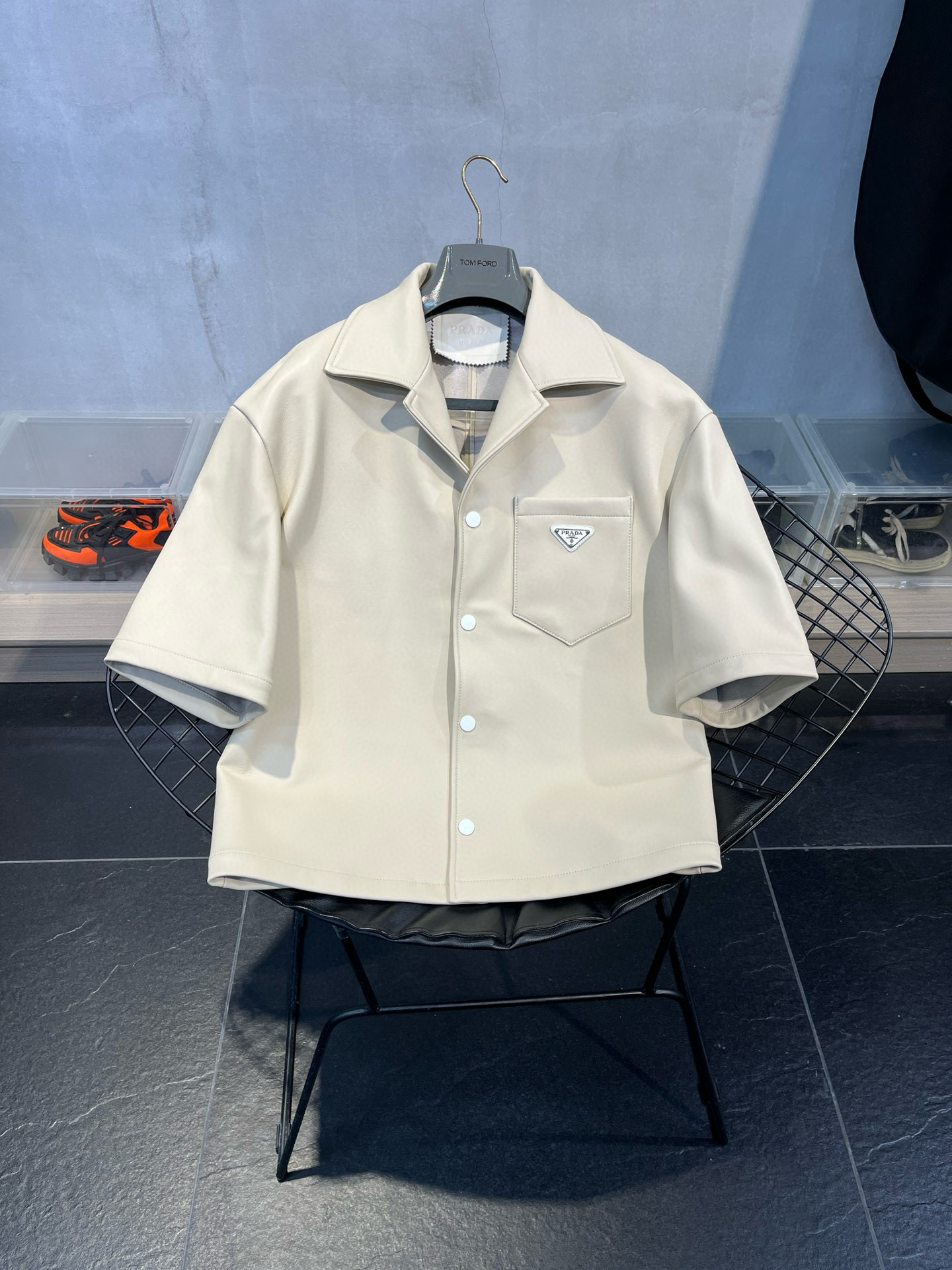 This Prada clothing showcases the brand's exceptional craftsmanship and attention to detail. Crafted from premium leather, this piece combines timeless luxury with modern style.