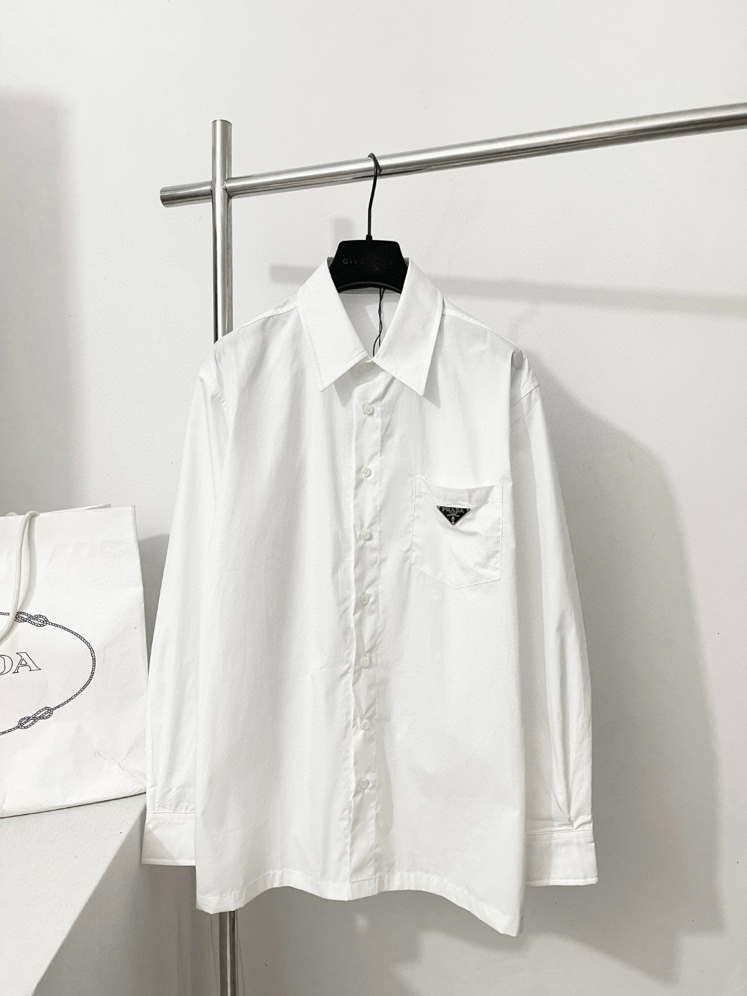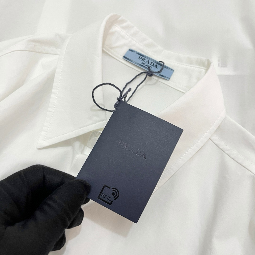 NIGO Prada Men’s Women's Spring/Summer Solid Color Cotton Triangle Label Pocket Single Button Long Sleeve Shirt #nigo77372