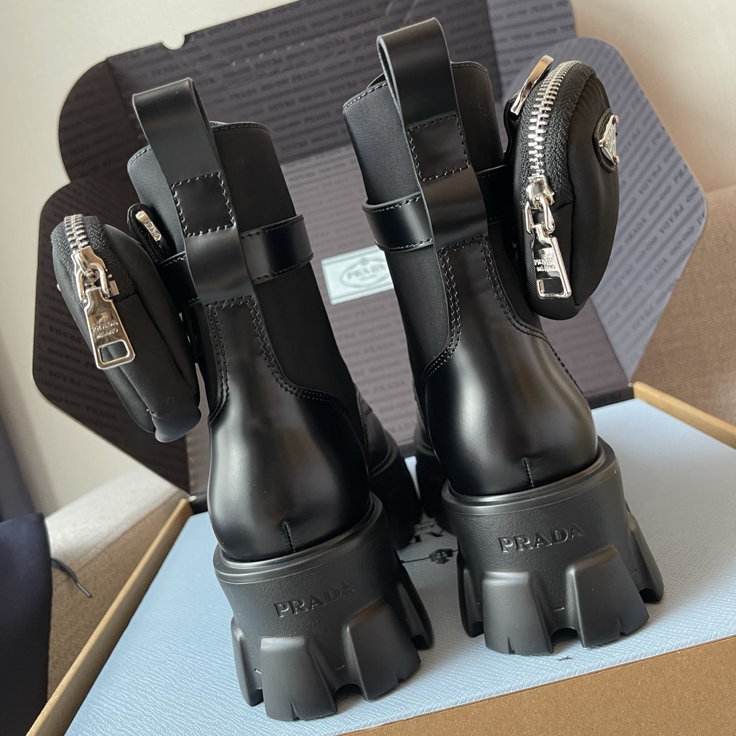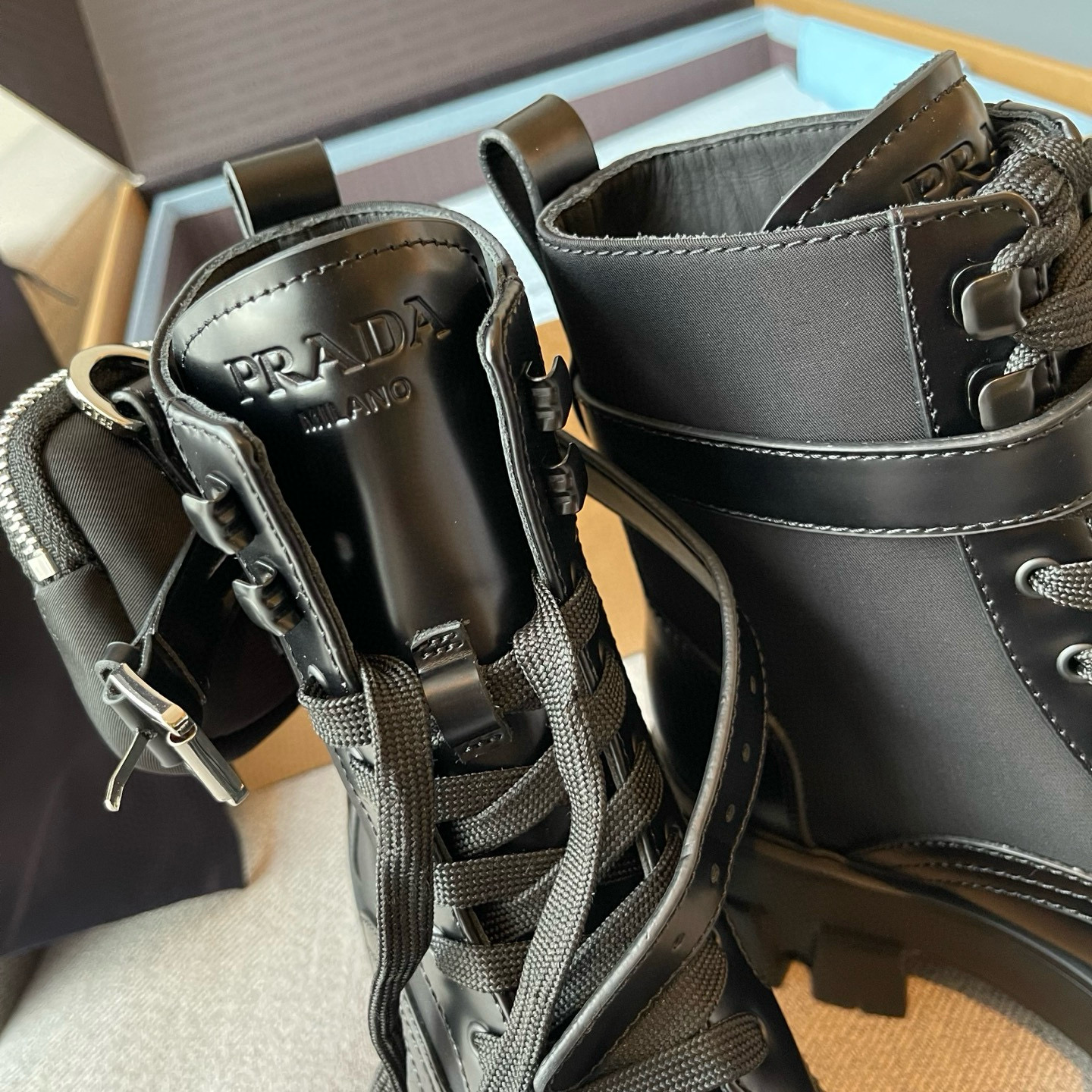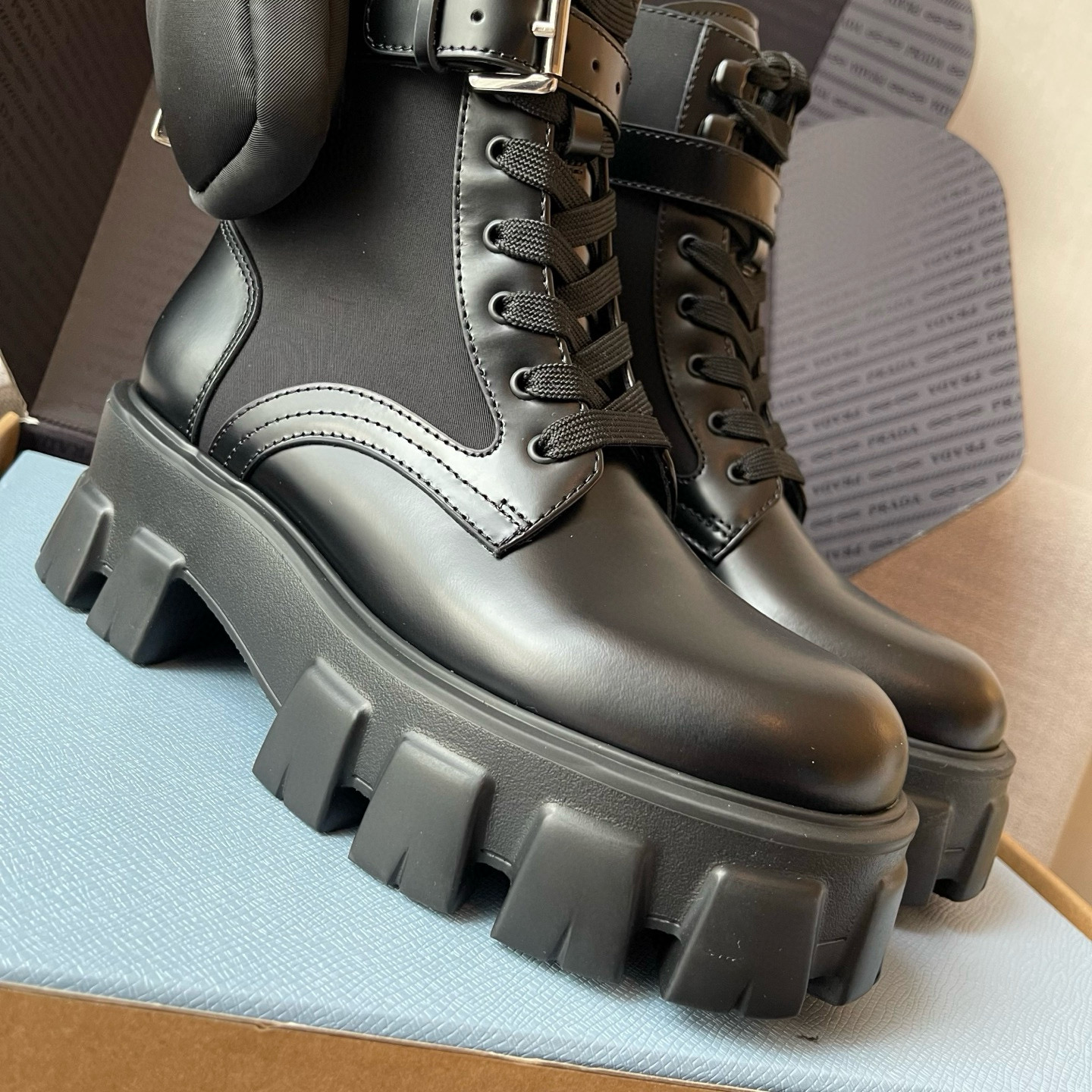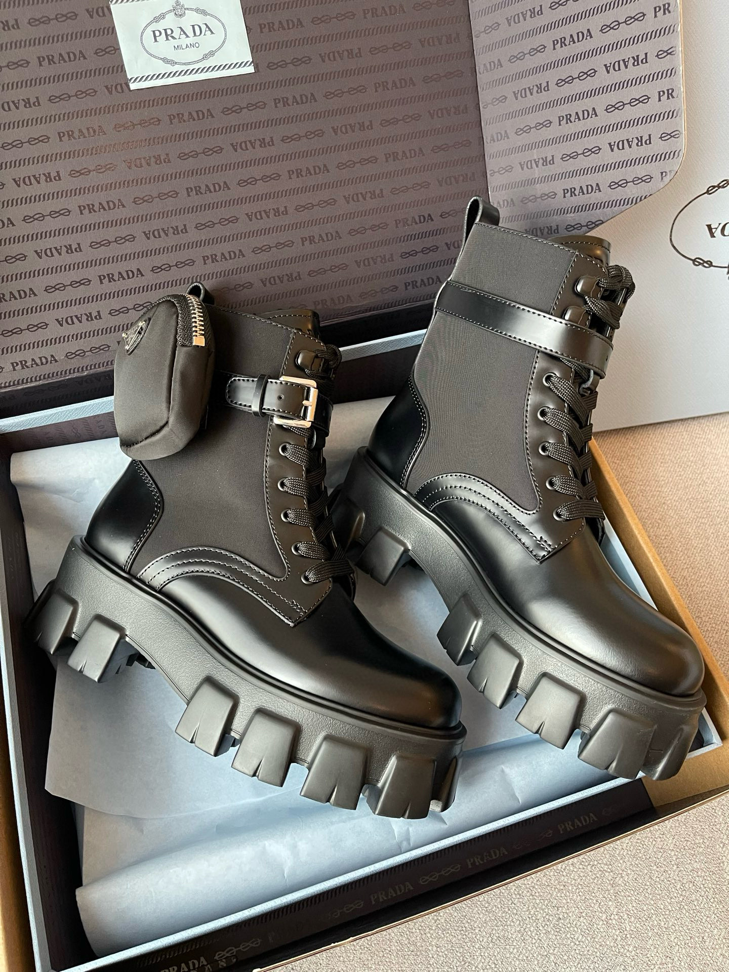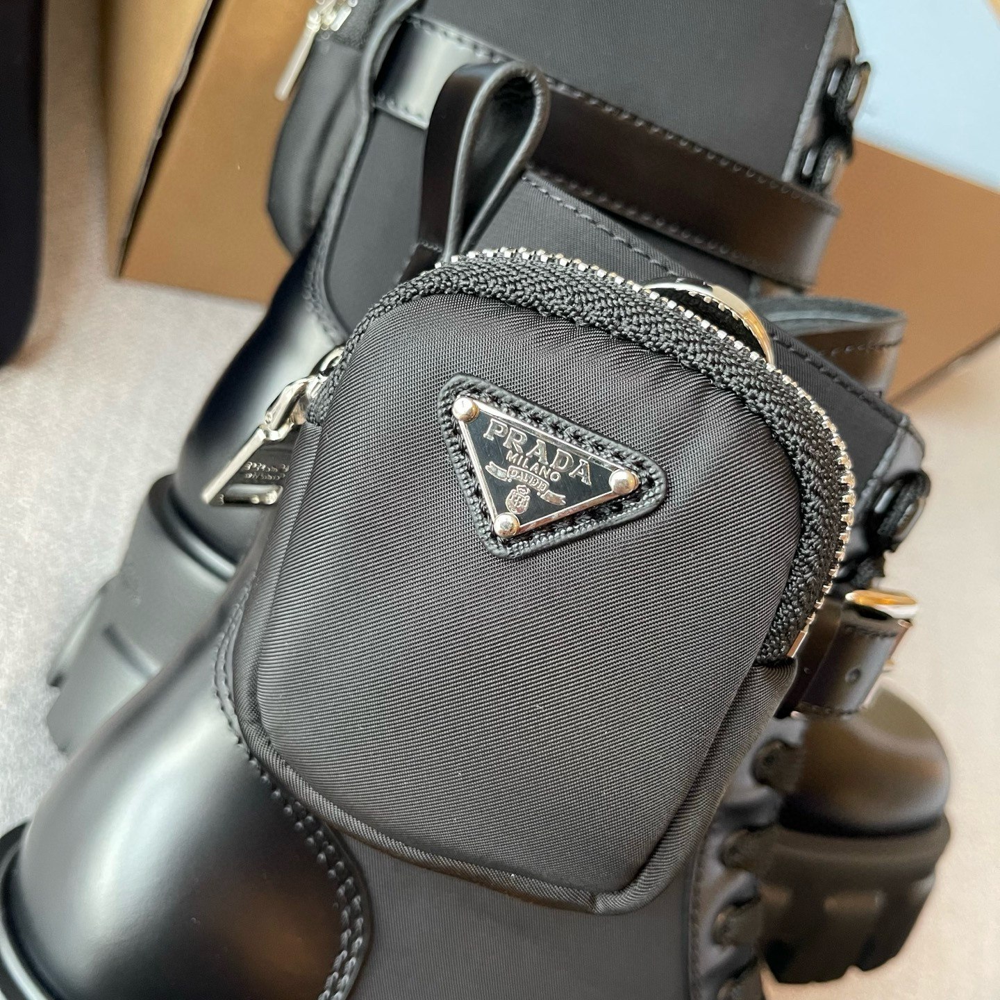 NIGO Prada Monolith Leather And Re-Nylon Boots With Pouch Shoes #nigo97242