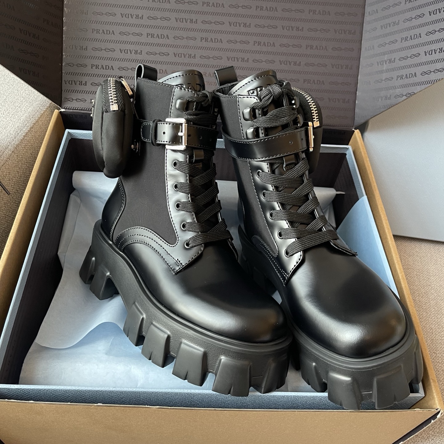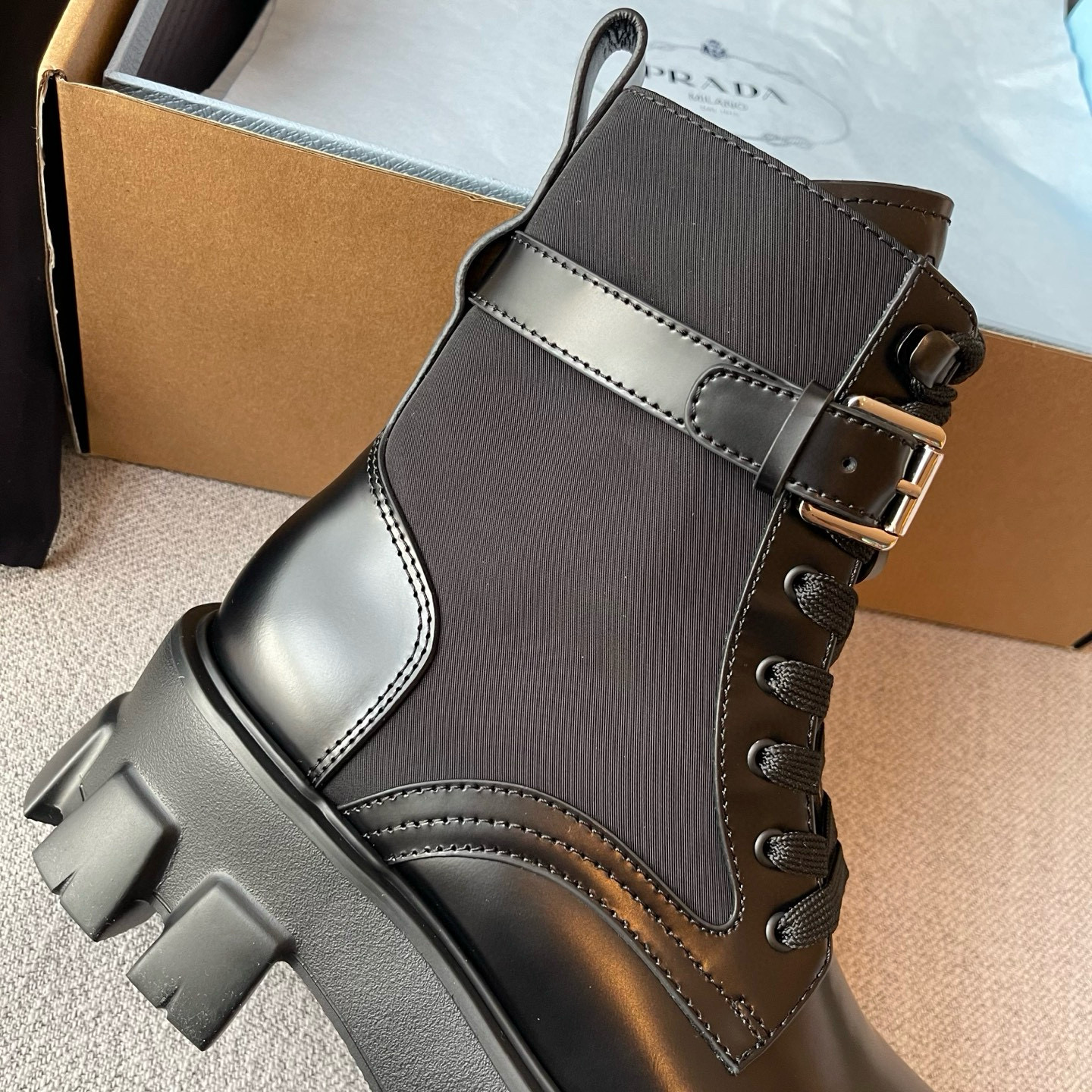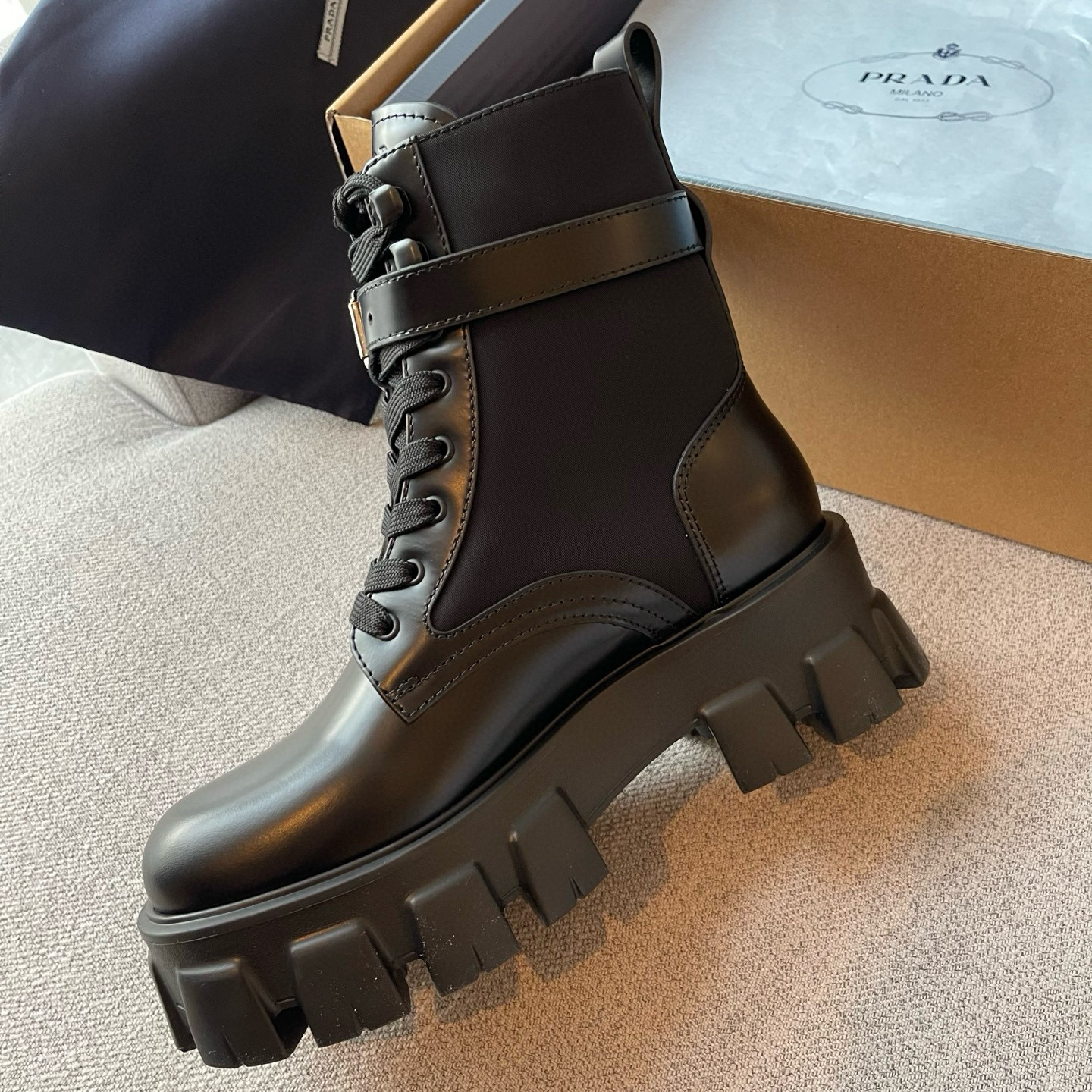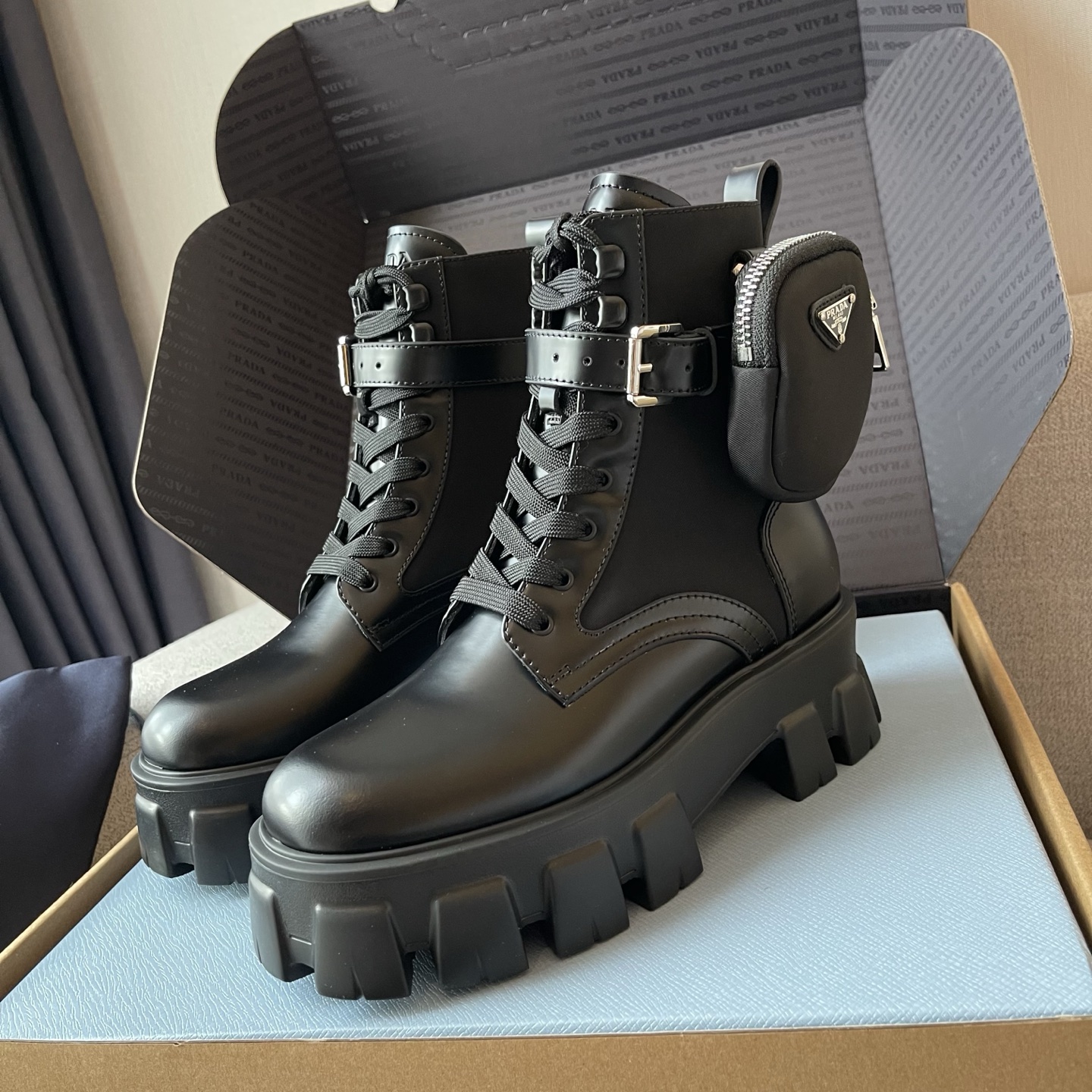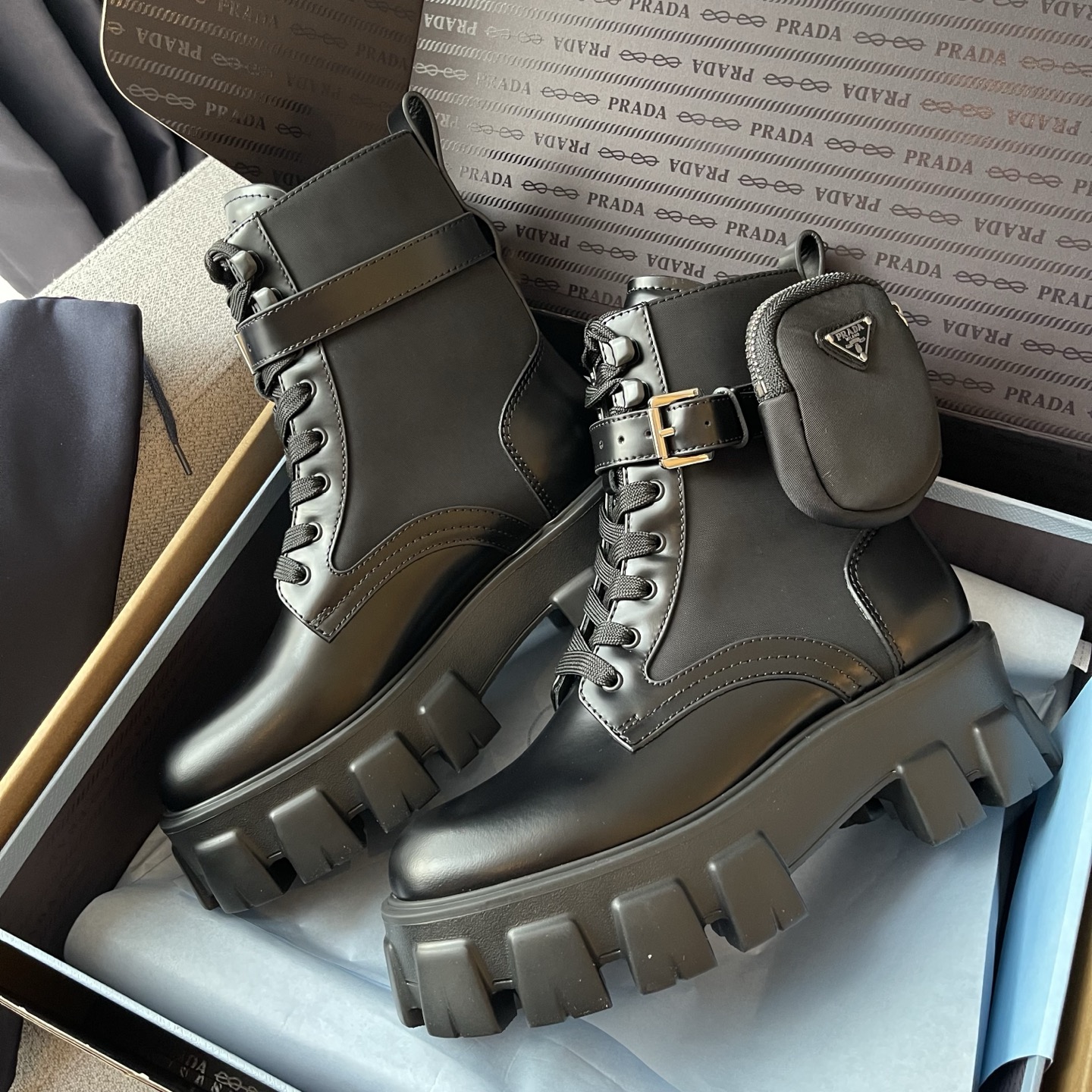 NIGO Prada Monolith Leather And Re-Nylon Boots With Pouch Shoes #nigo97242