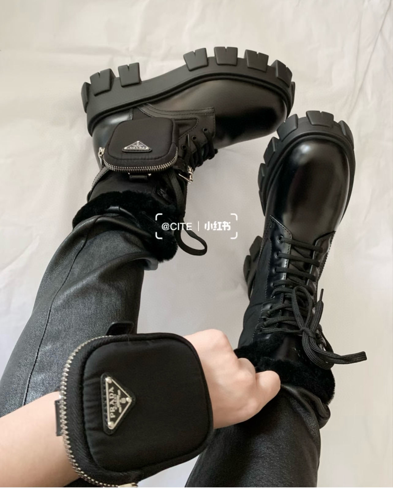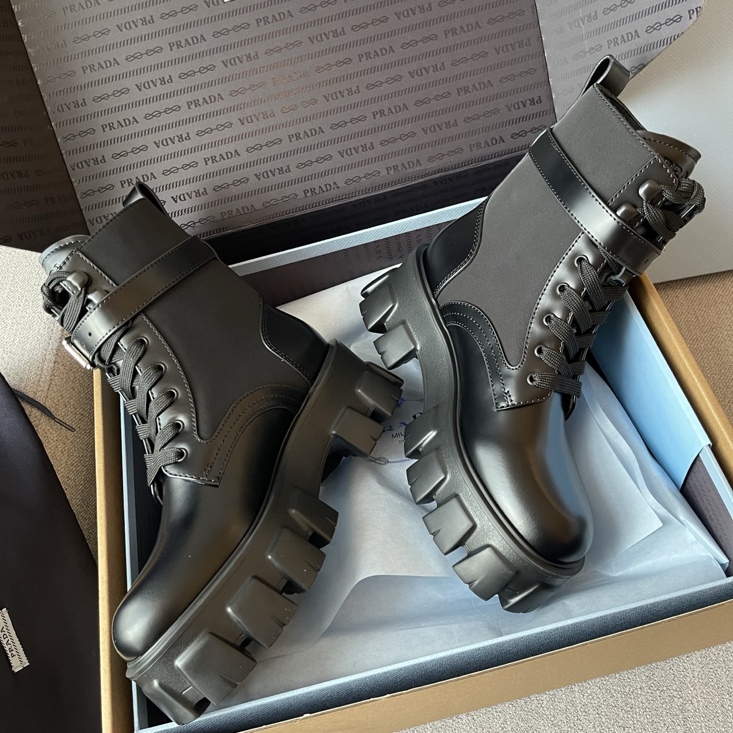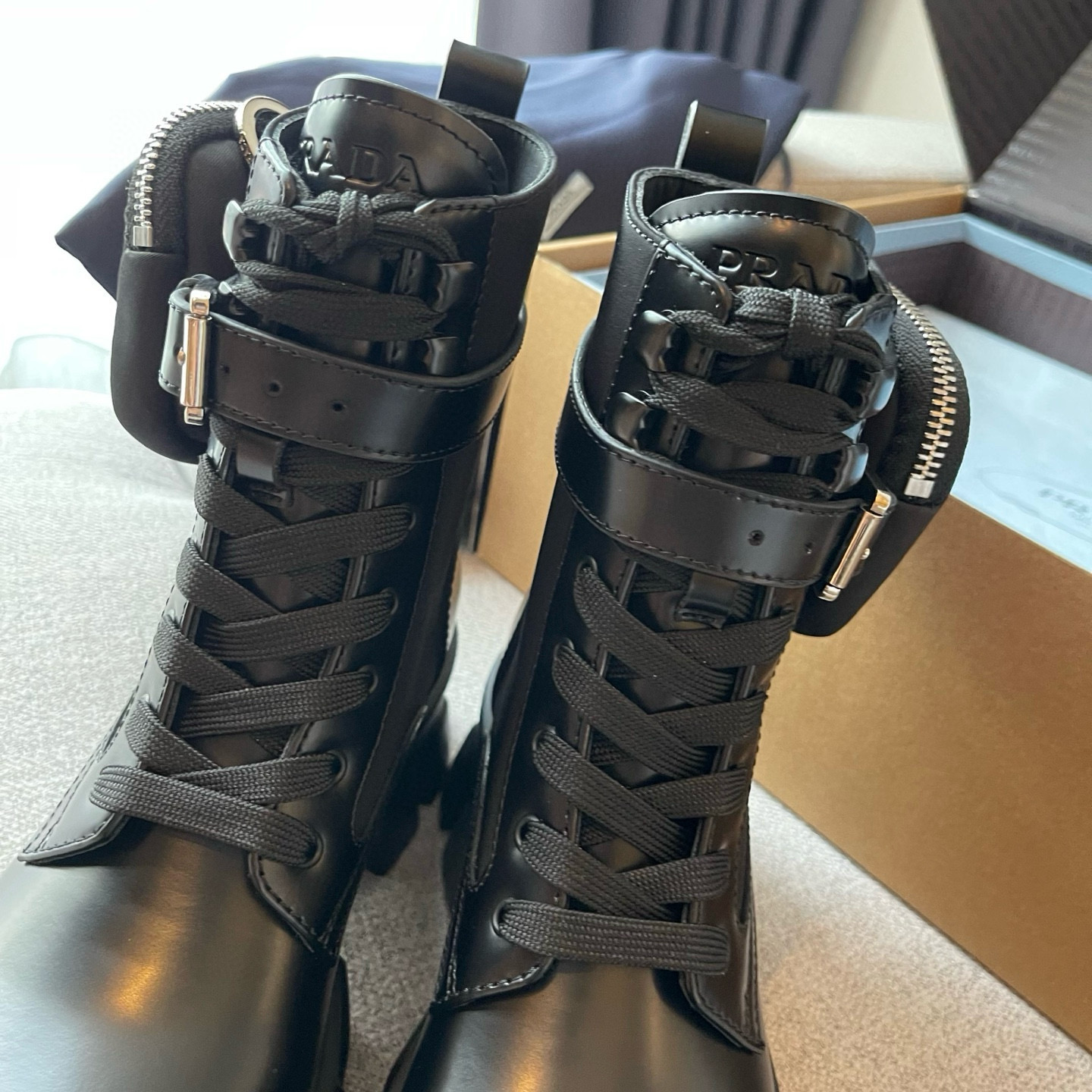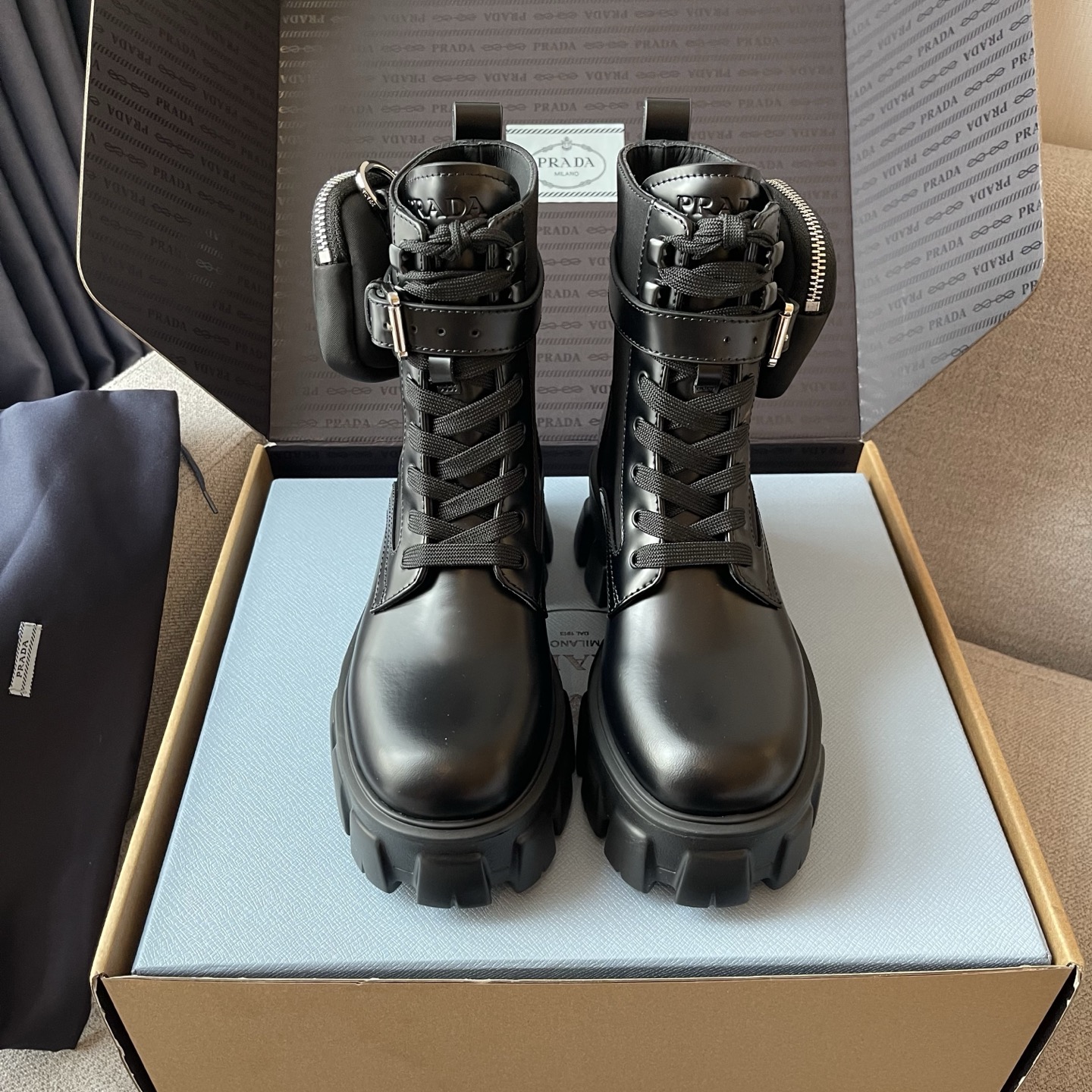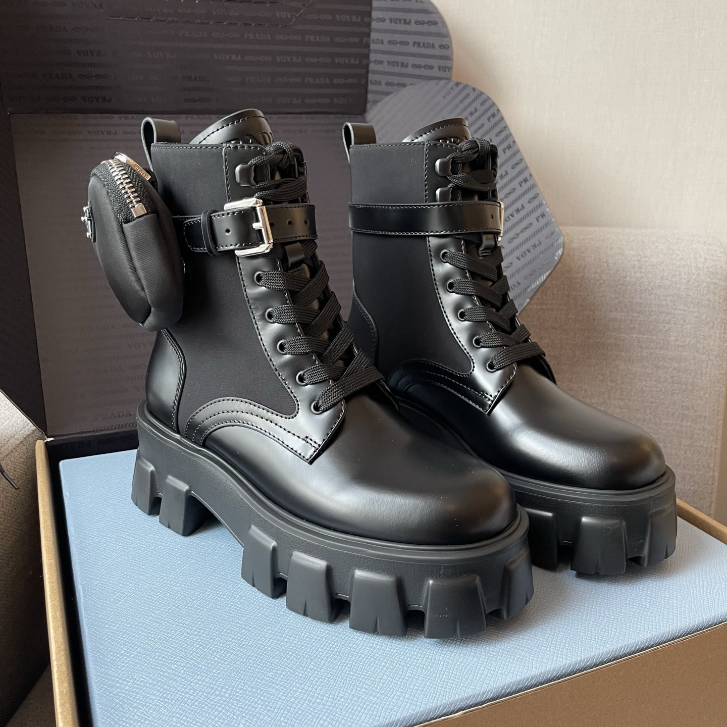 NIGO Prada Monolith Leather And Re-Nylon Boots With Pouch Shoes #nigo97242
