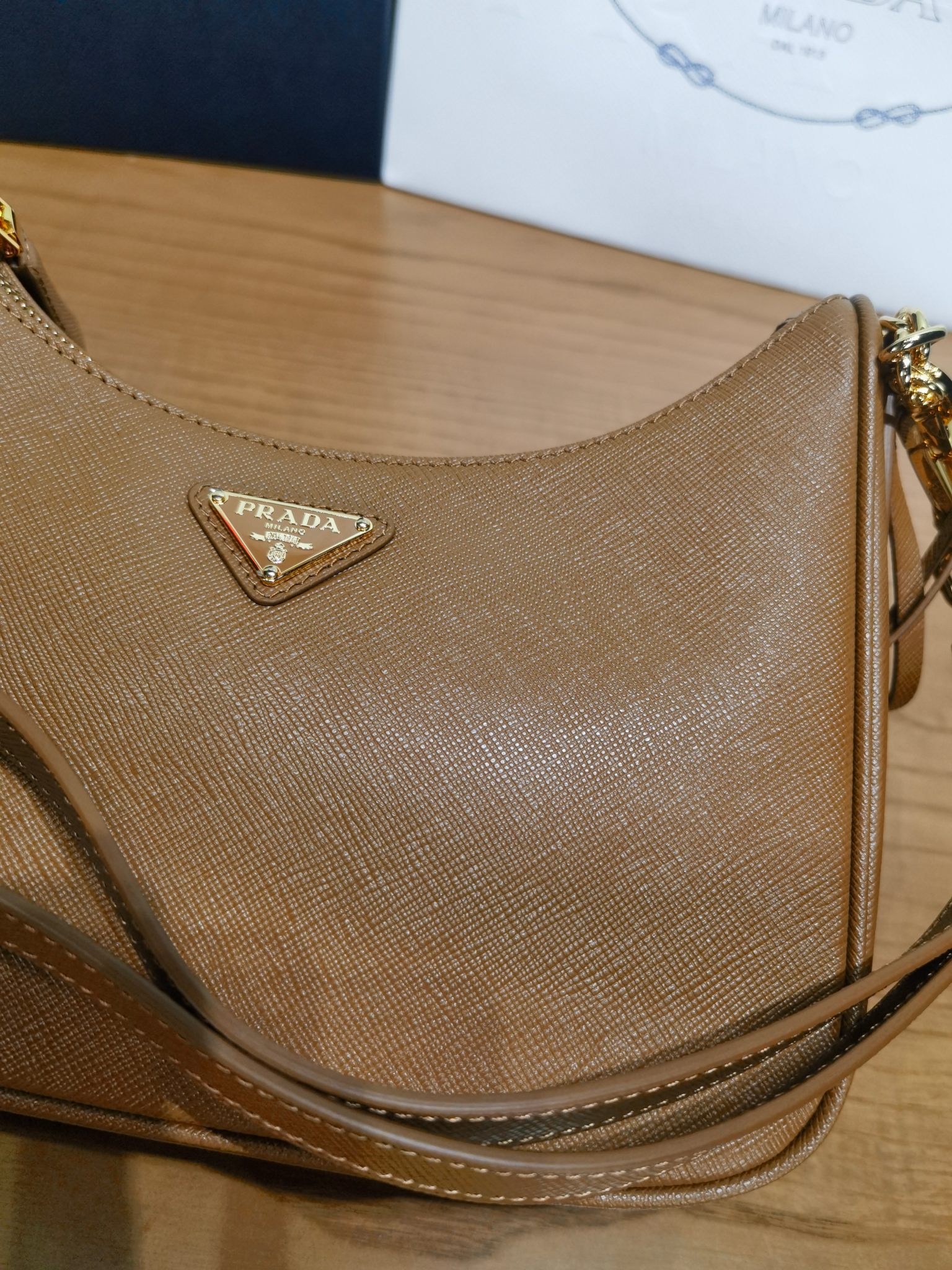 This Prada handbag showcases the brand's exceptional craftsmanship and attention to detail. this piece combines timeless luxury with modern style.