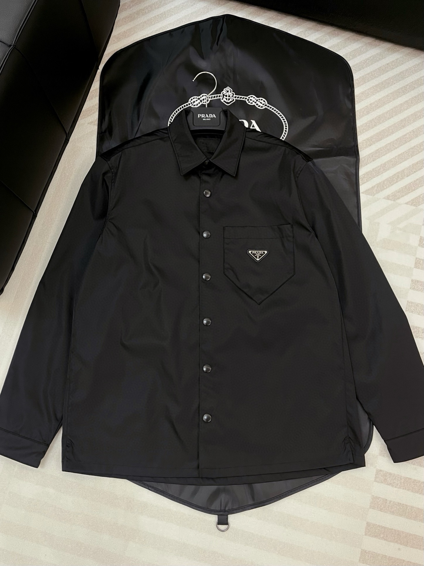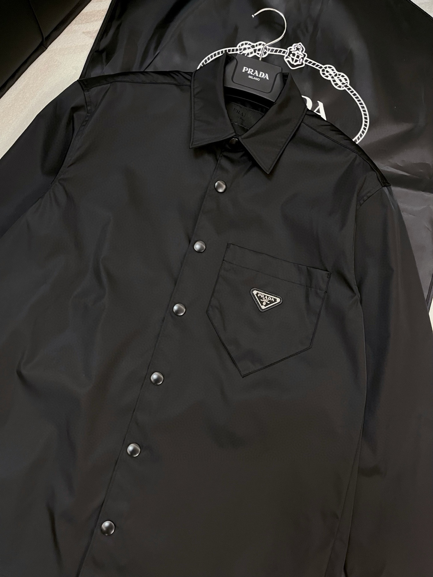 NIGO Prada Re-Nylon Men's Spring/Fall Fashion Casual Solid Color Collared Single Button Nylon Jacket Shirt #nigo78762