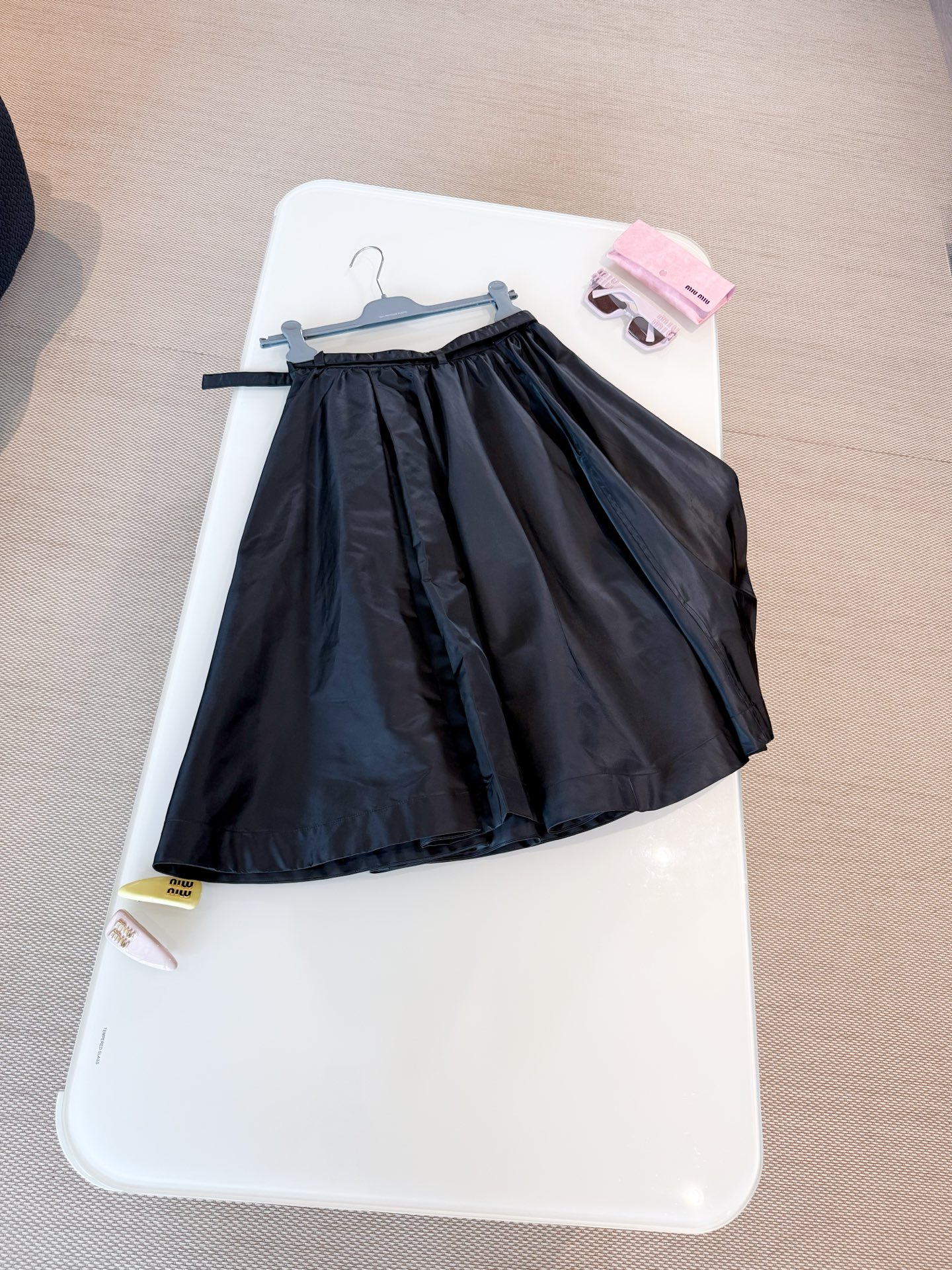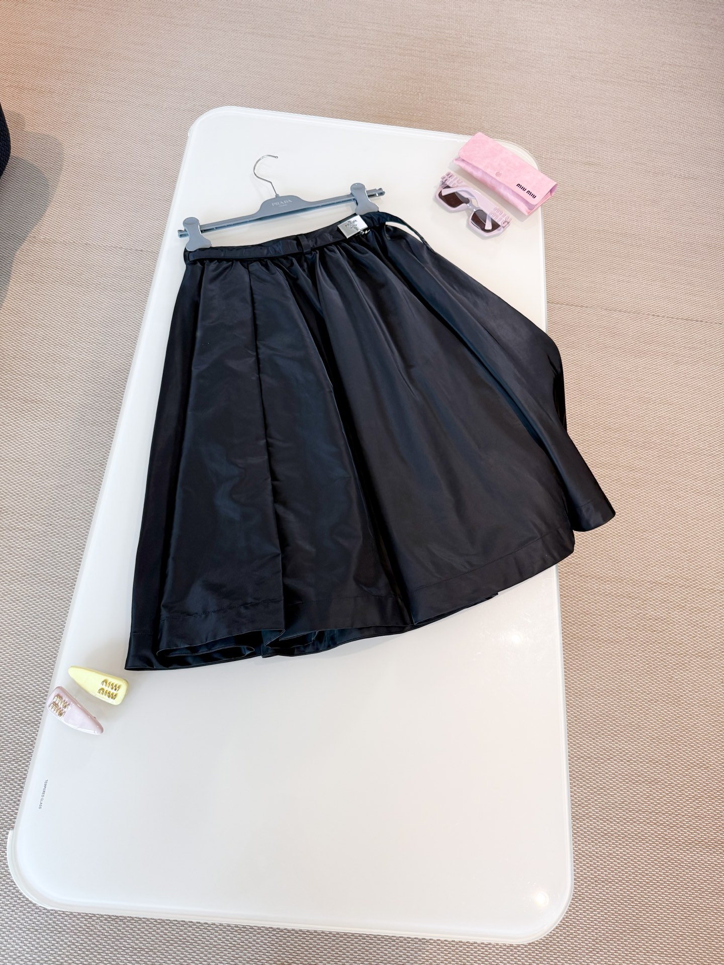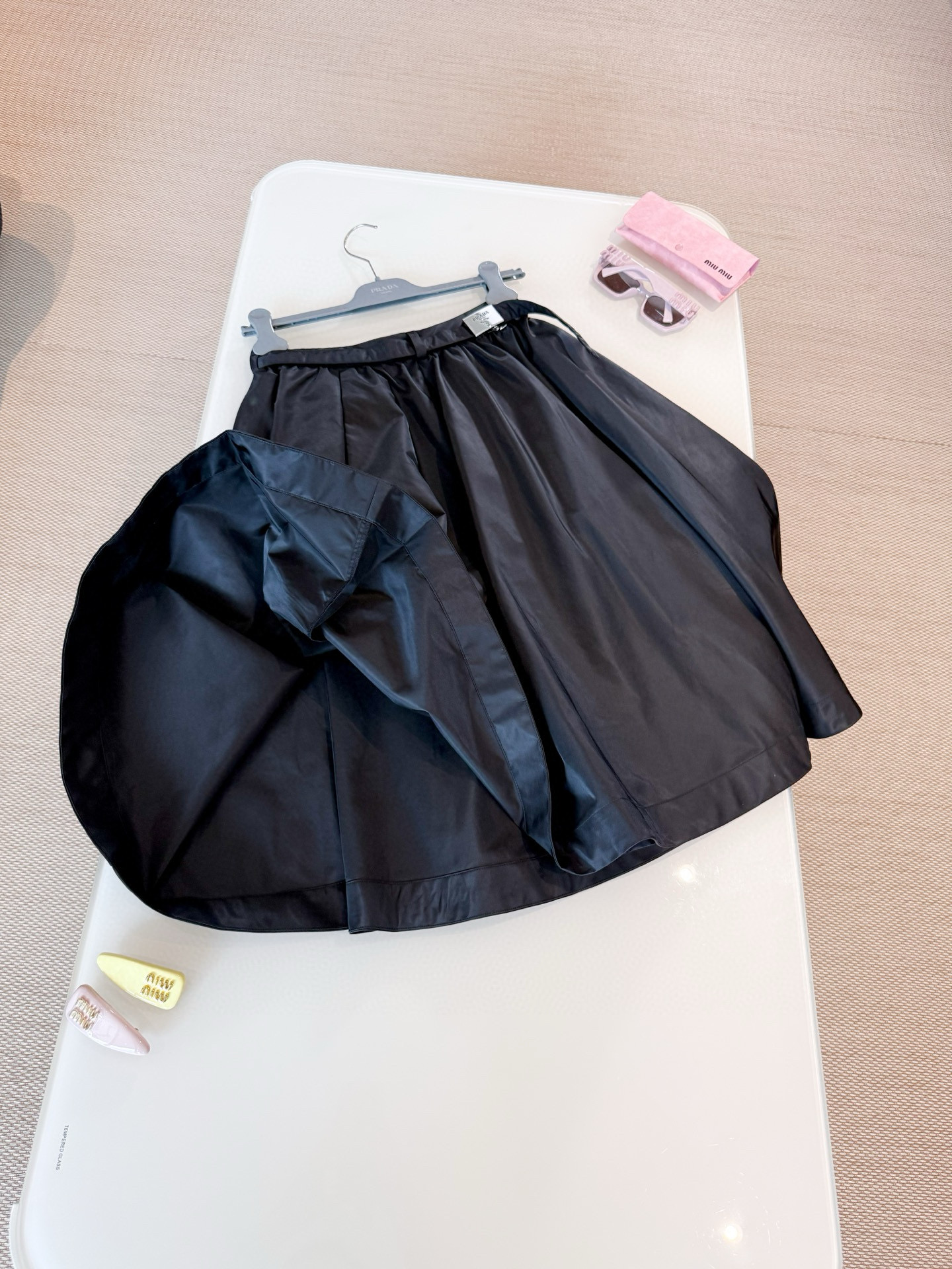 NIGO Prada Re-Nylon Women's Spring/Fall Fashion Classic Solid Color Nylon Skirt With 3D Waist Buckle And Full Skirt #nigo79188