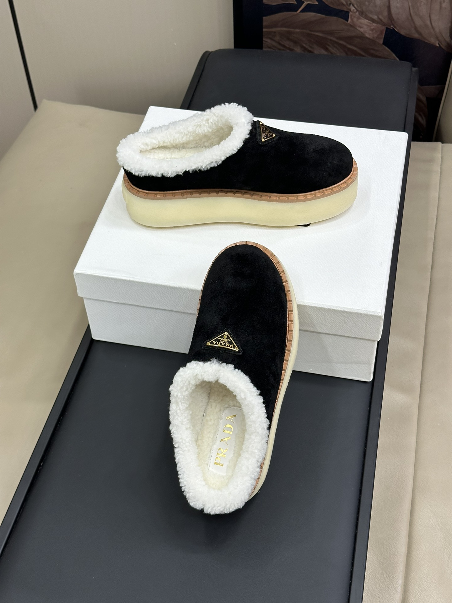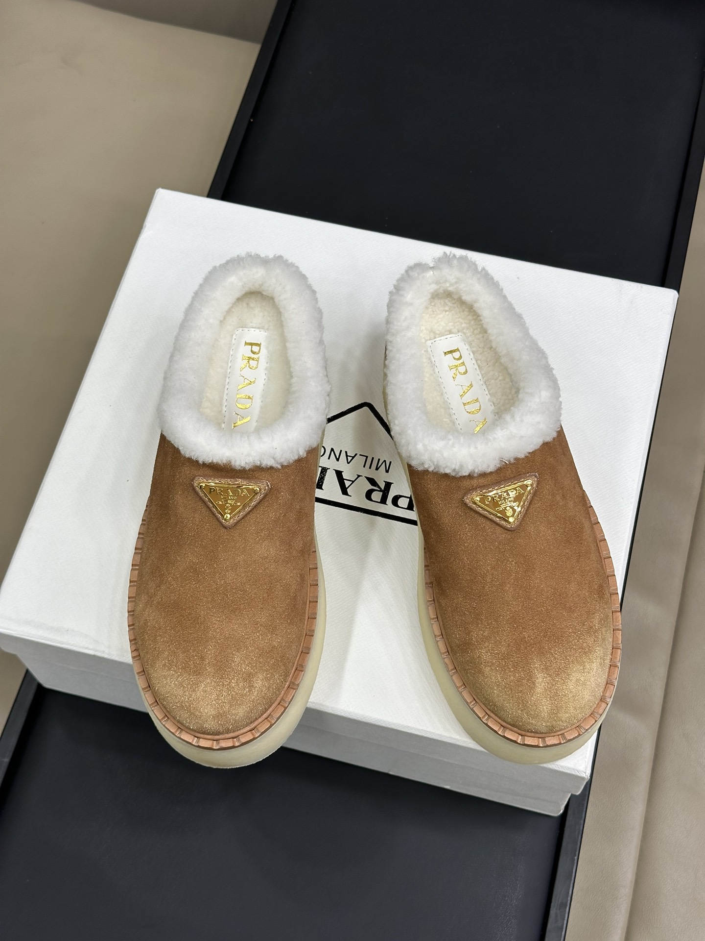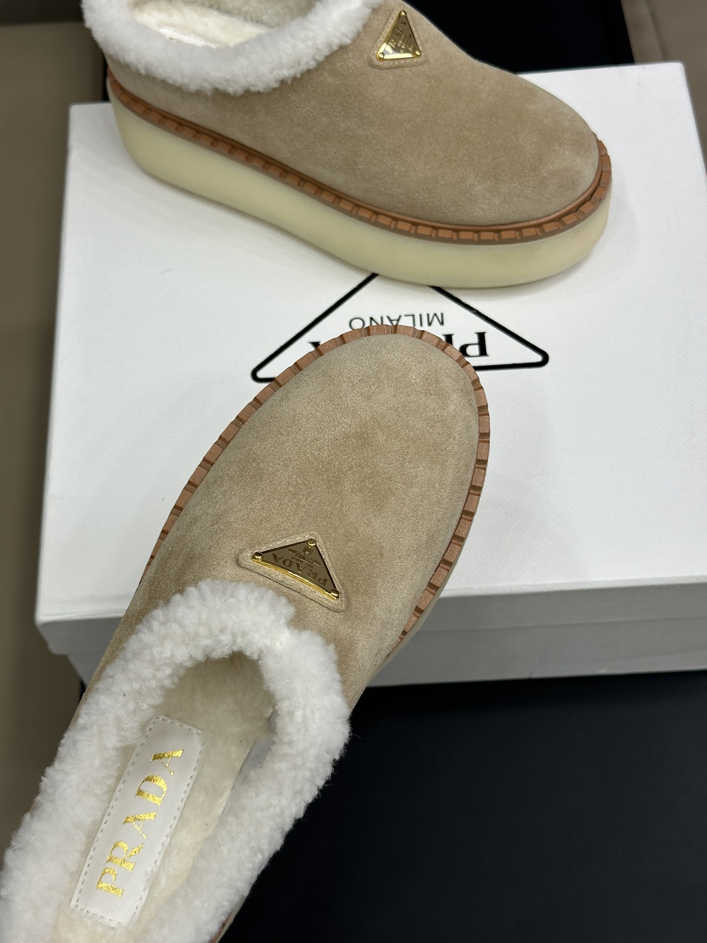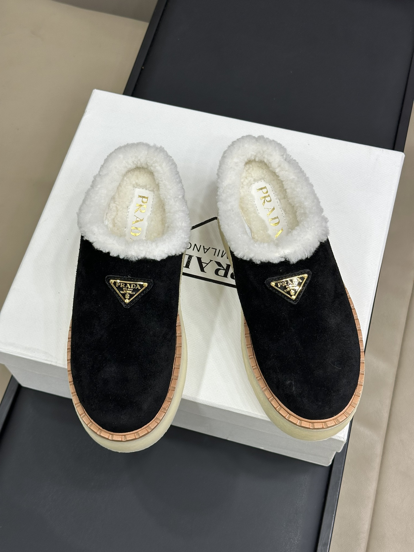 NIGO Prada Women's Autumn and Winter Solid Color Suede Thick Bottom Round Head Slippers Shoes #nigo74272