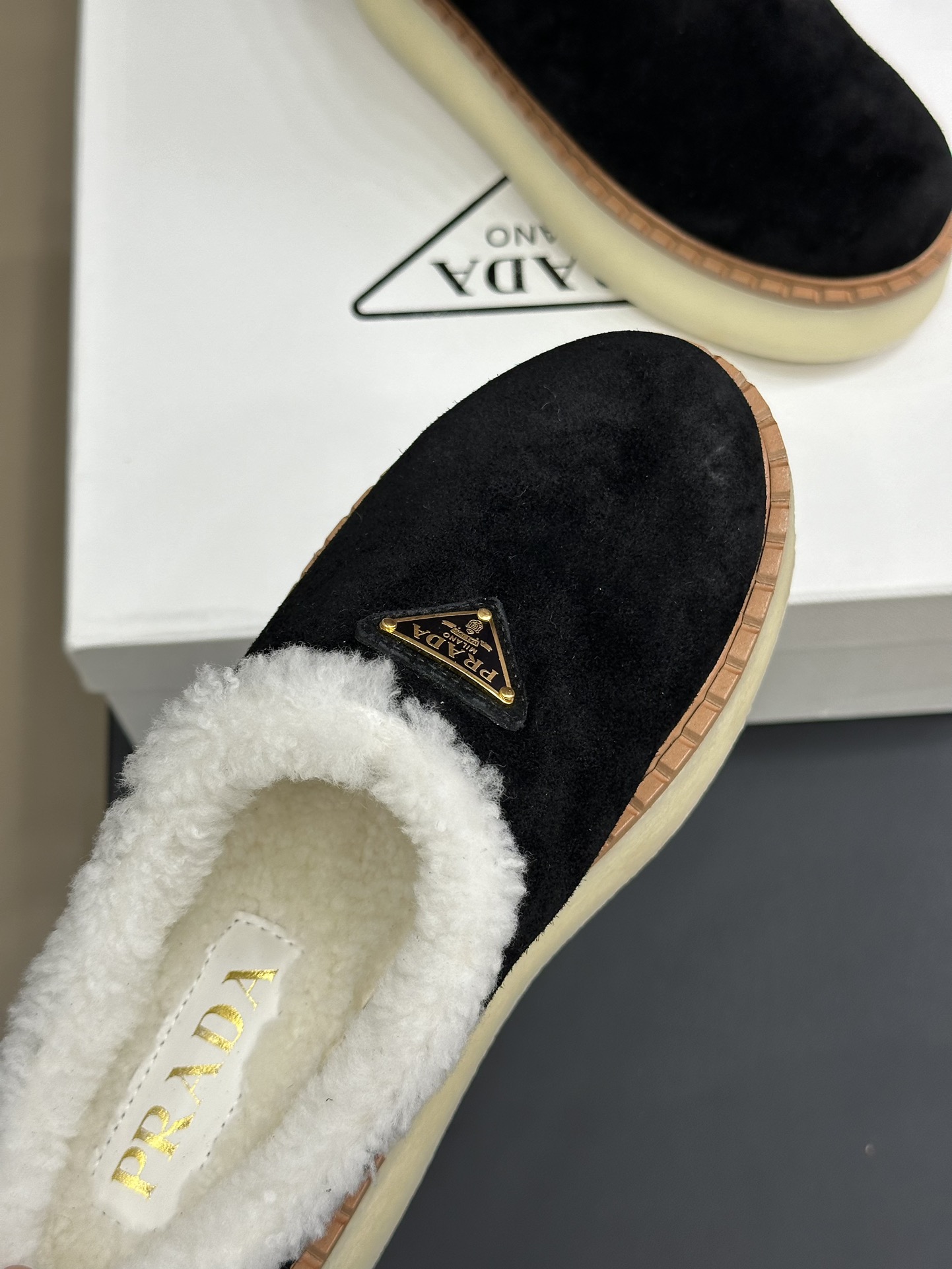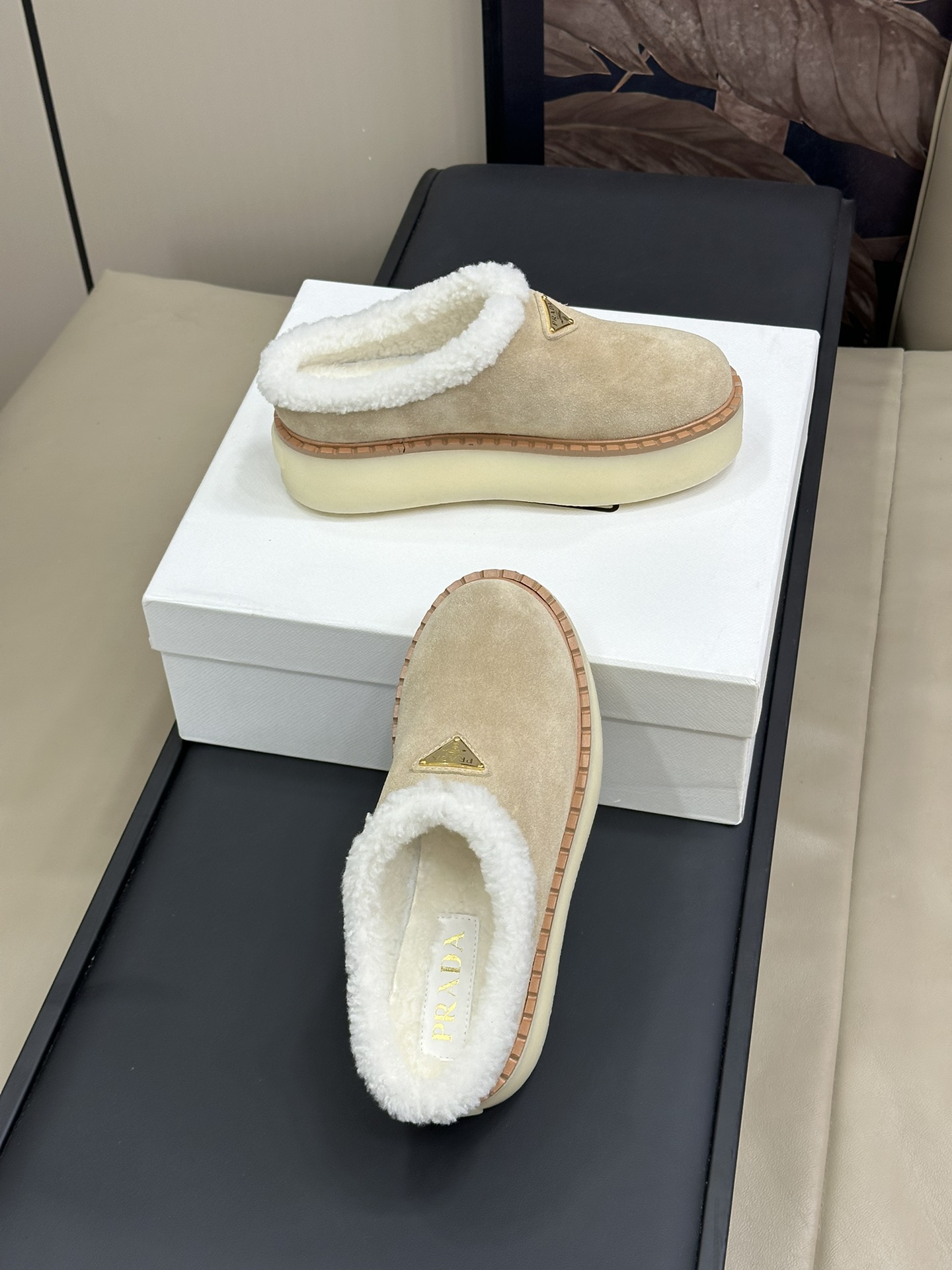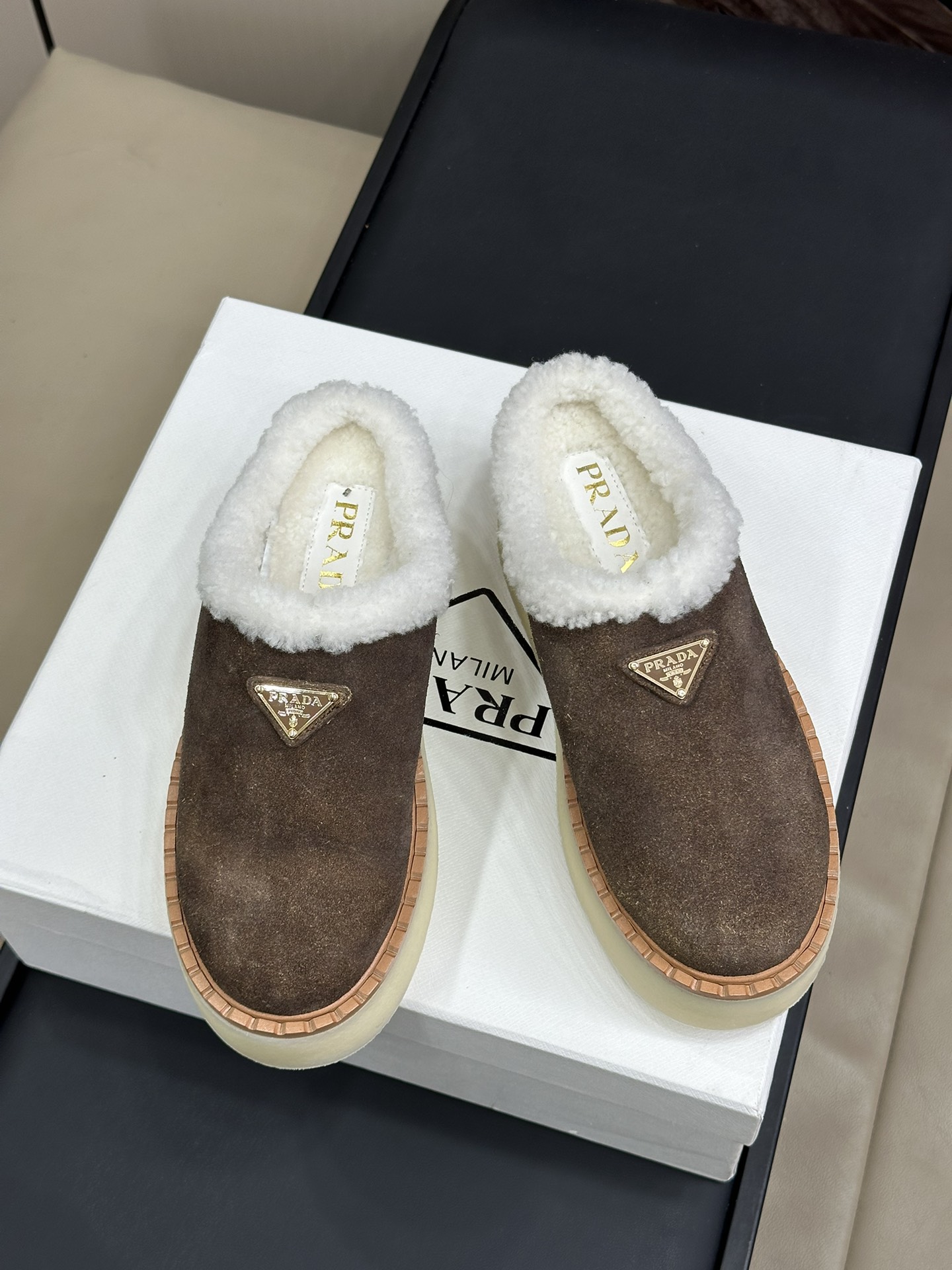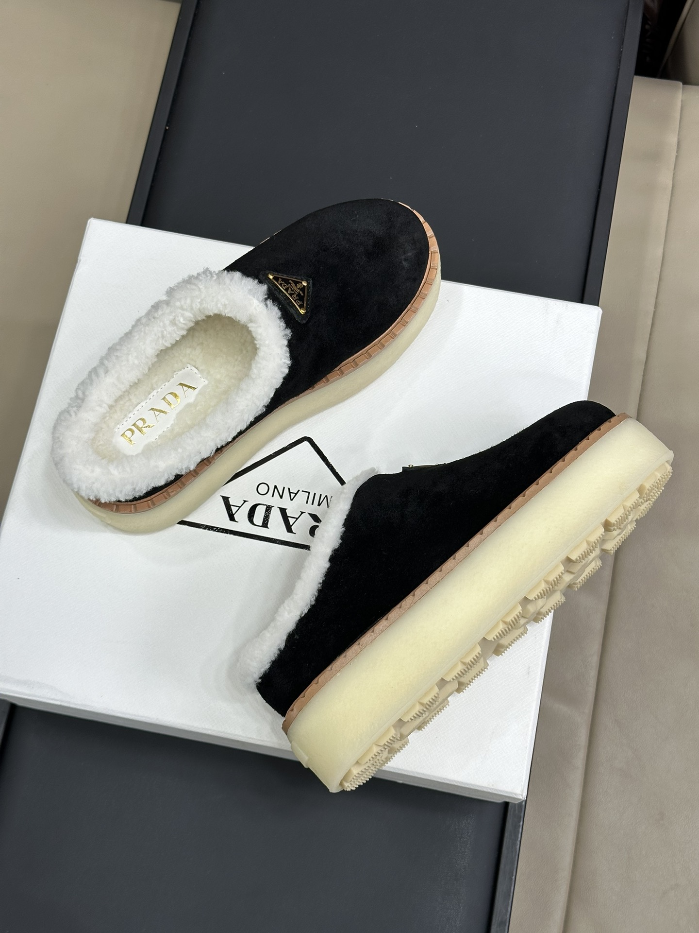 NIGO Prada Women's Autumn and Winter Solid Color Suede Thick Bottom Round Head Slippers Shoes #nigo74272