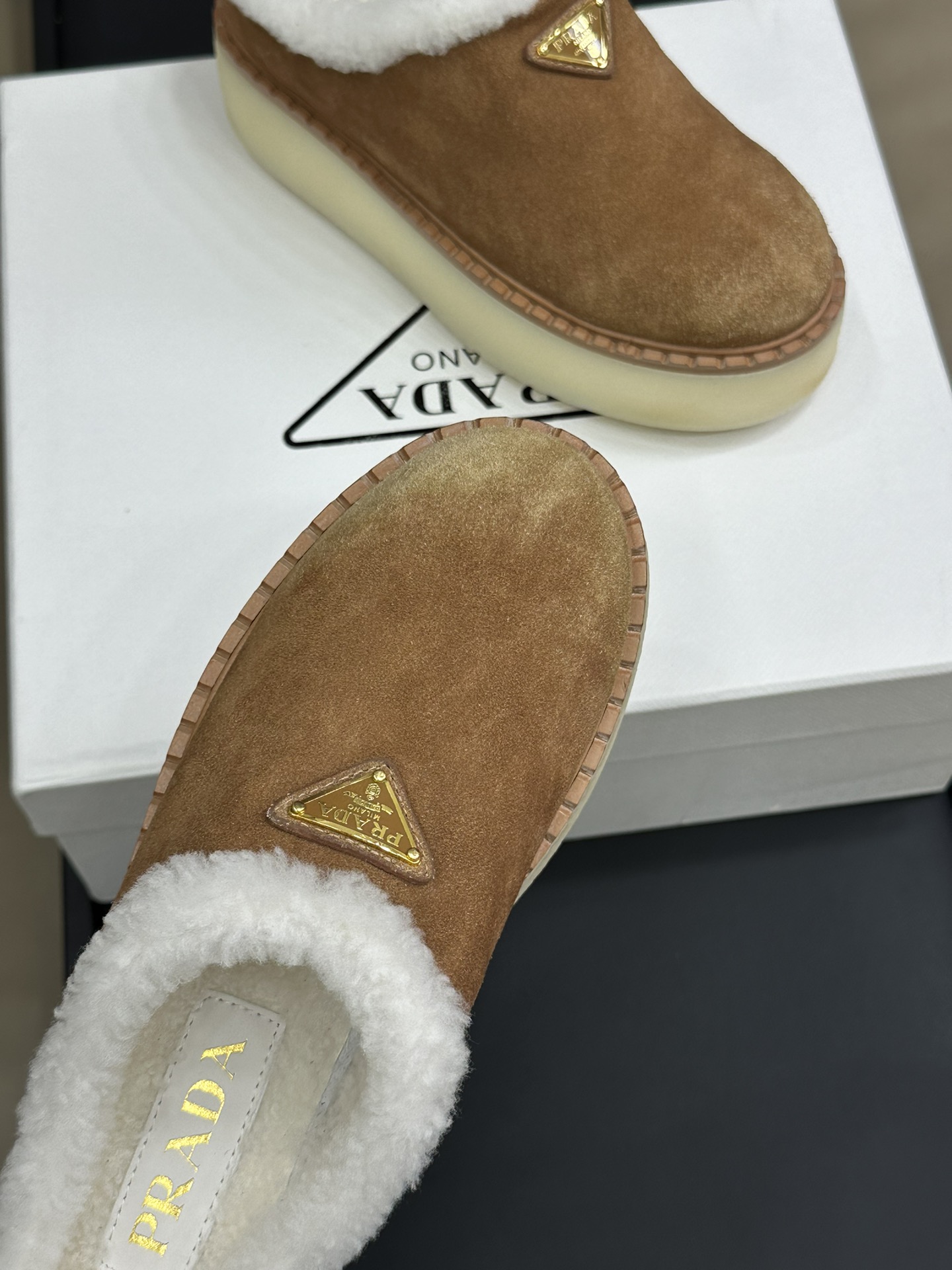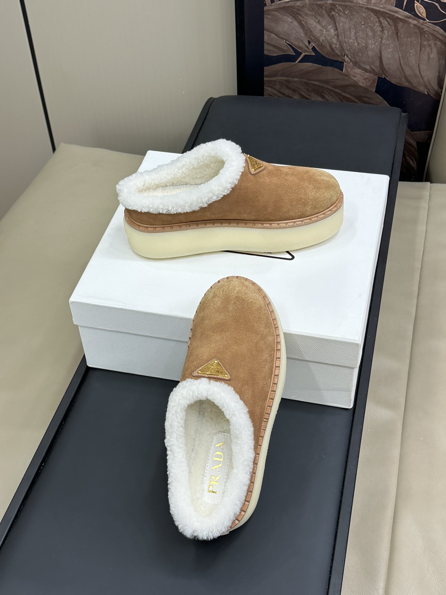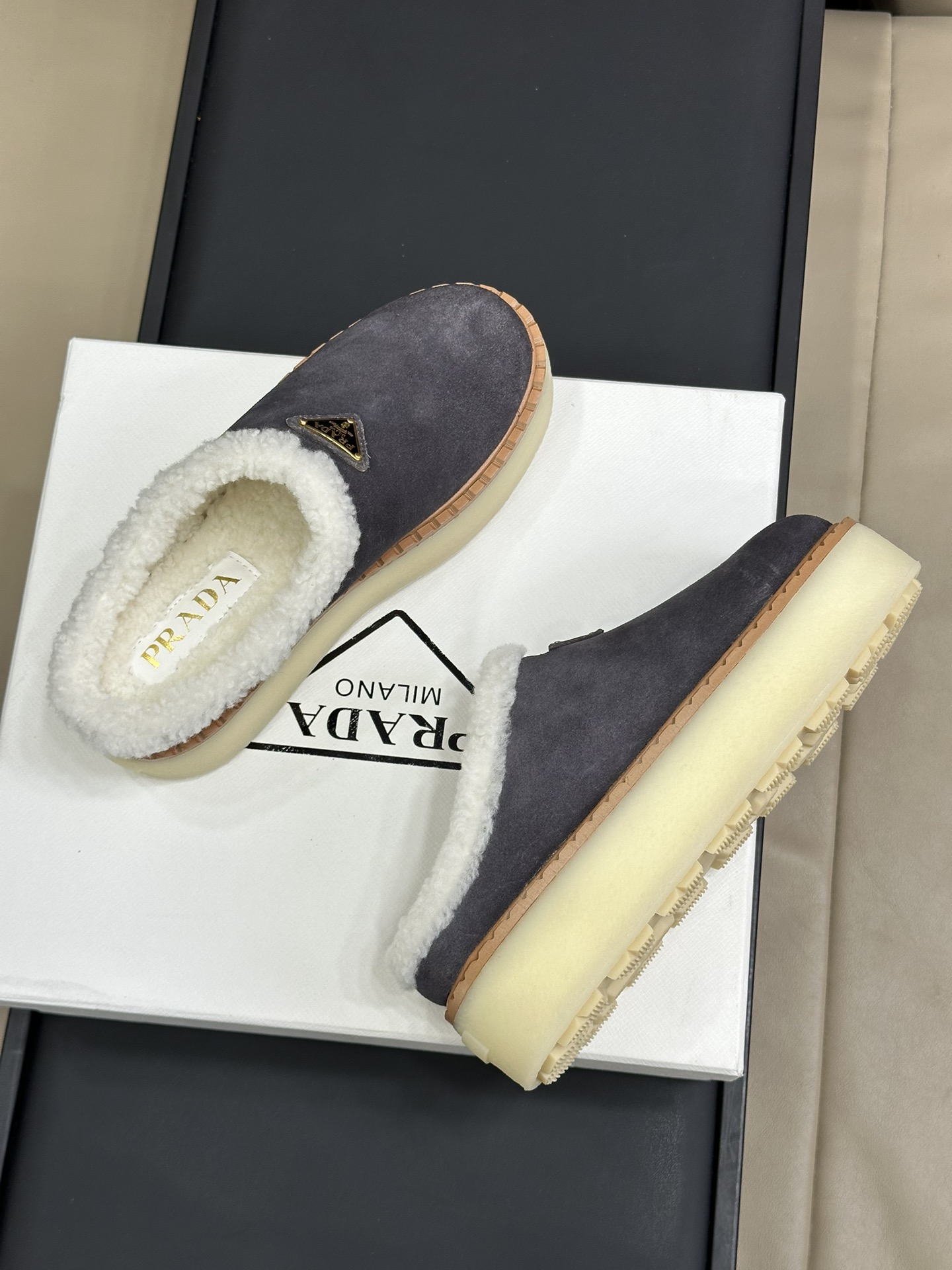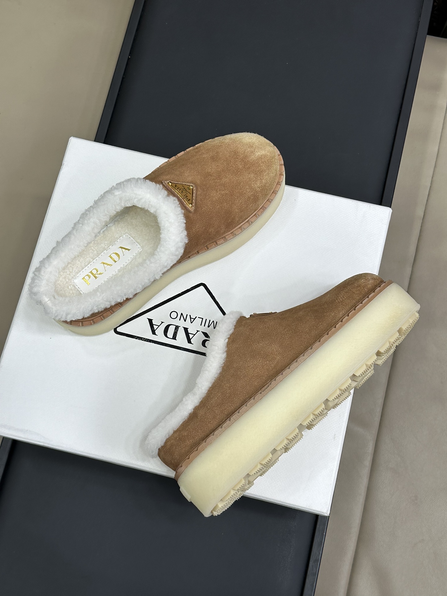 NIGO Prada Women's Autumn and Winter Solid Color Suede Thick Bottom Round Head Slippers Shoes #nigo74272