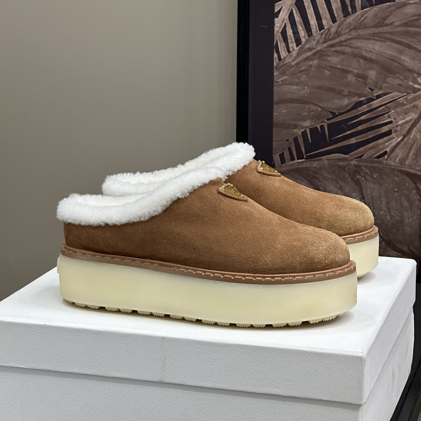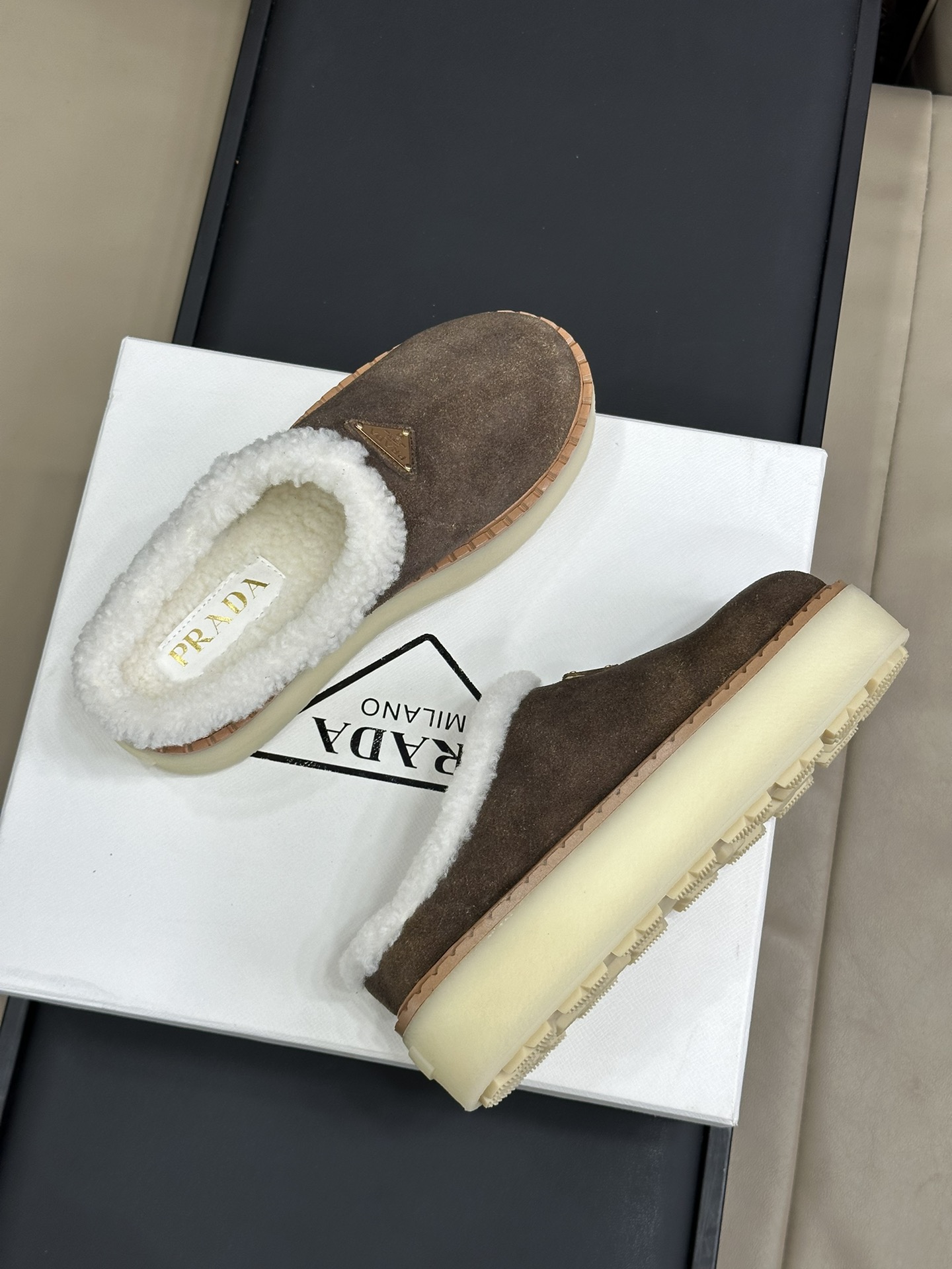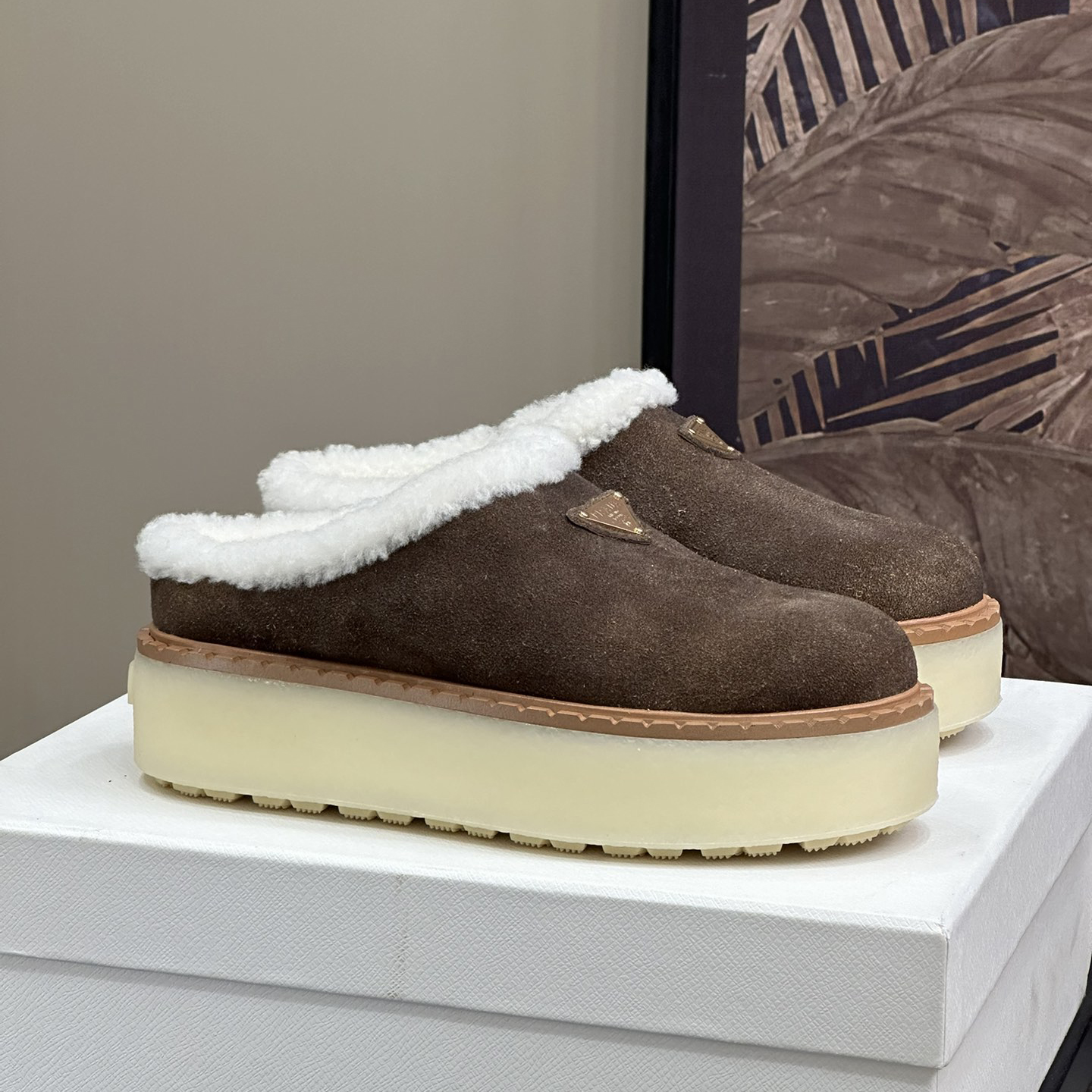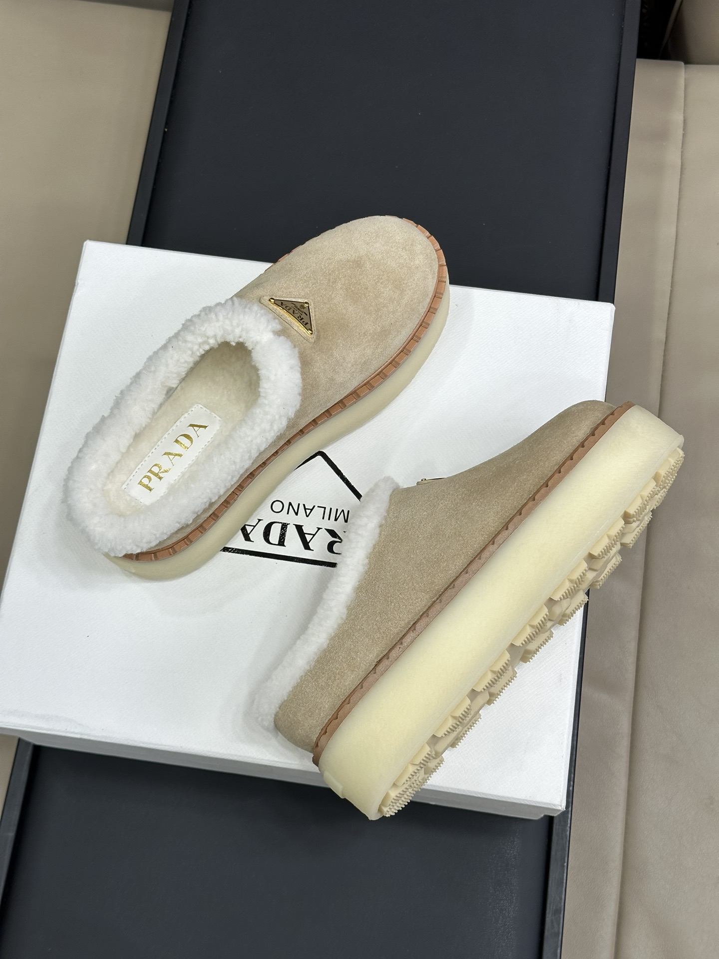 NIGO Prada Women's Autumn and Winter Solid Color Suede Thick Bottom Round Head Slippers Shoes #nigo74272