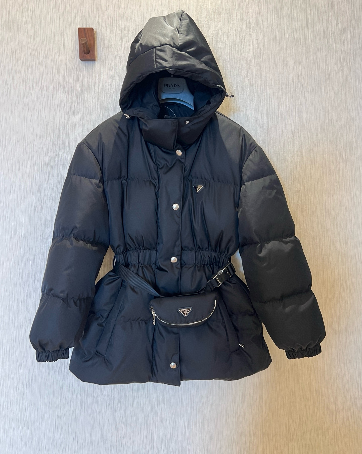 NIGO Prada Women's Autumn/Winter Single-Breasted Nylon Belt Long-Sleeved Solid Color Hooded Puffer Down Jacket Ngvp #nigo81482
