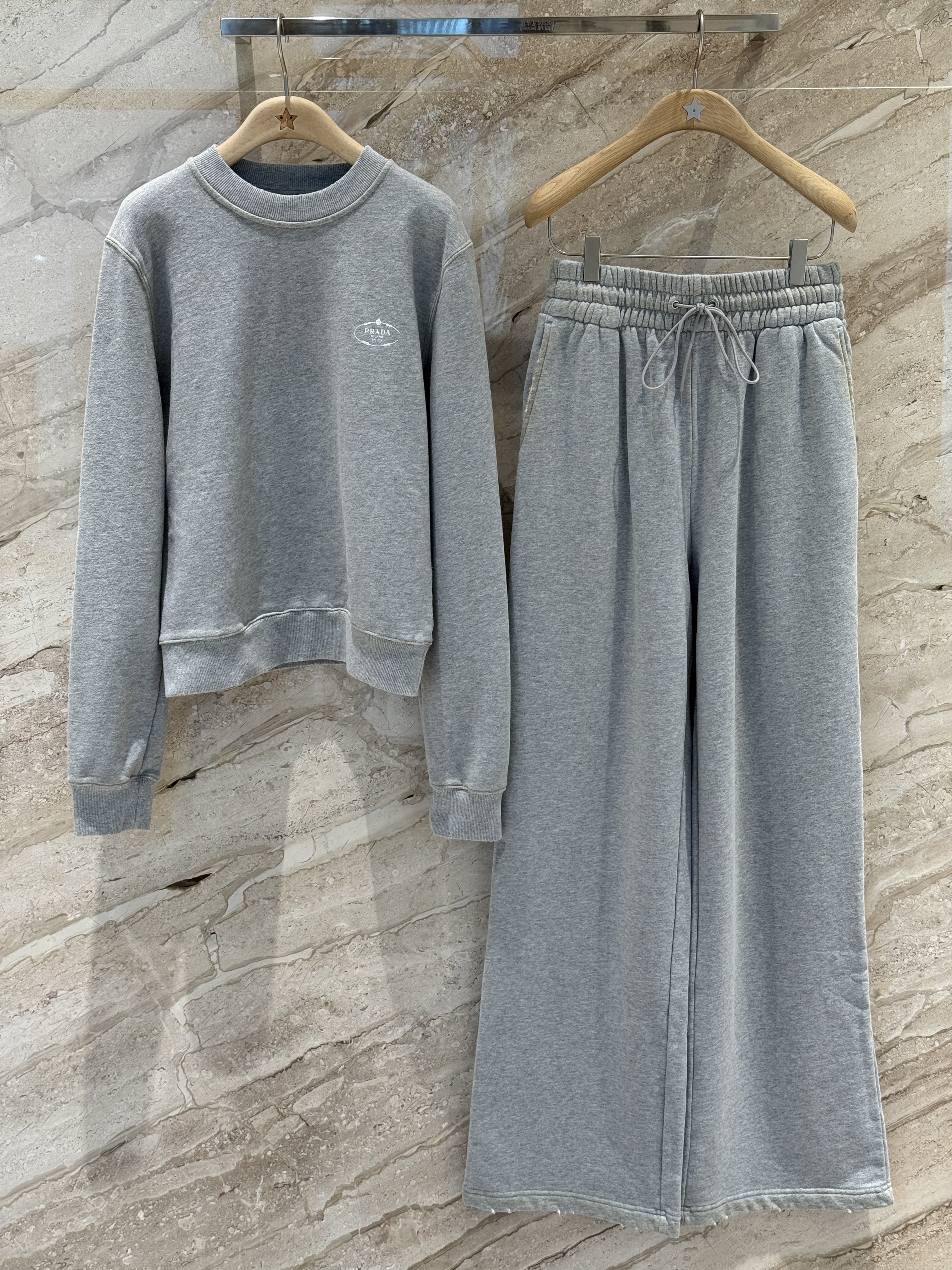NIGO Prada Women's Fall/Winter Fashion Casual Solid Color Cotton Crewneck Long Sleeve Distressed Hoodie with Elastic Waistband Loose Fit Solid Color Pants Suit Set #nigo78751