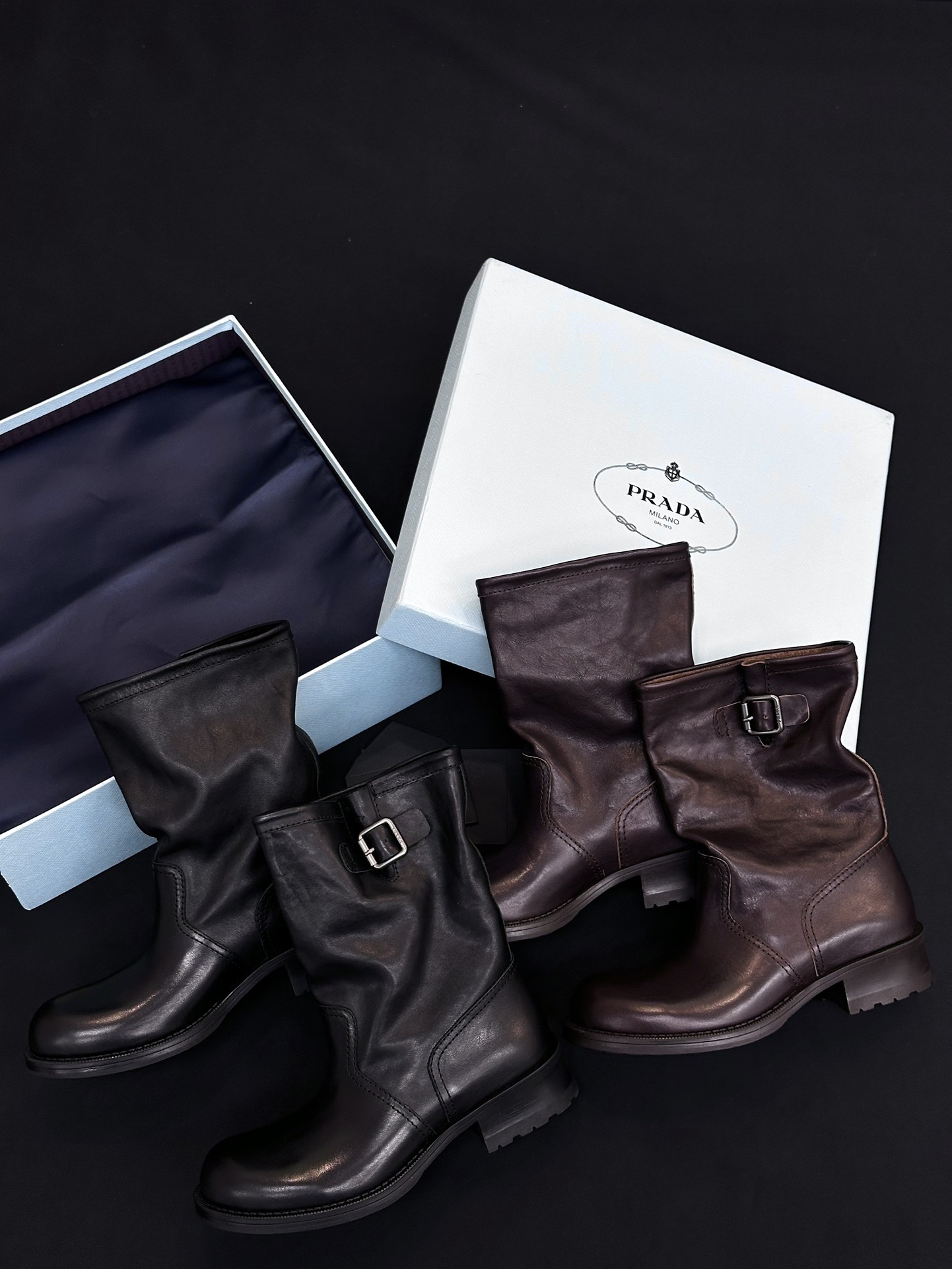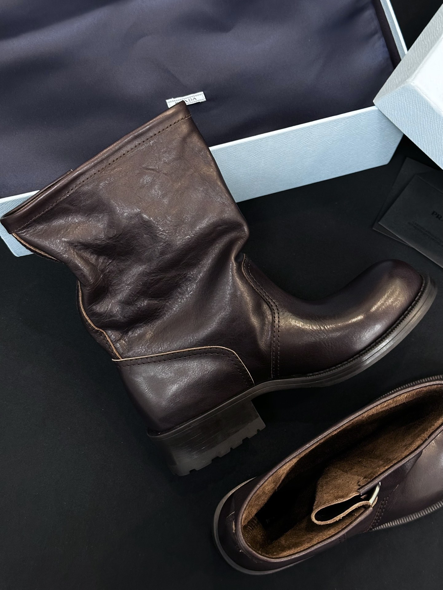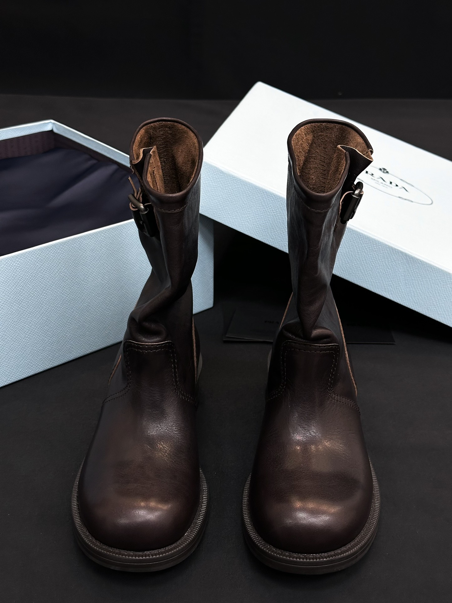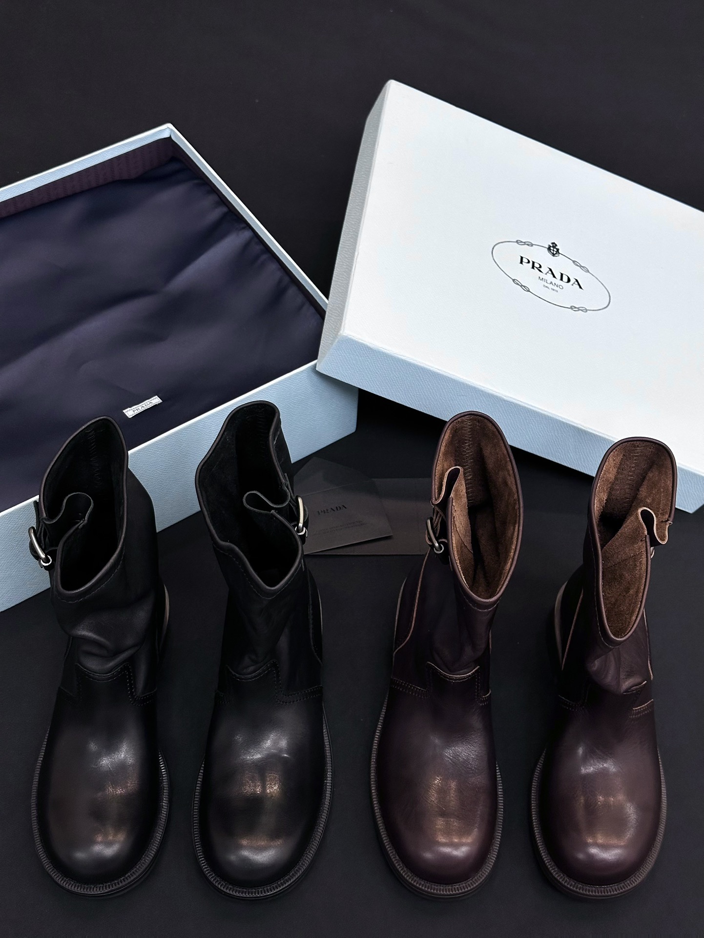 NIGO Prada Women's Fall/Winter Fashion Classic Round Toe Slip On Leather Vintage Western Cowboy Boots Dr. Martens Boots Shoes #nigo78531