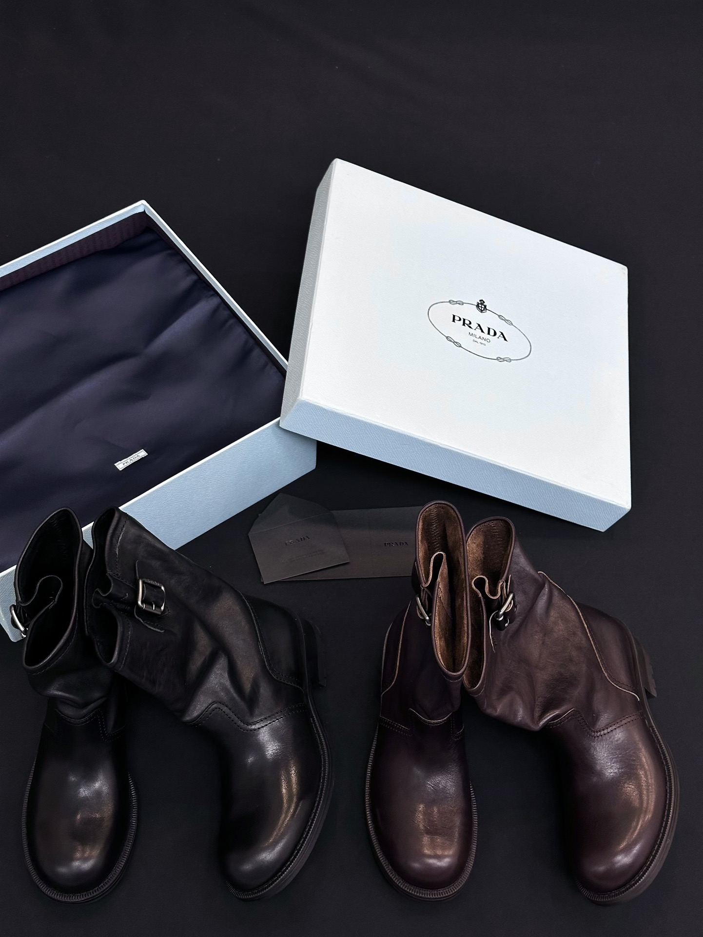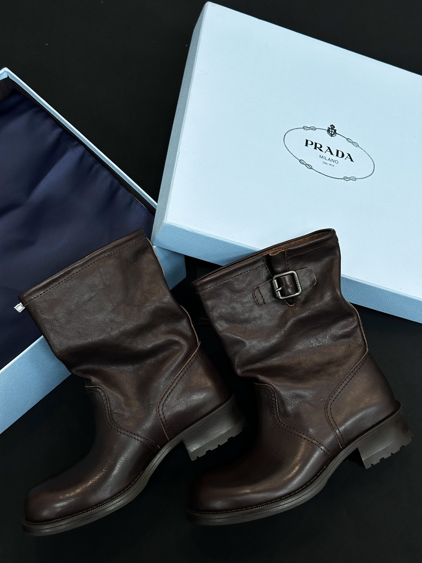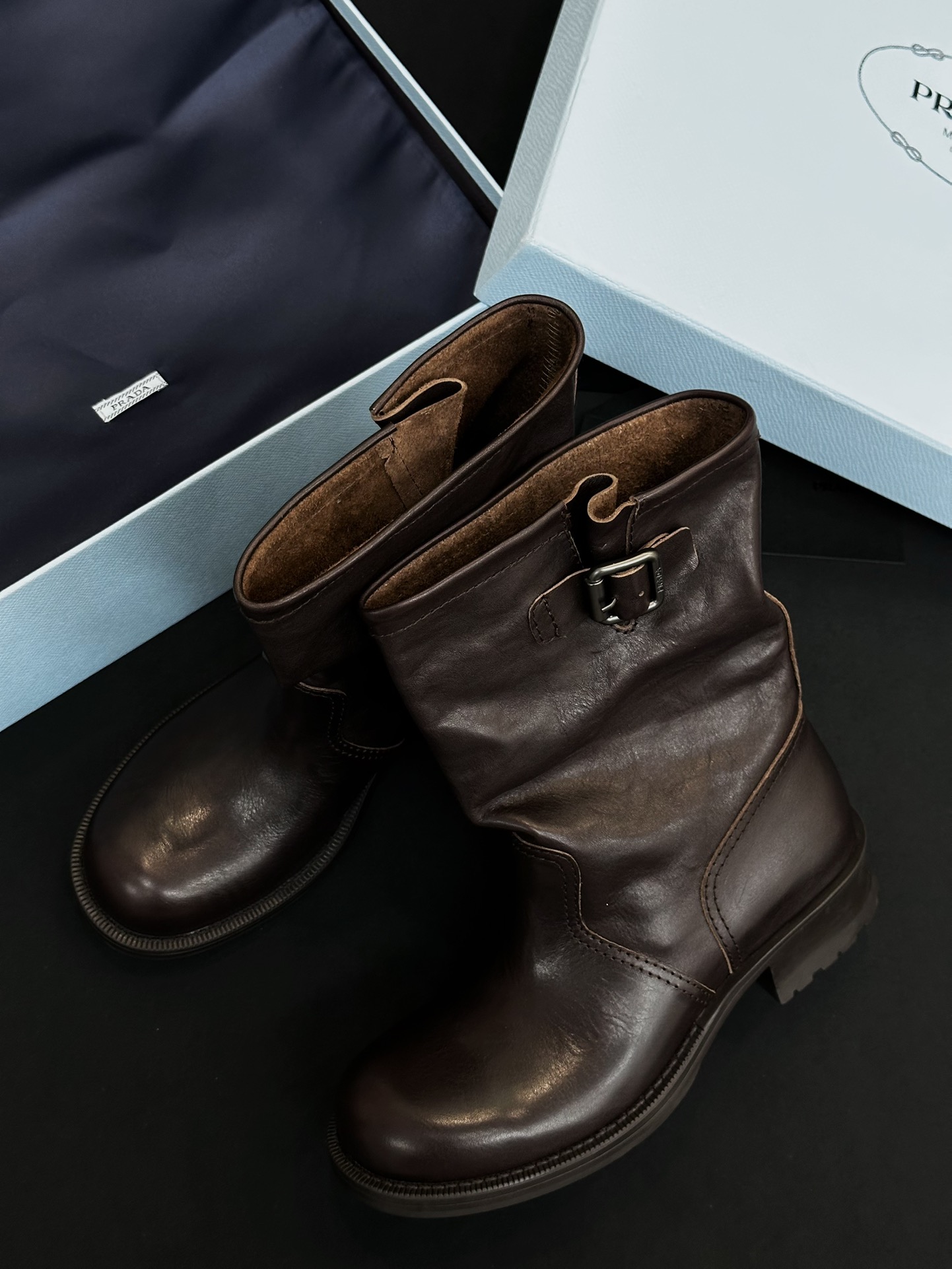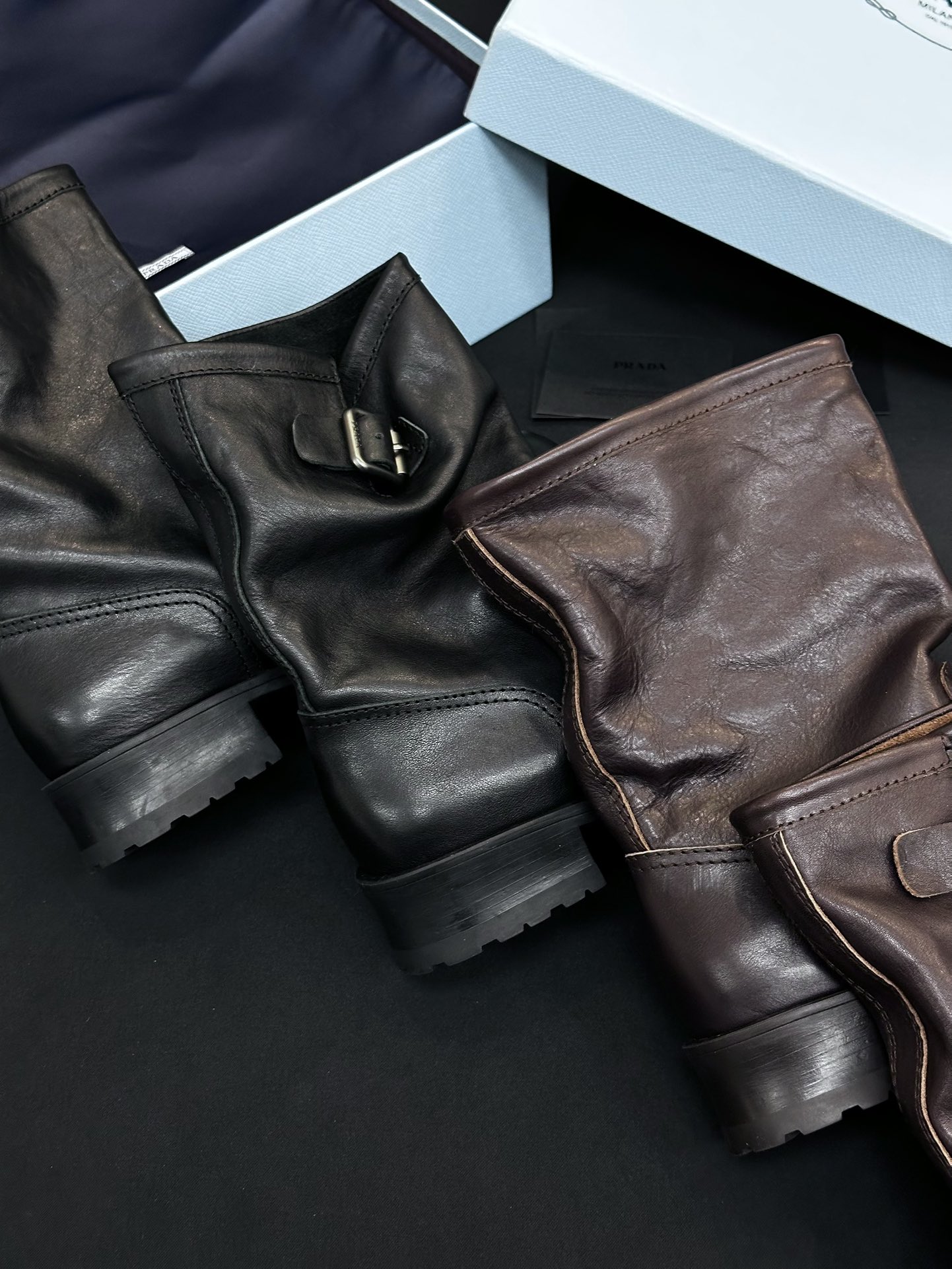 NIGO Prada Women's Fall/Winter Fashion Classic Round Toe Slip On Leather Vintage Western Cowboy Boots Dr. Martens Boots Shoes #nigo78531