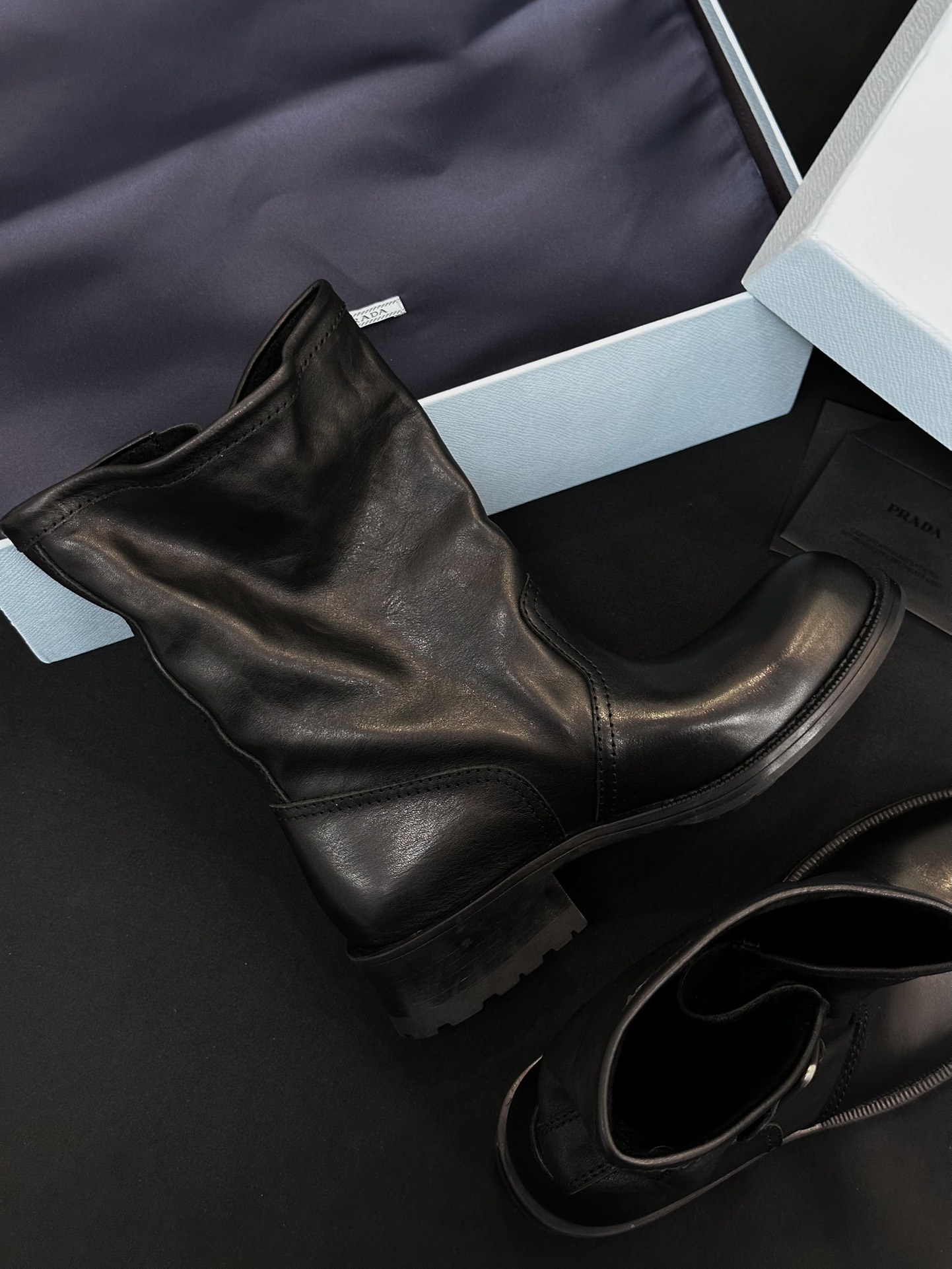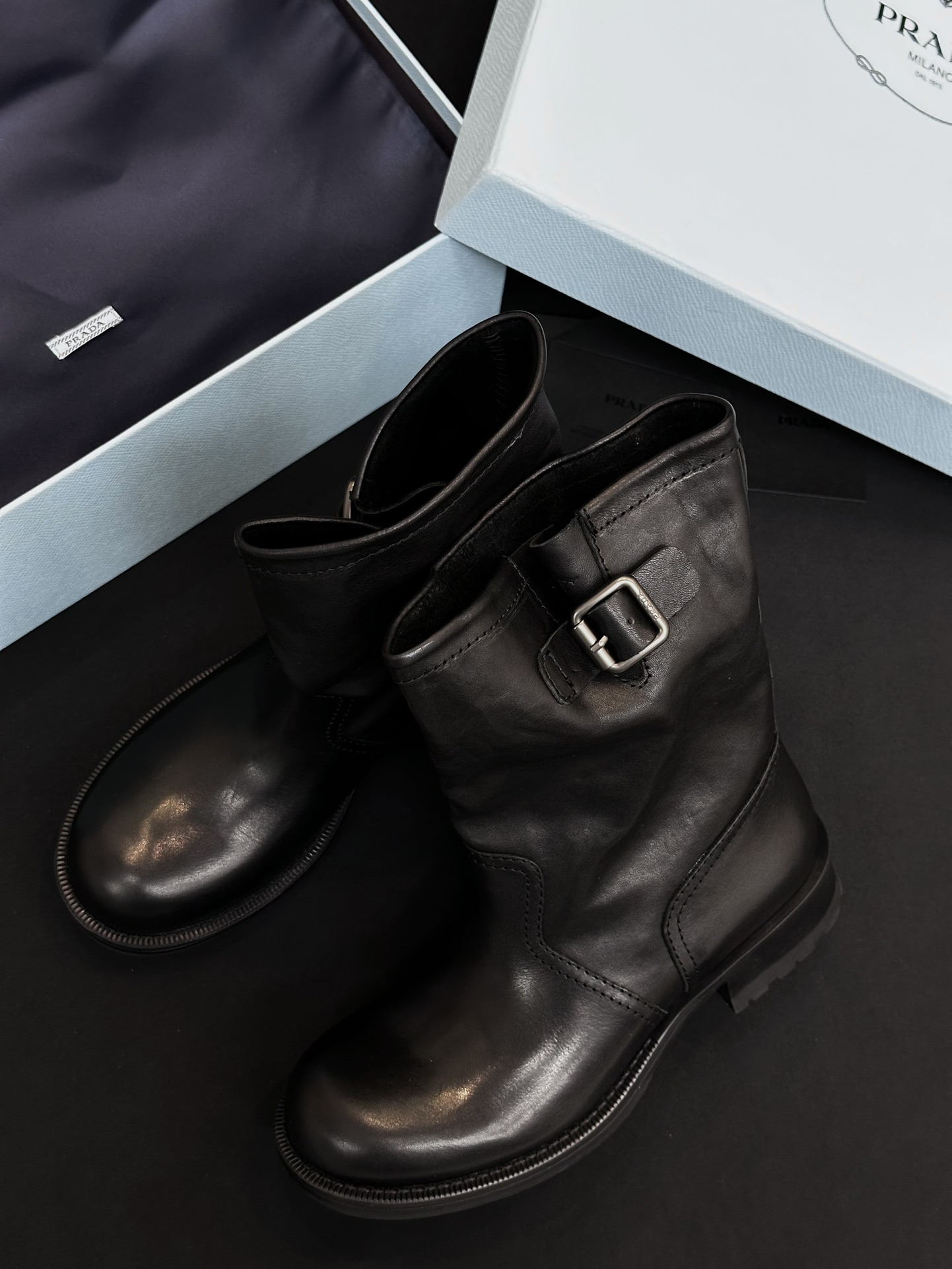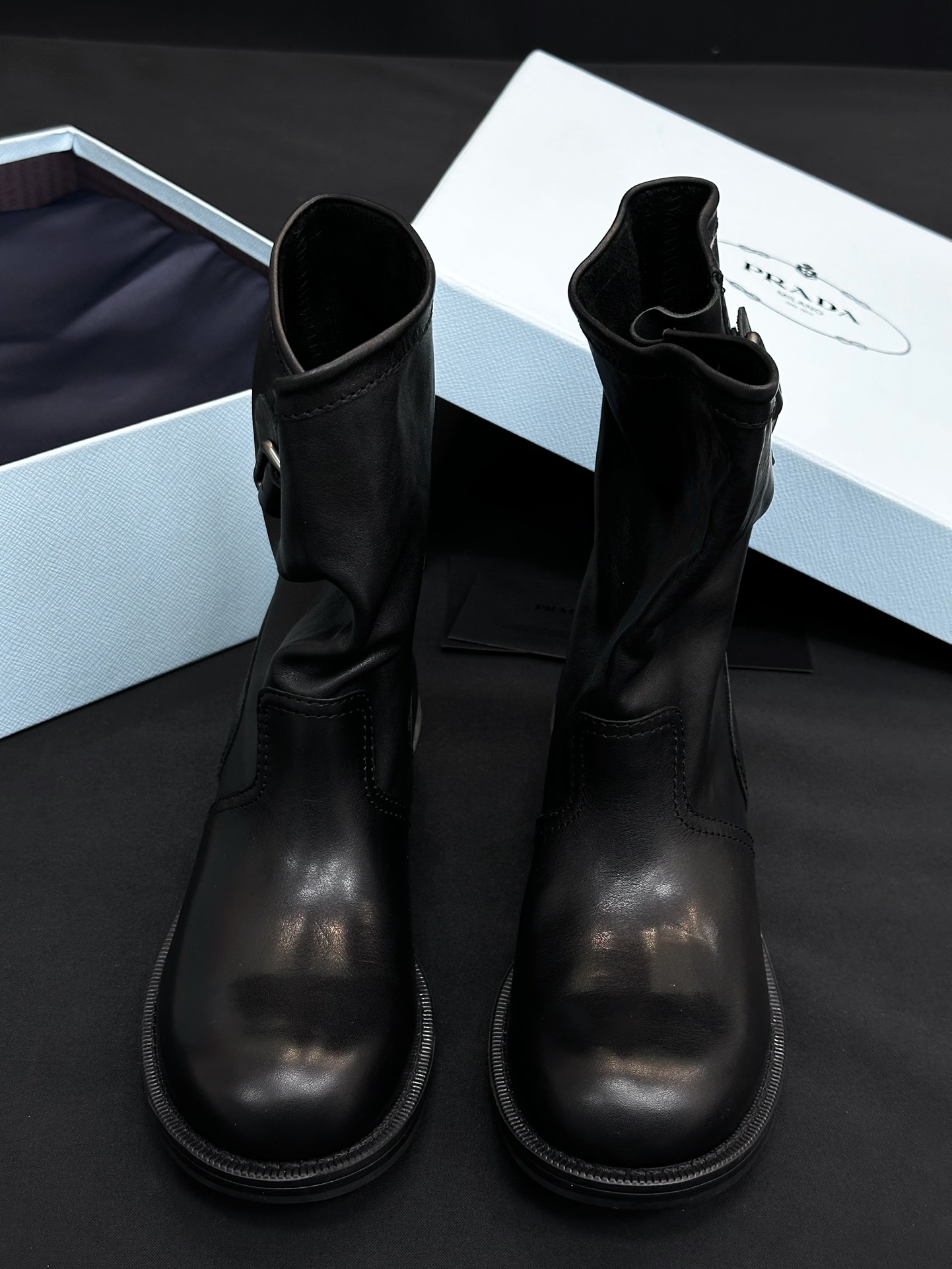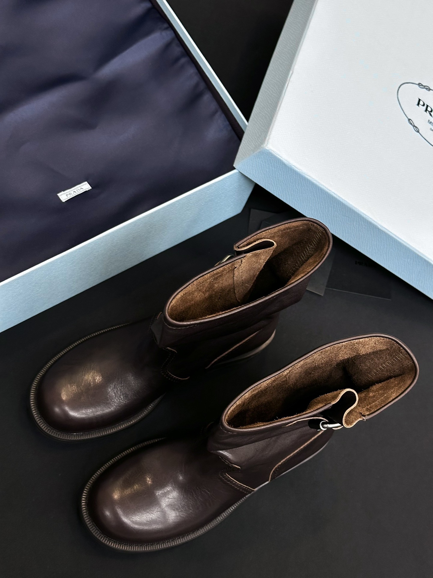 NIGO Prada Women's Fall/Winter Fashion Classic Round Toe Slip On Leather Vintage Western Cowboy Boots Dr. Martens Boots Shoes #nigo78531