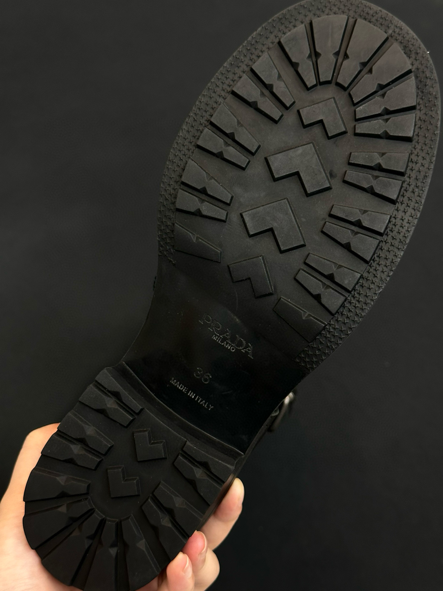 This Prada shoes showcases the brand's exceptional craftsmanship and attention to detail. Crafted from premium leather, this piece combines timeless luxury with modern style.