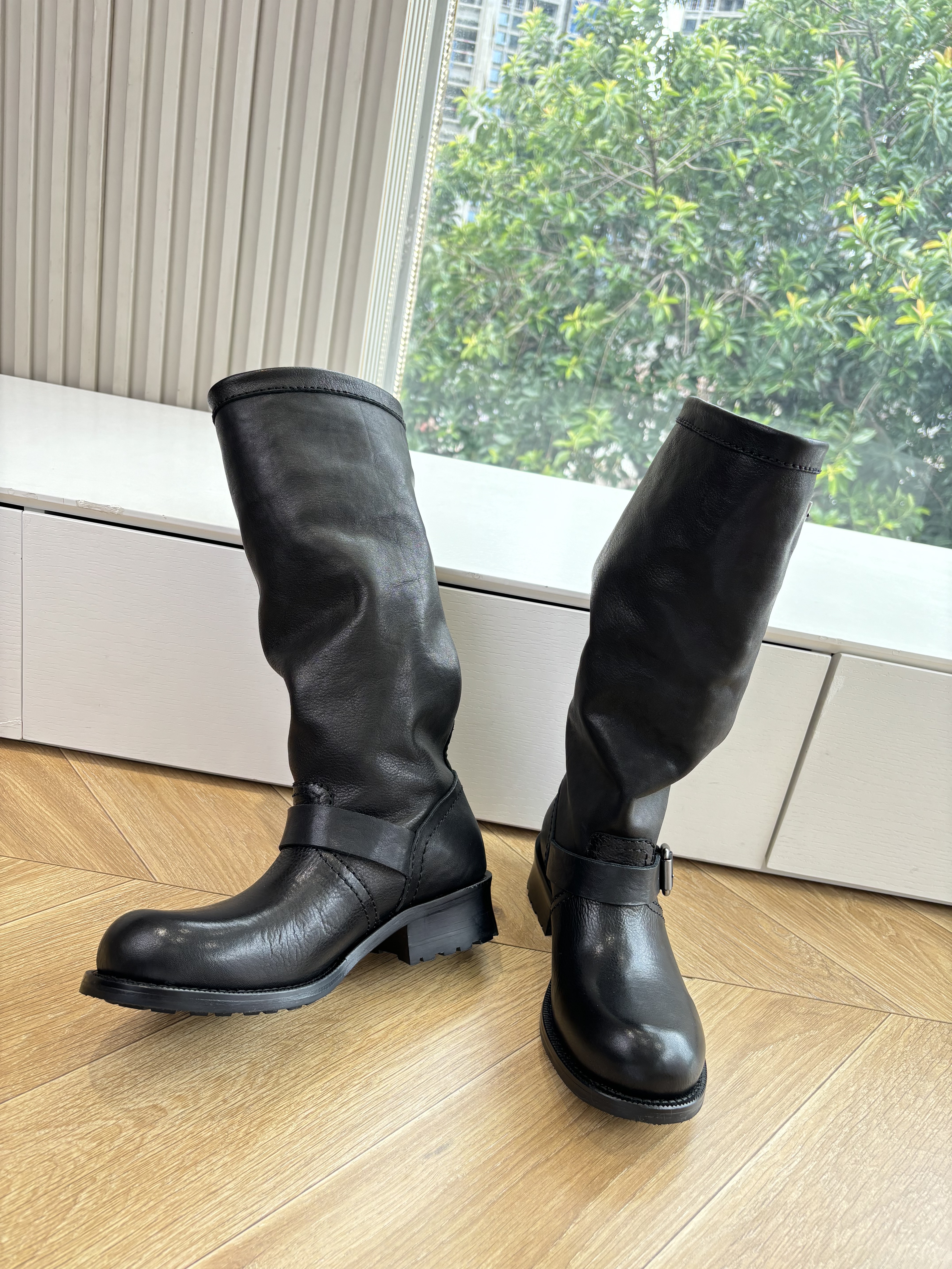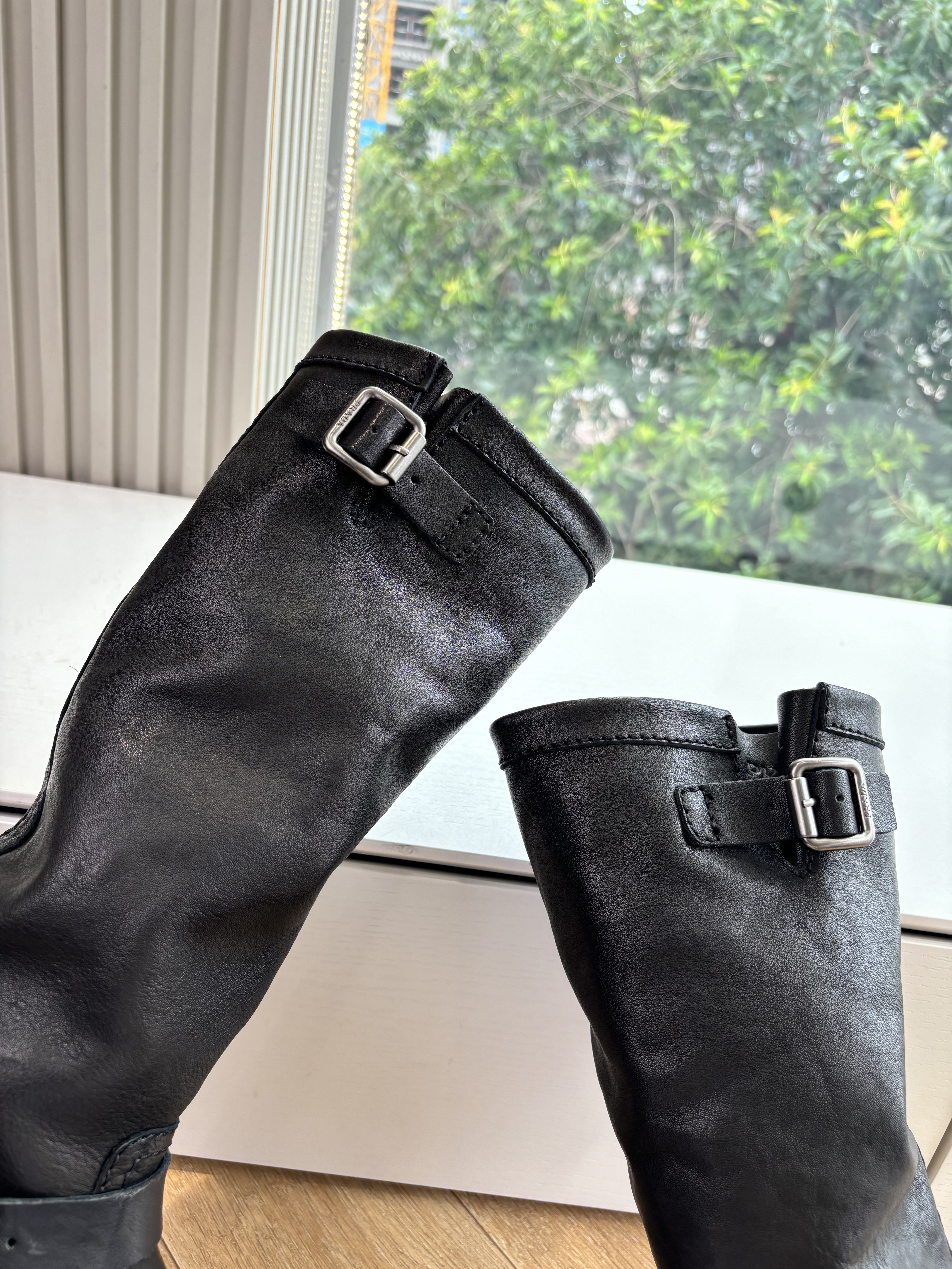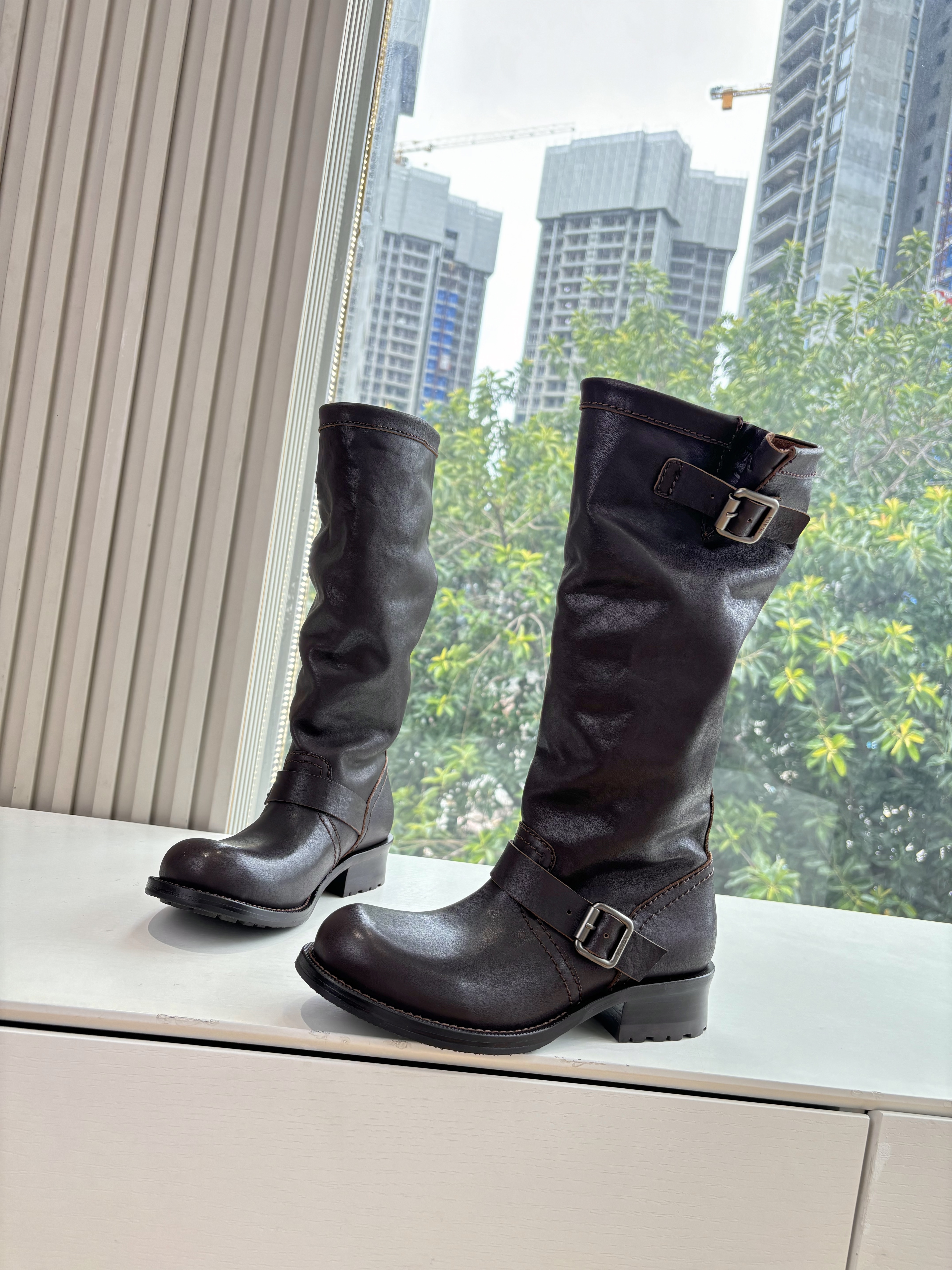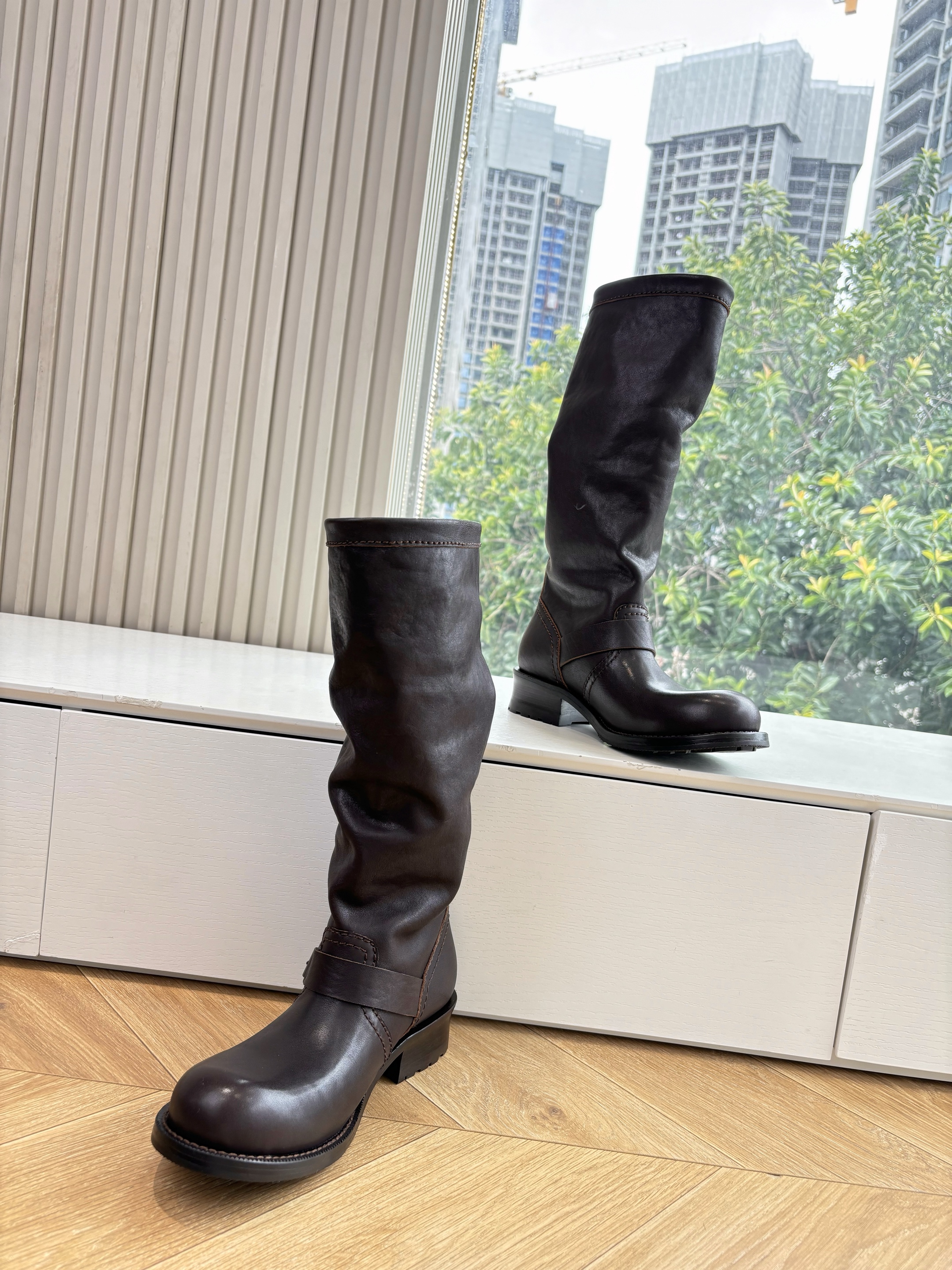 NIGO Prada Women's Fall/Winter Fashion Classic Solid Color Leather Round Toe Slip On Chelsea Boots with Creased Details Rider Boots Shoes #nigo78914
