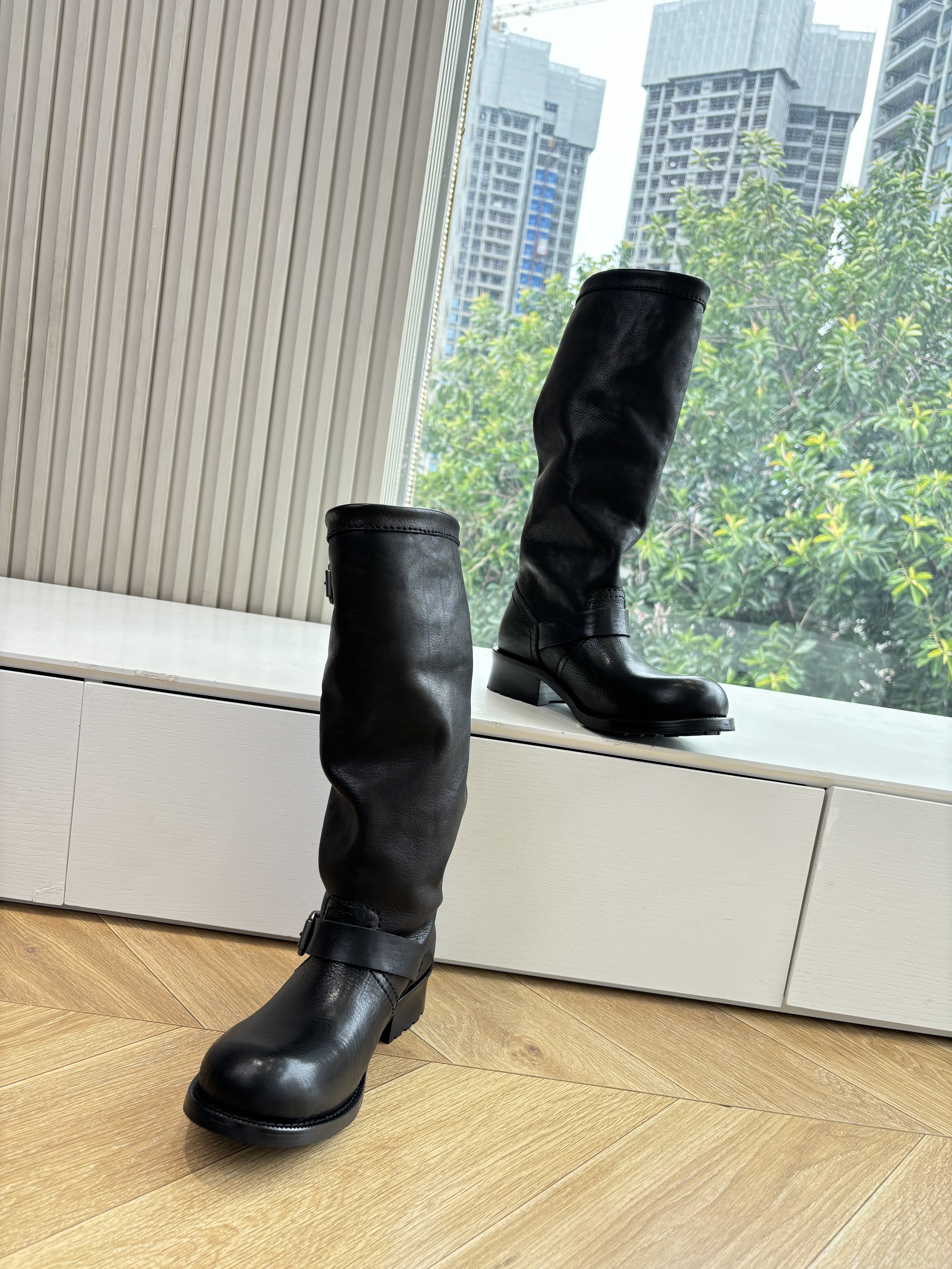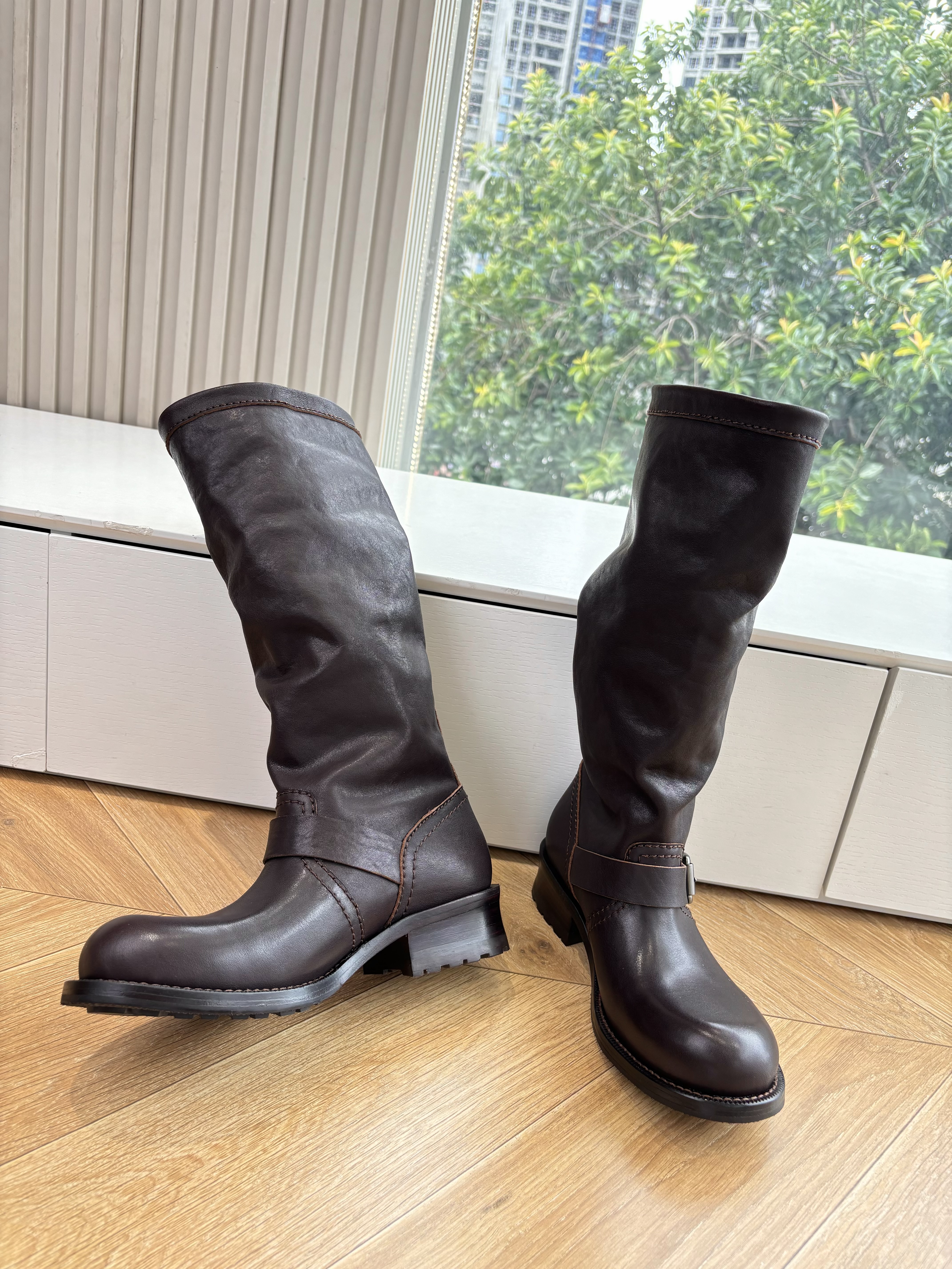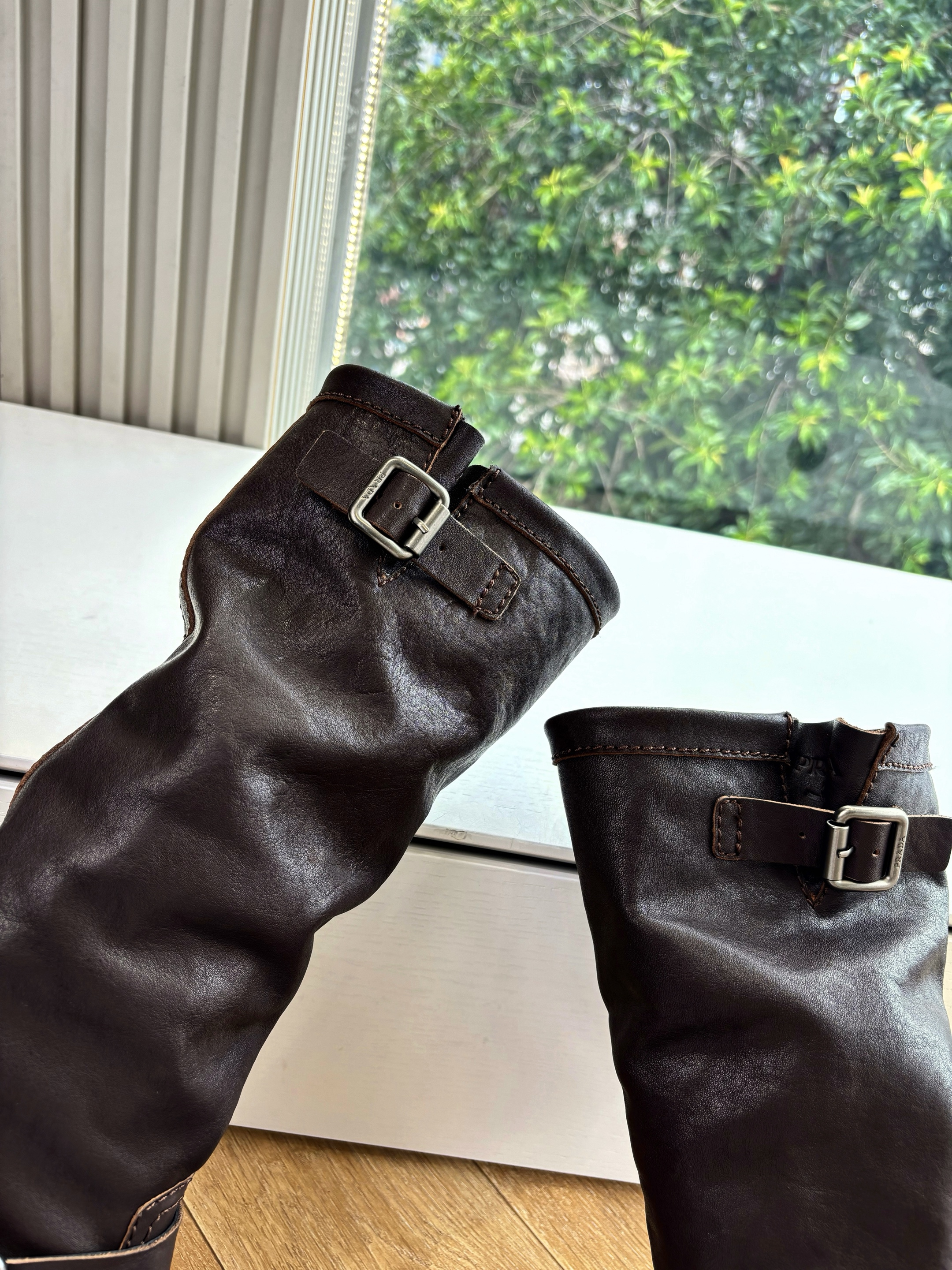 NIGO Prada Women's Fall/Winter Fashion Classic Solid Color Leather Round Toe Slip On Chelsea Boots with Creased Details Rider Boots Shoes #nigo78914