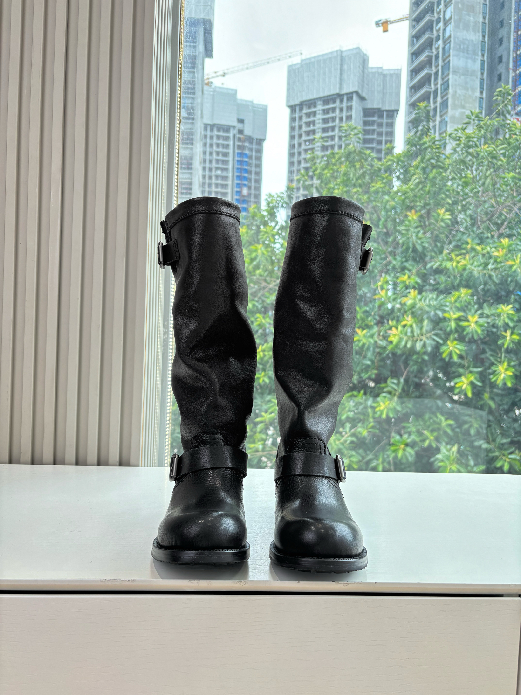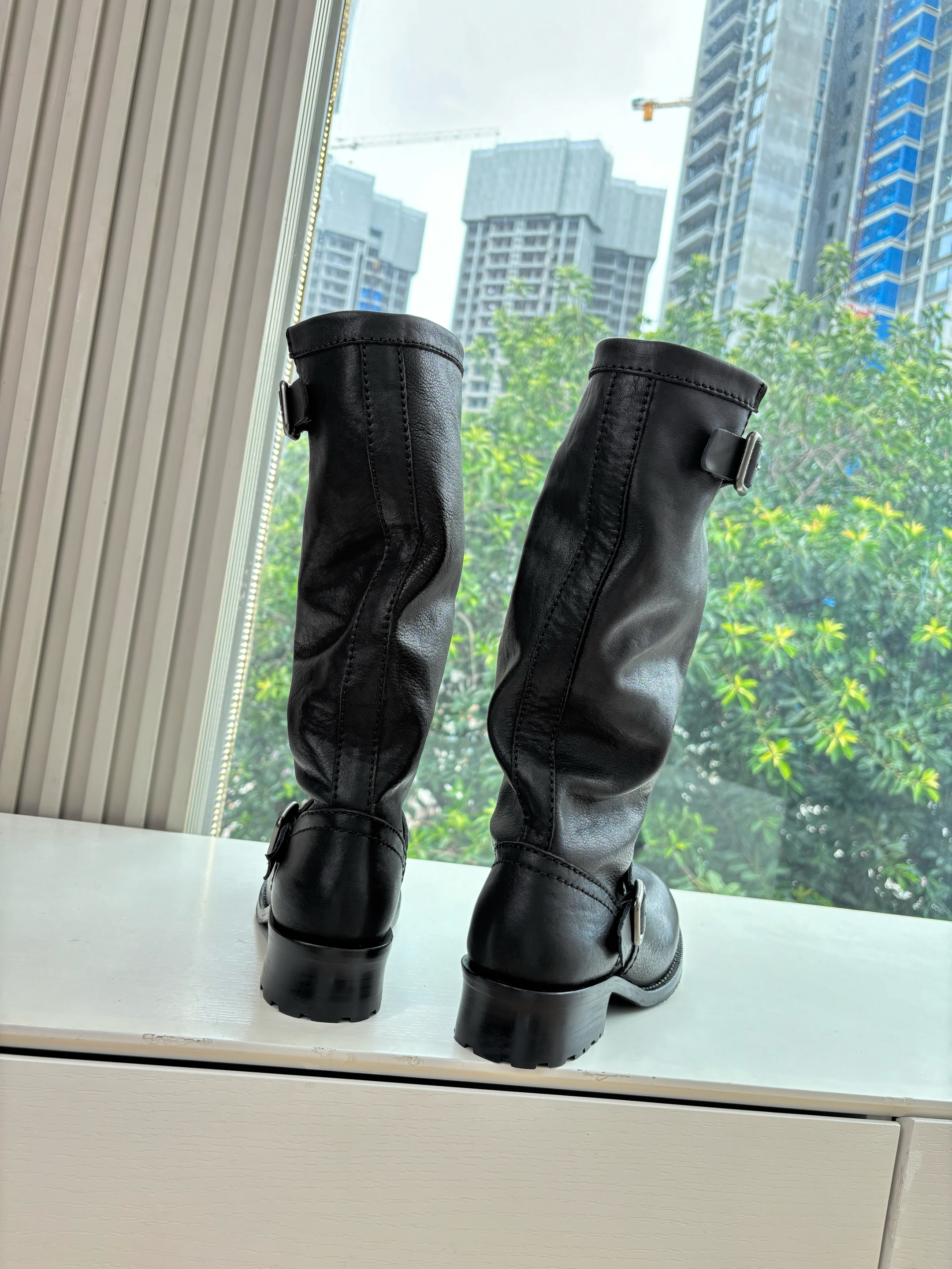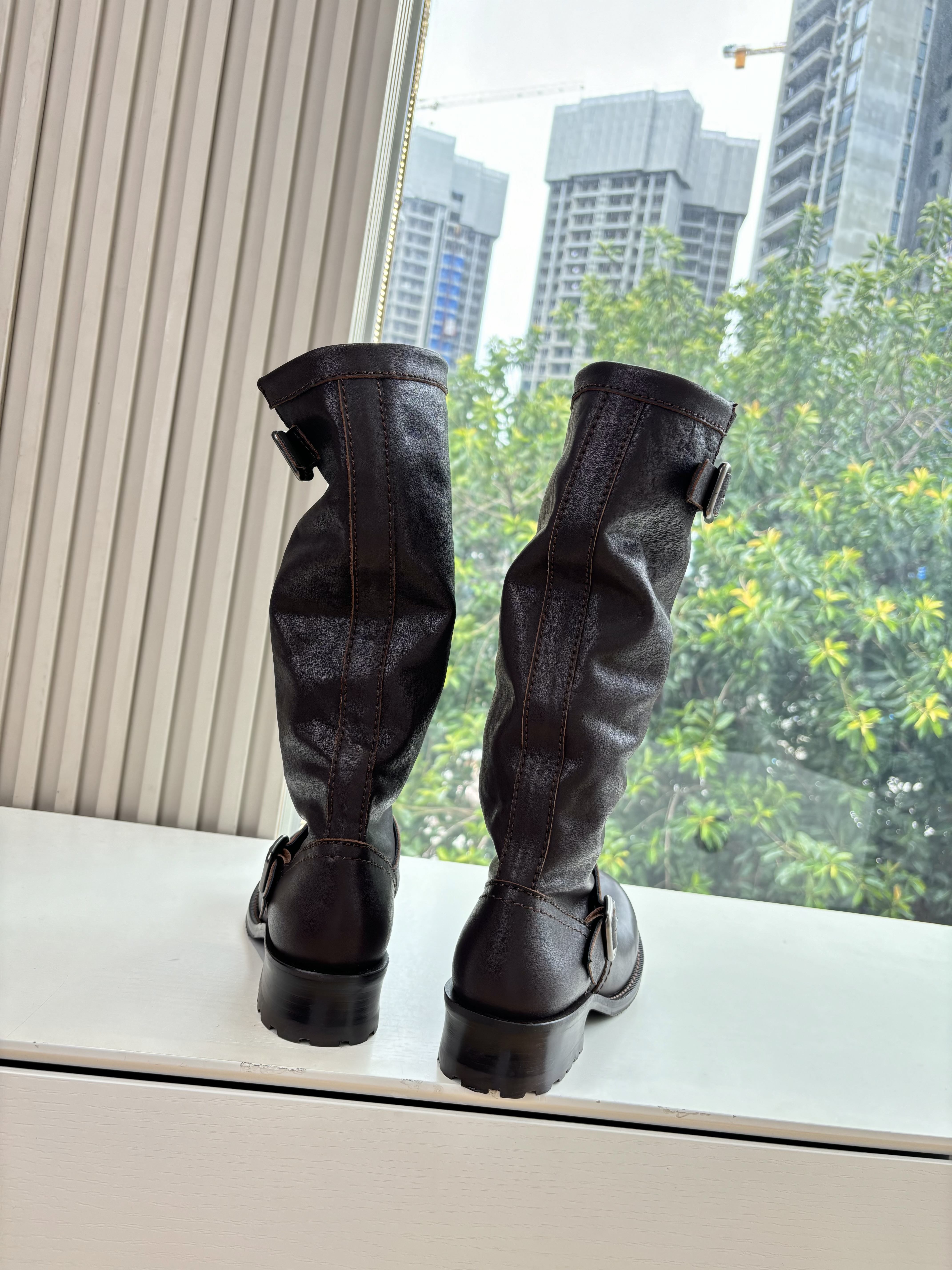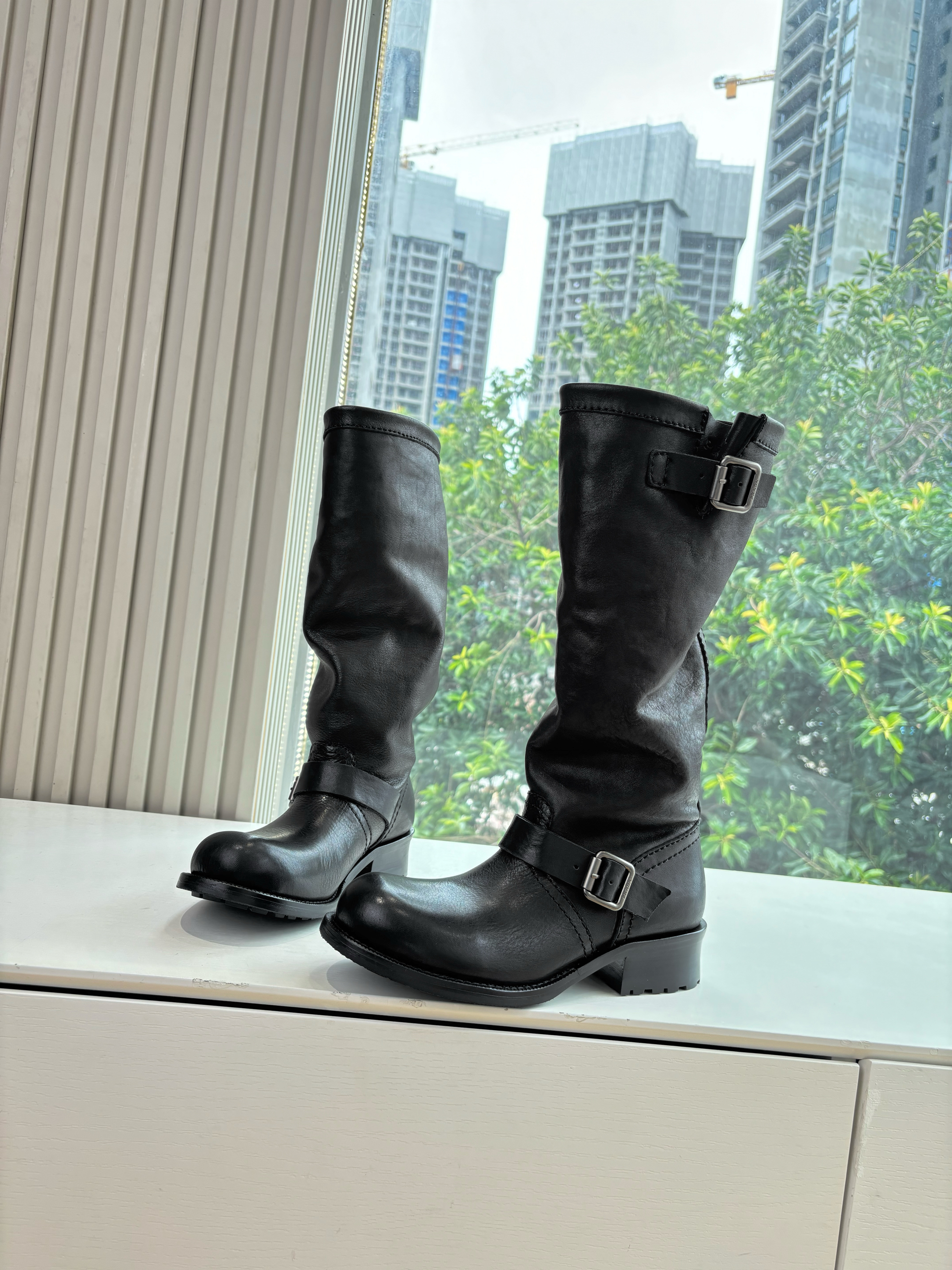 NIGO Prada Women's Fall/Winter Fashion Classic Solid Color Leather Round Toe Slip On Chelsea Boots with Creased Details Rider Boots Shoes #nigo78914