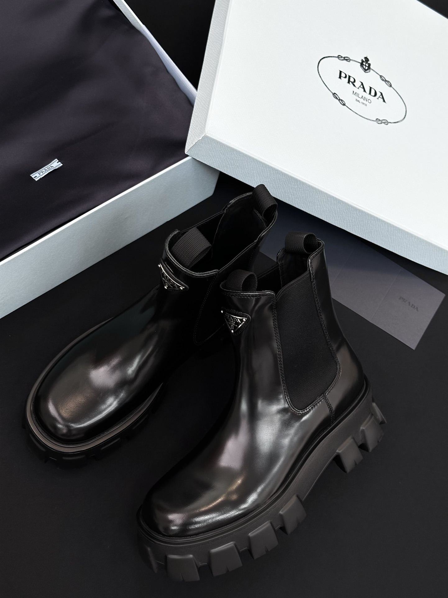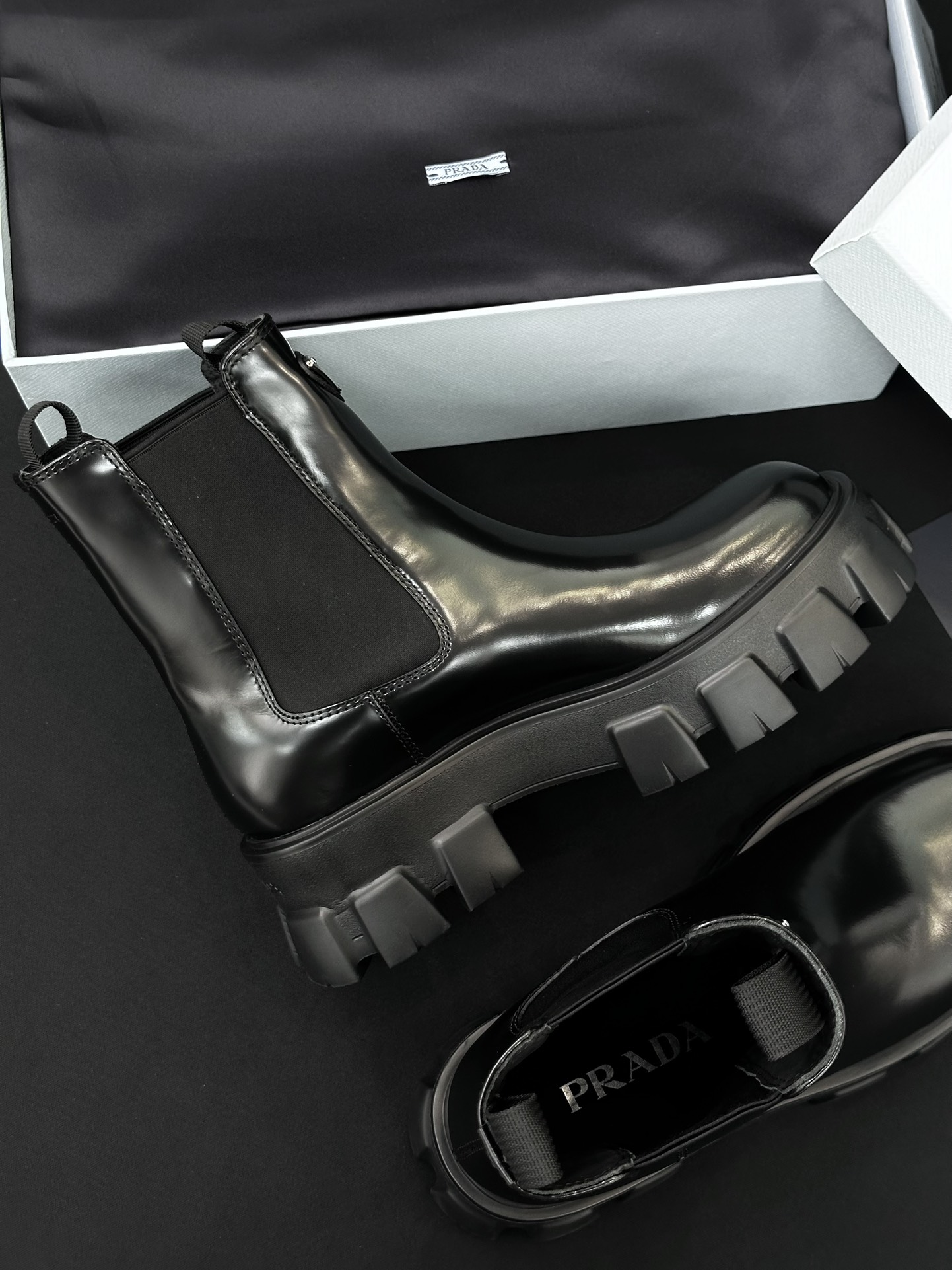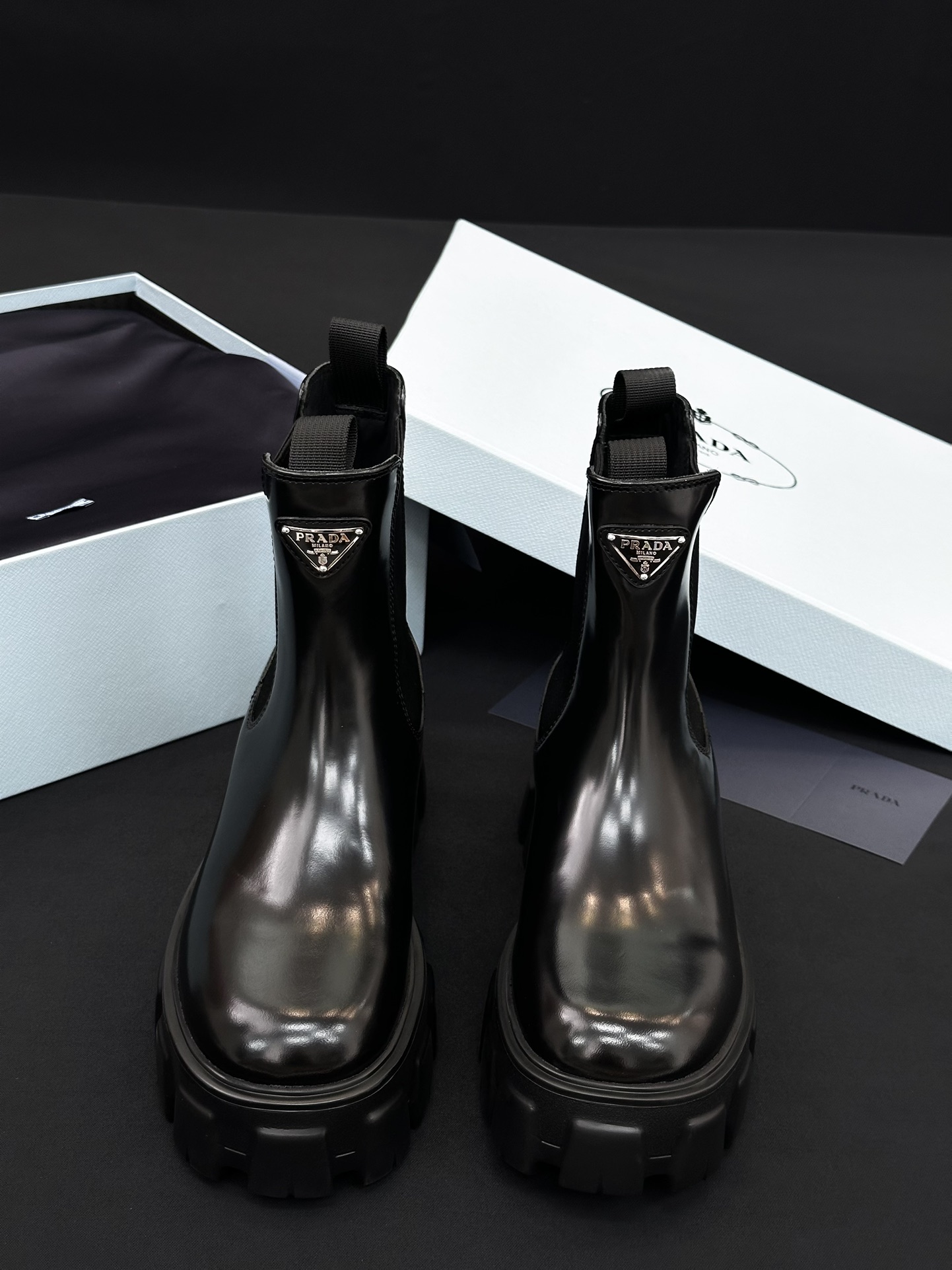 NIGO Prada Women's Fall/Winter Fashion Classic Solid Color Round Toe Slip On Leather Ankle Boots Chester Boots with Thick Soles Shoes #nigo78532