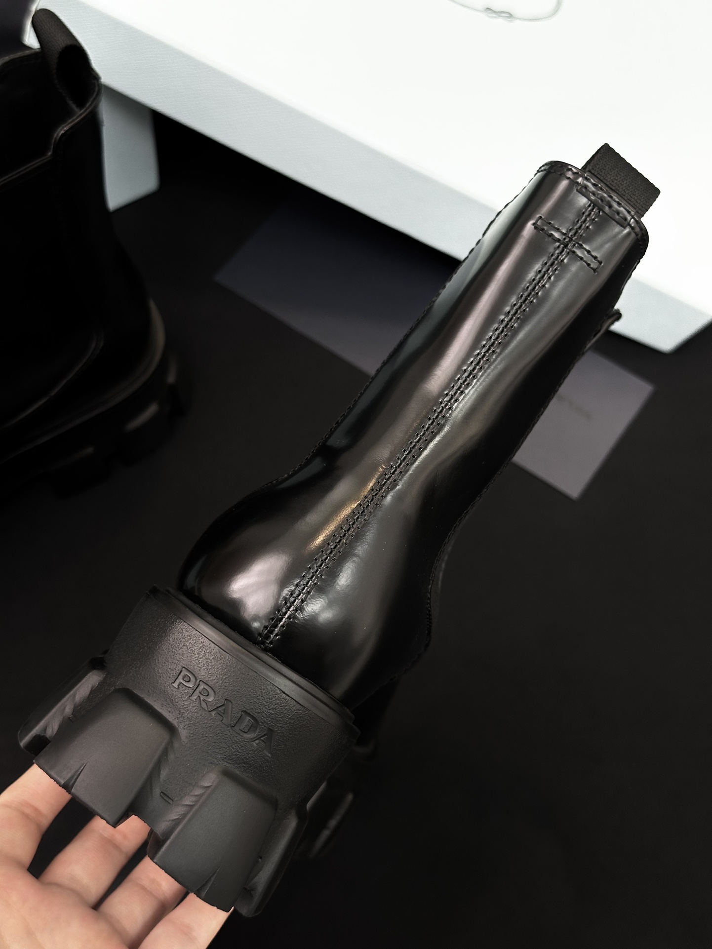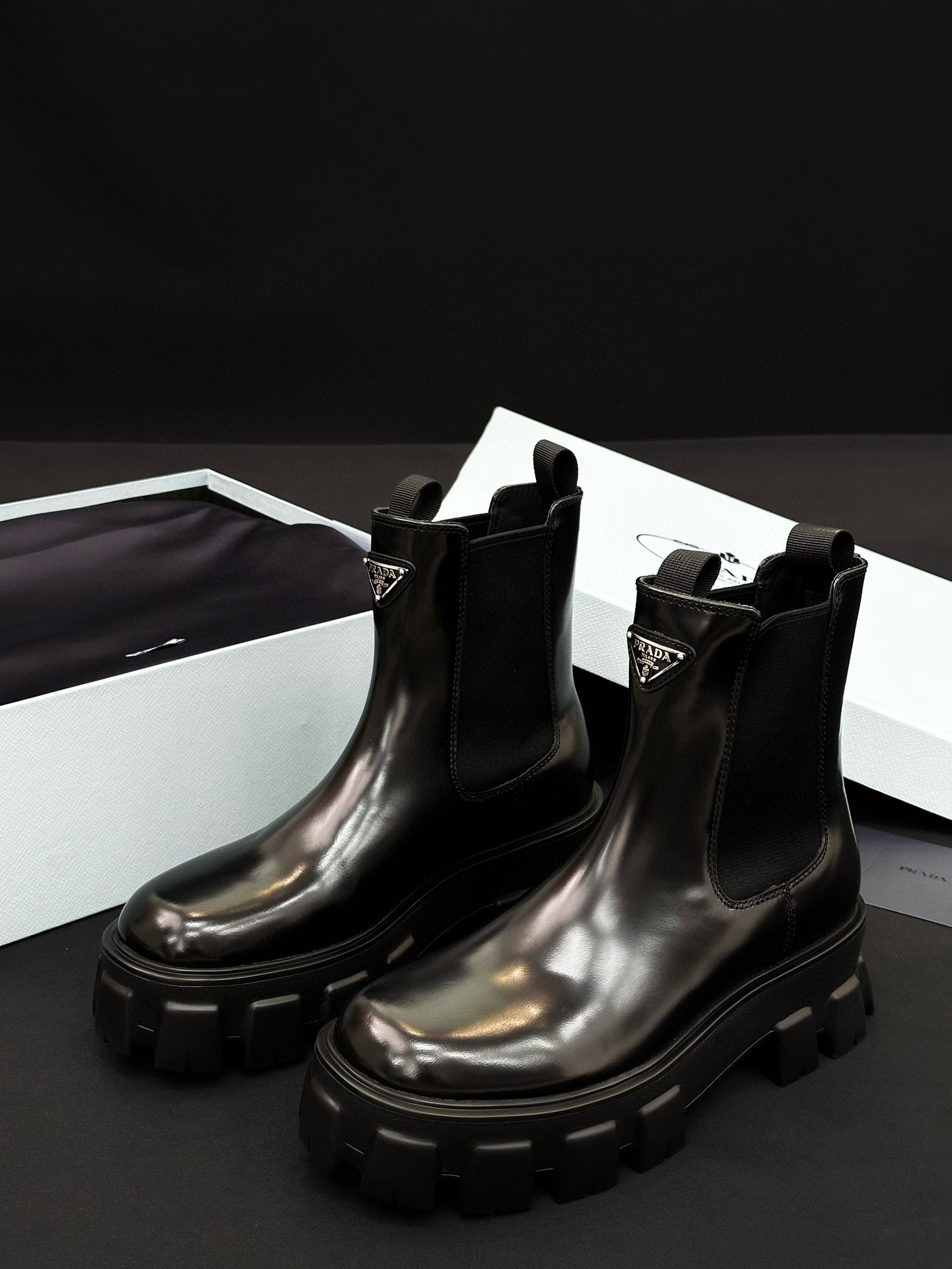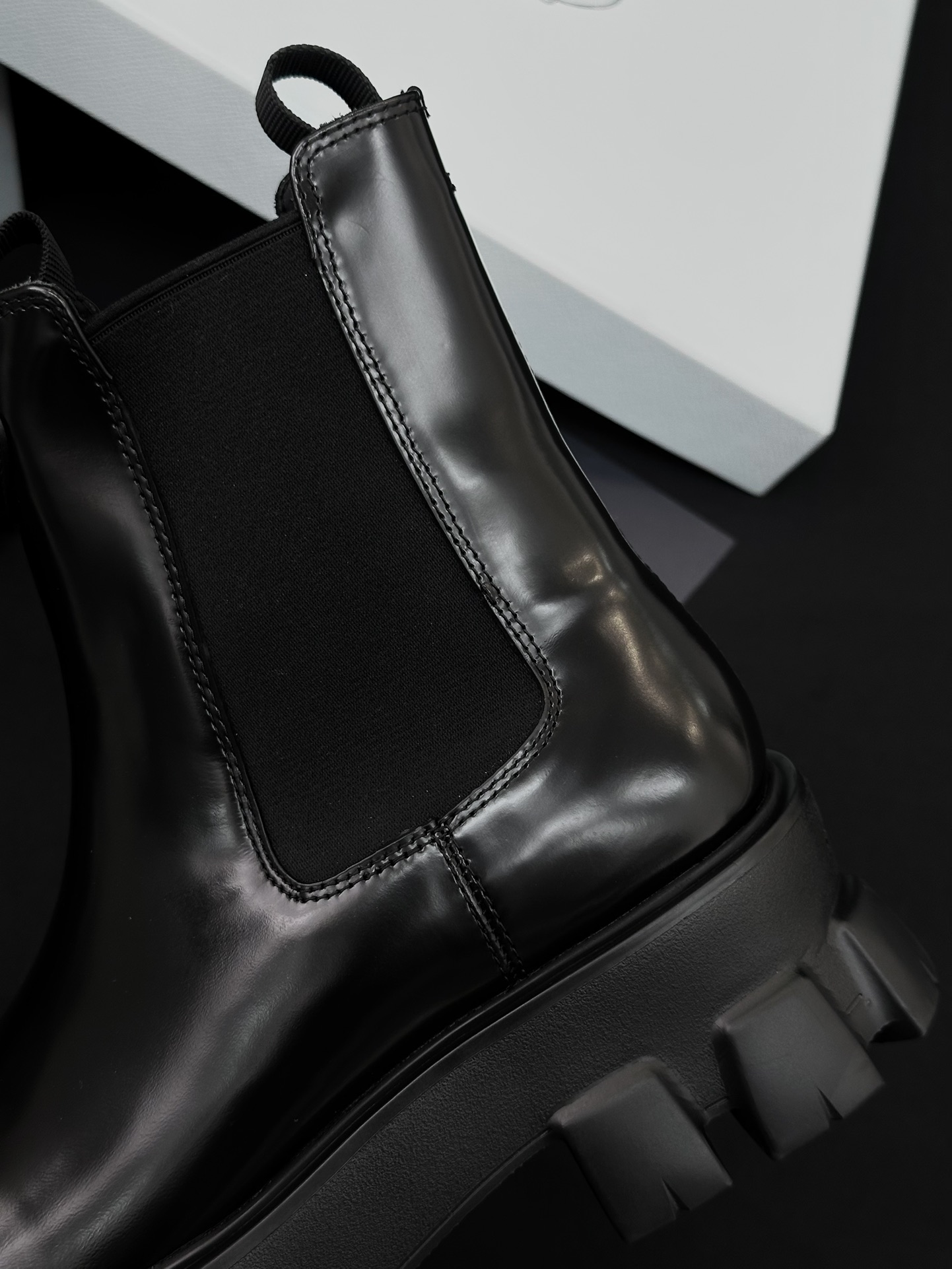 NIGO Prada Women's Fall/Winter Fashion Classic Solid Color Round Toe Slip On Leather Ankle Boots Chester Boots with Thick Soles Shoes #nigo78532