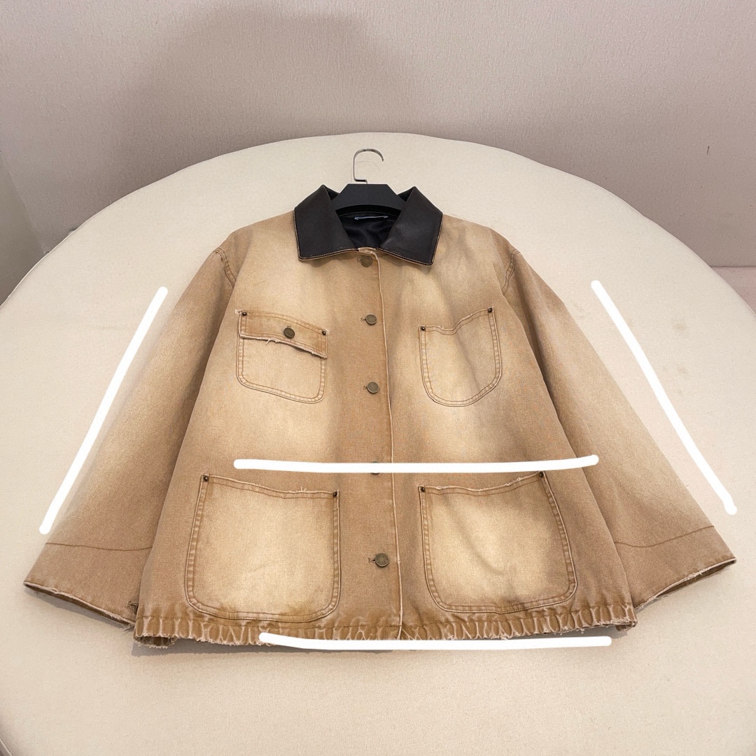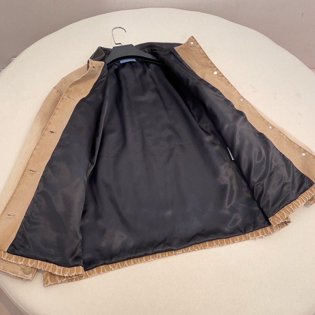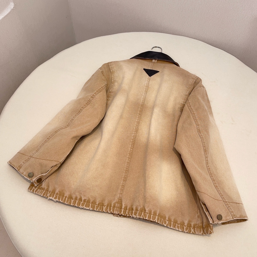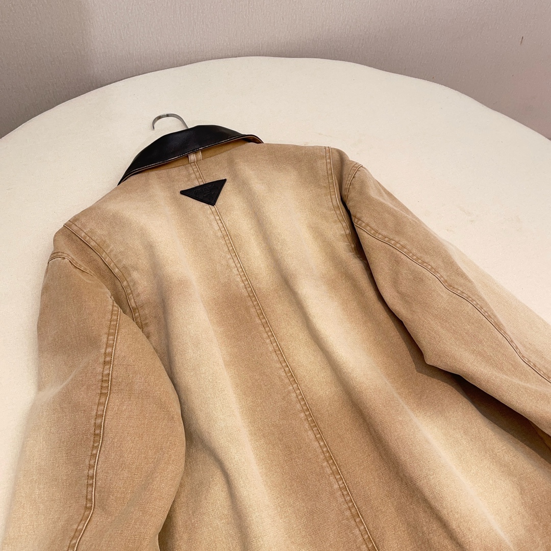 NIGO Prada Women's Men's Vintage Gradient Fashion Canvas Cotton Jacket Single Breasted Leather Collar Casual Jacket Ngvp #nigo8945