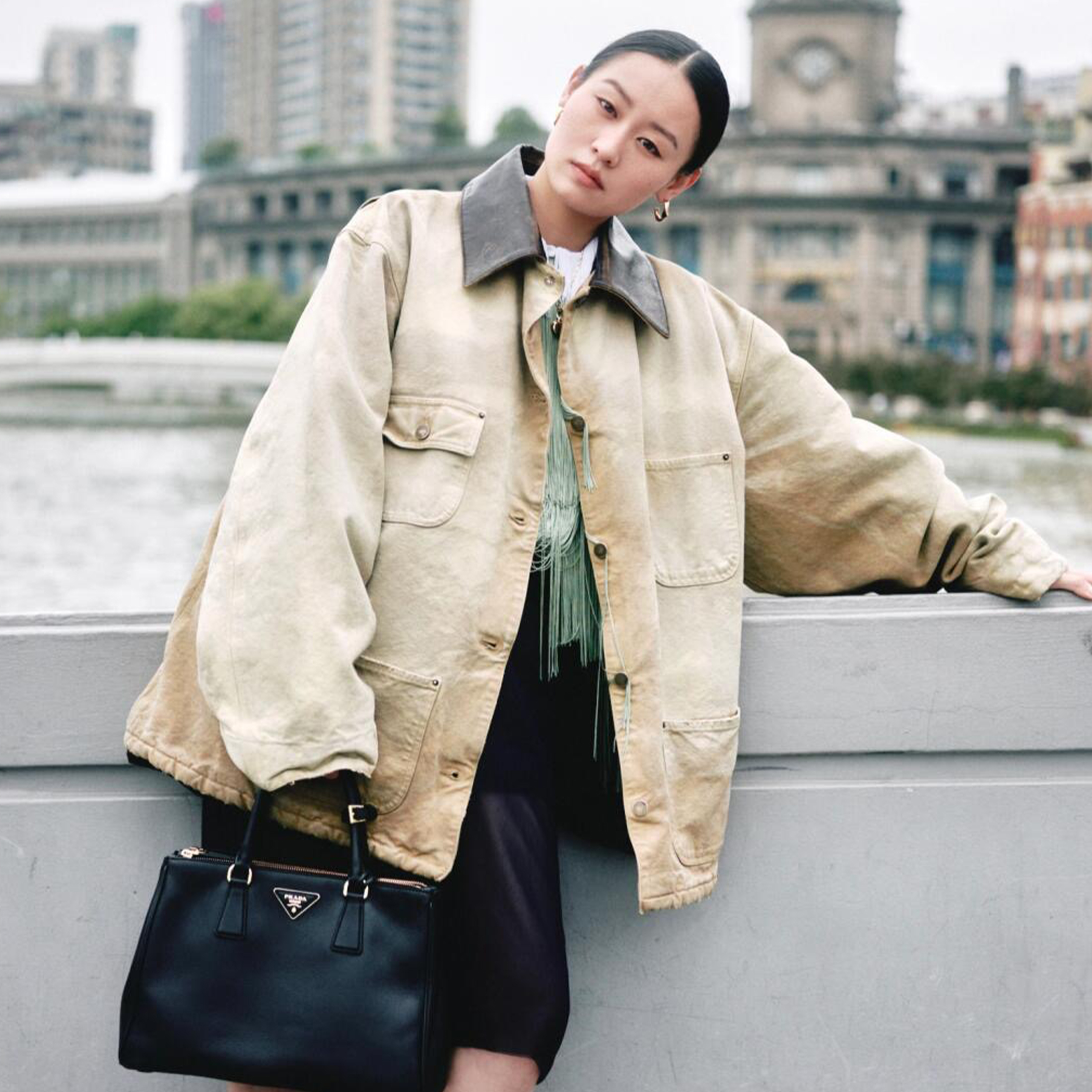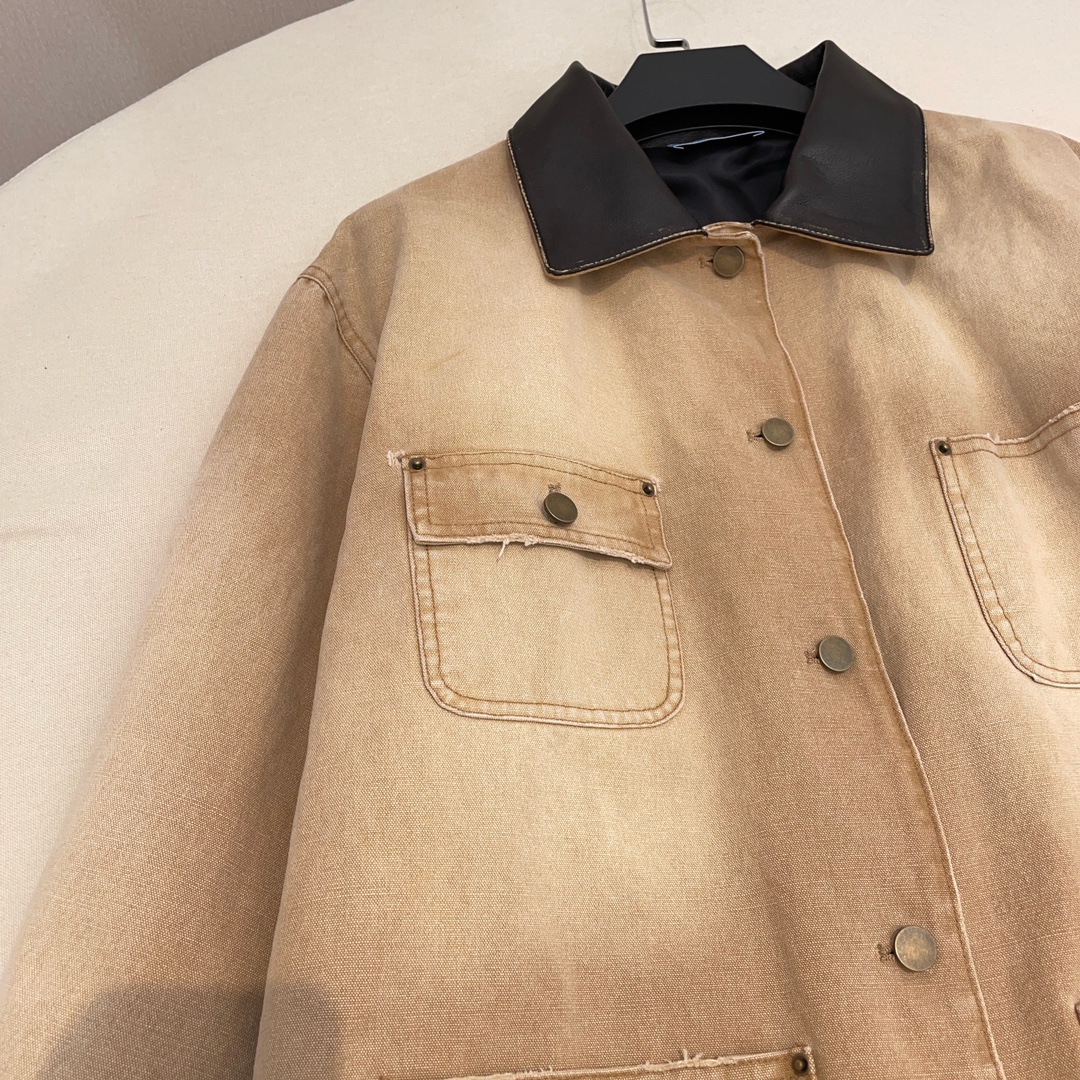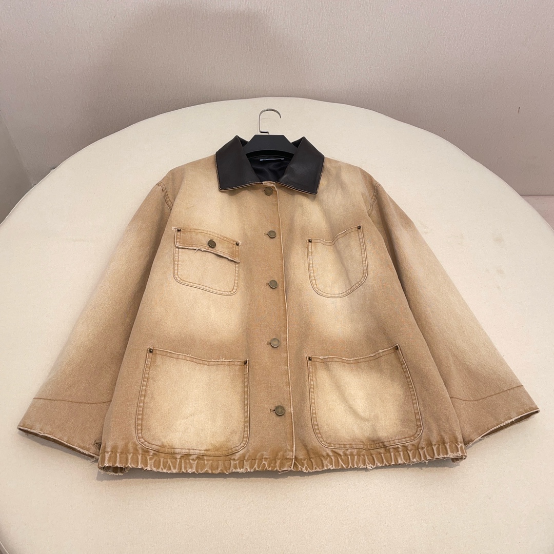 NIGO Prada Women's Men's Vintage Gradient Fashion Canvas Cotton Jacket Single Breasted Leather Collar Casual Jacket Ngvp #nigo8945