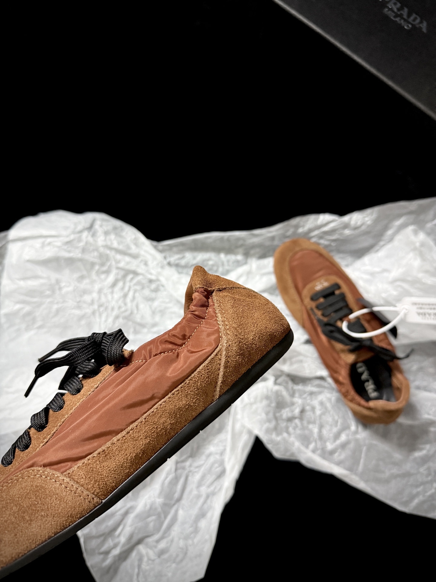 This Prada shoes showcases the brand's exceptional craftsmanship and attention to detail. Crafted from premium suede, nylon, this piece combines timeless luxury with modern style.