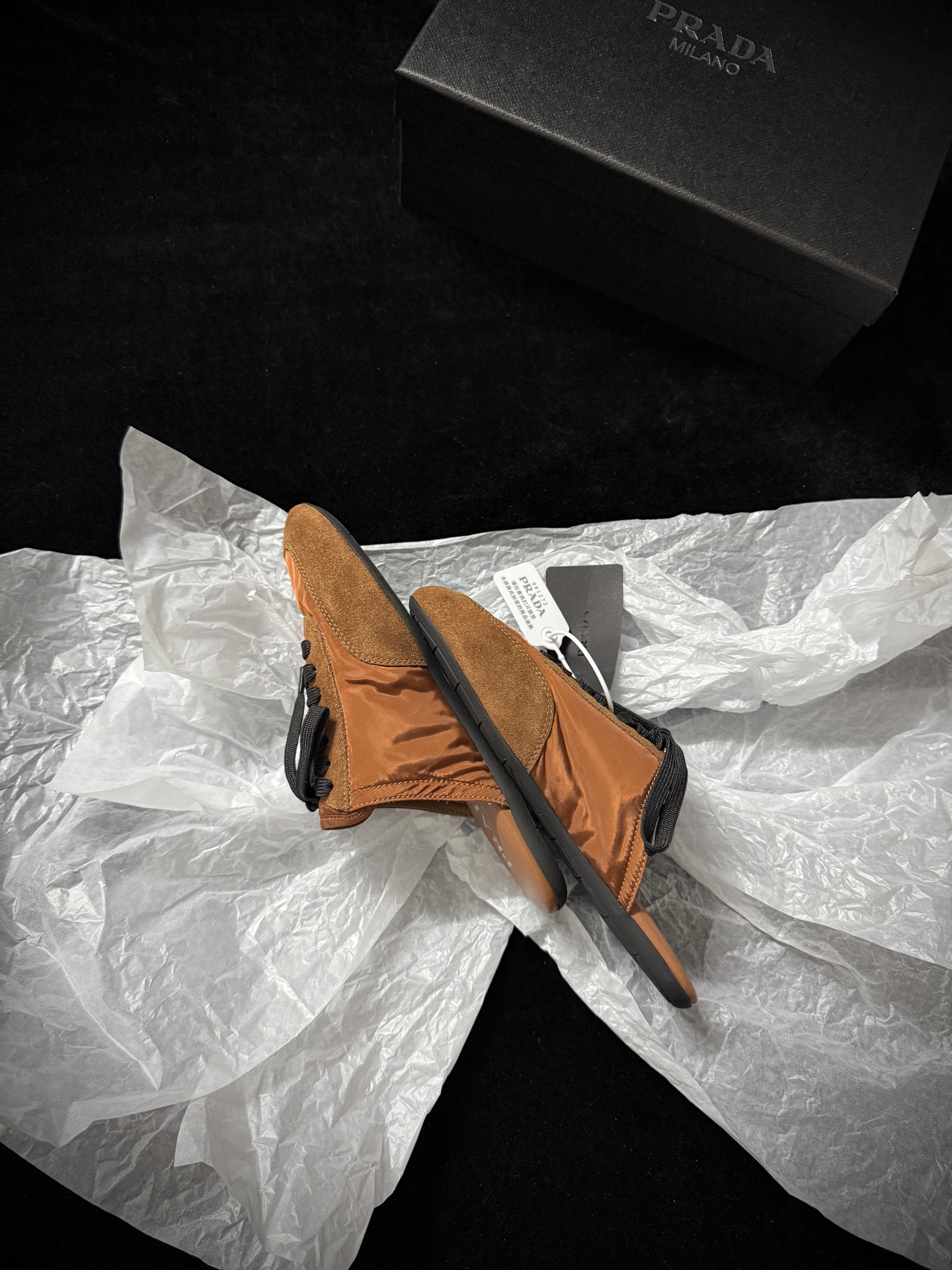 This Prada shoes showcases the brand's exceptional craftsmanship and attention to detail. Crafted from premium suede, nylon, this piece combines timeless luxury with modern style.