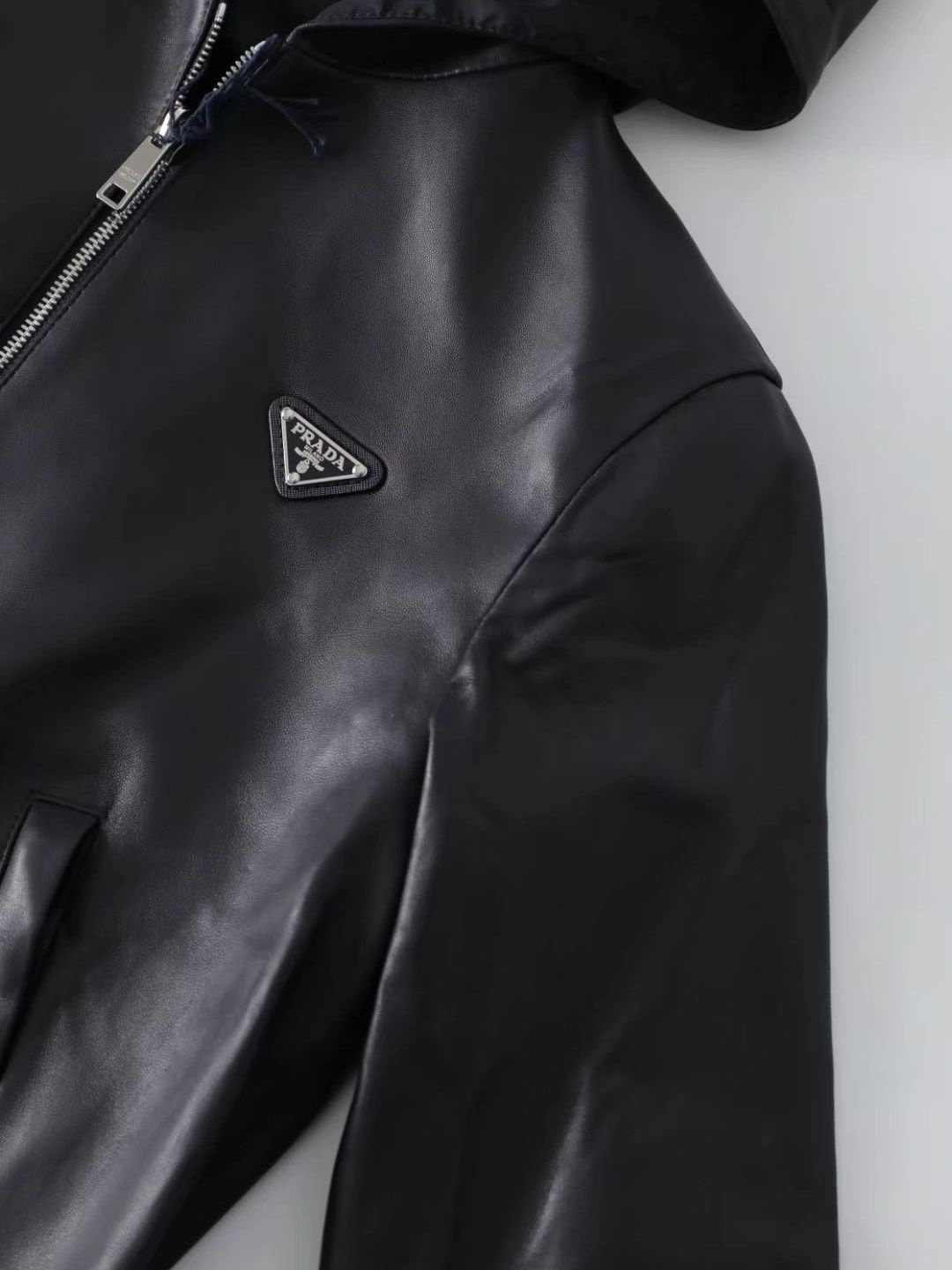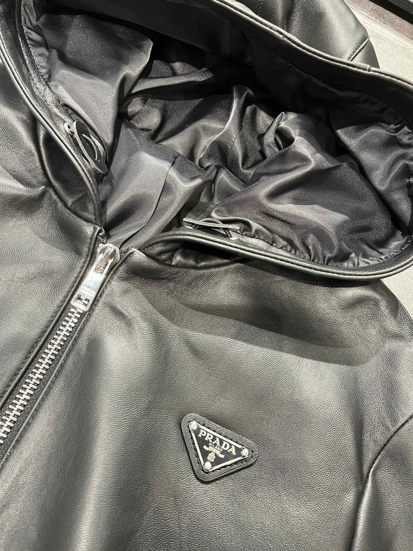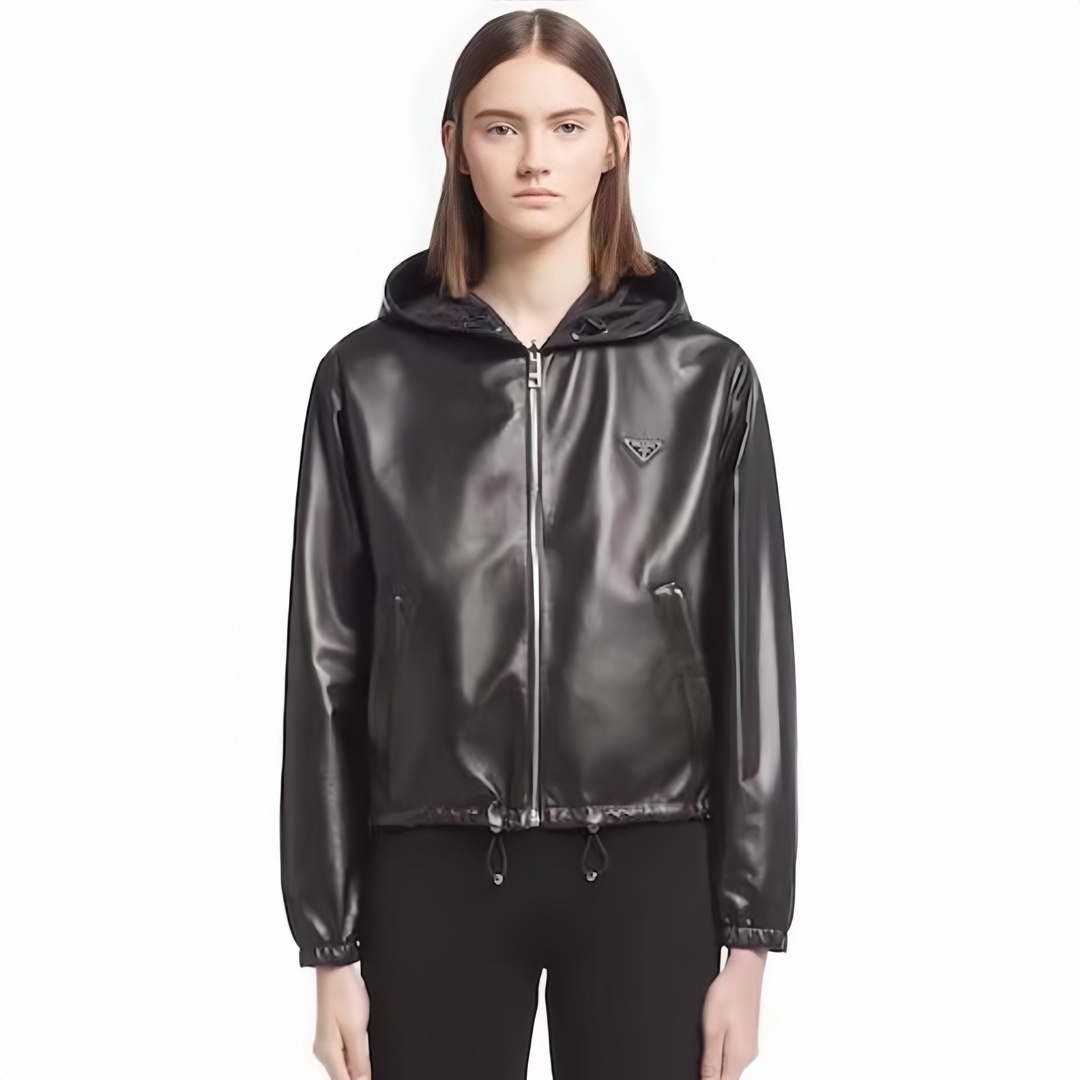 NIGO Prada Women's Spring and Autumn Solid Color Leather Hooded Zipper Long Sleeve Jacket #nigo75832
