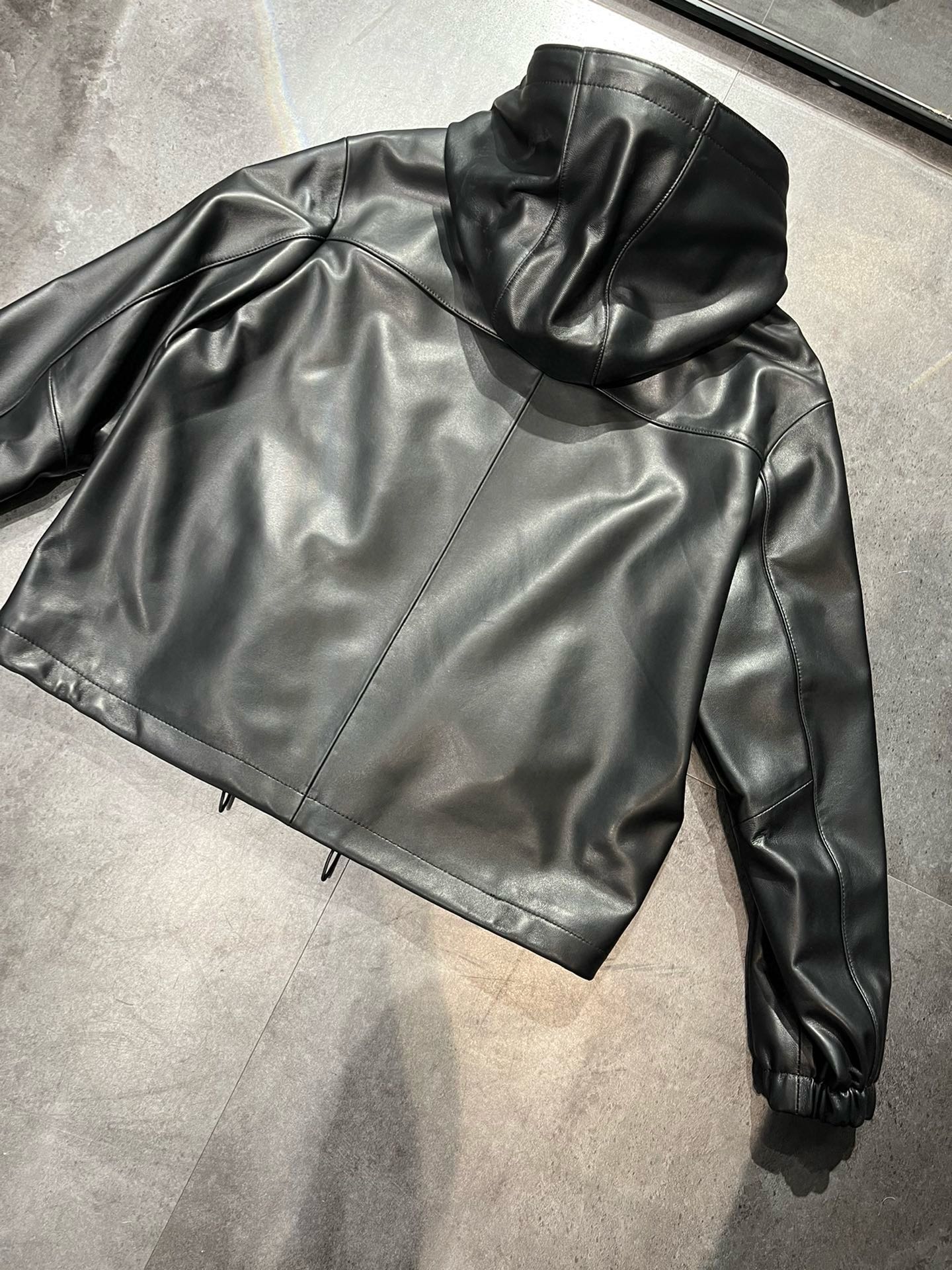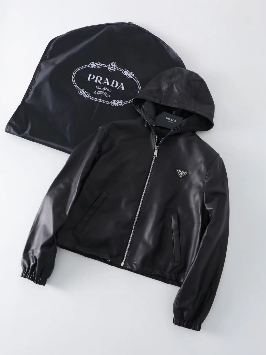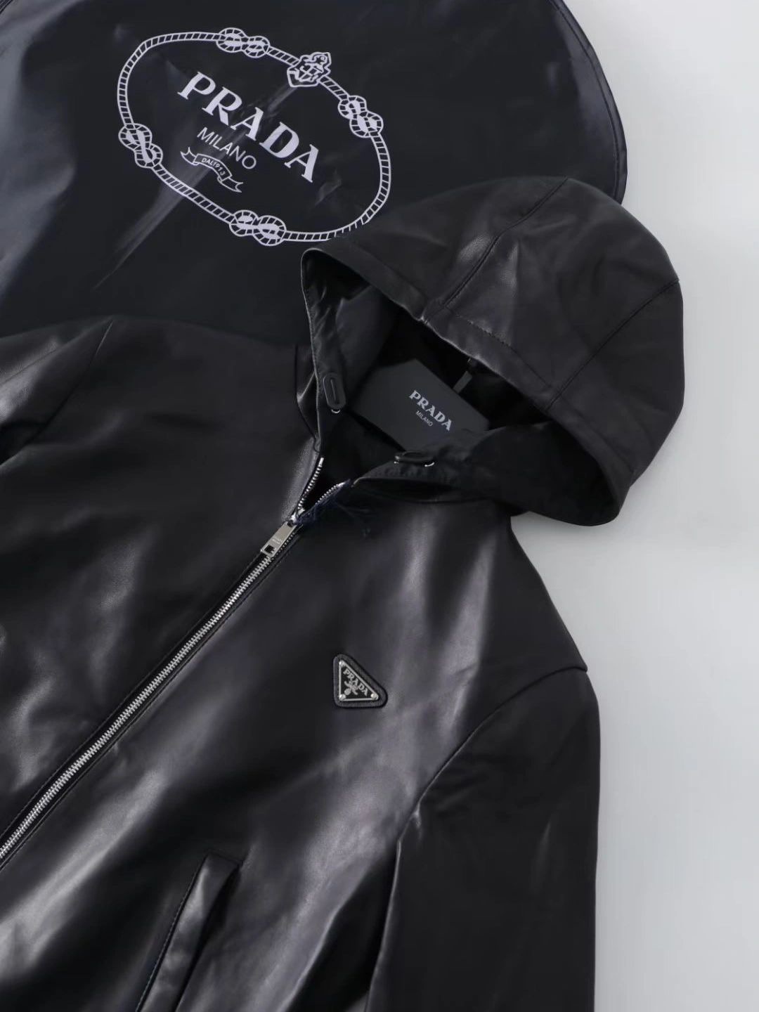NIGO Prada Women's Spring and Autumn Solid Color Leather Hooded Zipper Long Sleeve Jacket #nigo75832