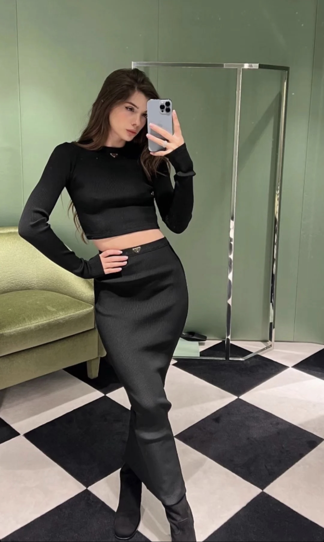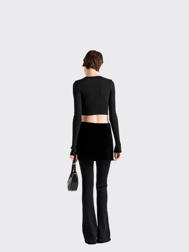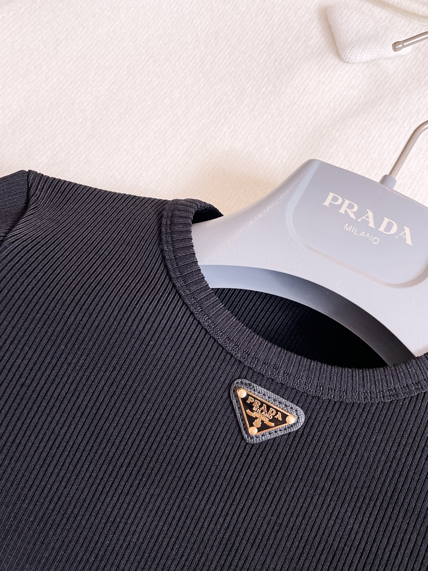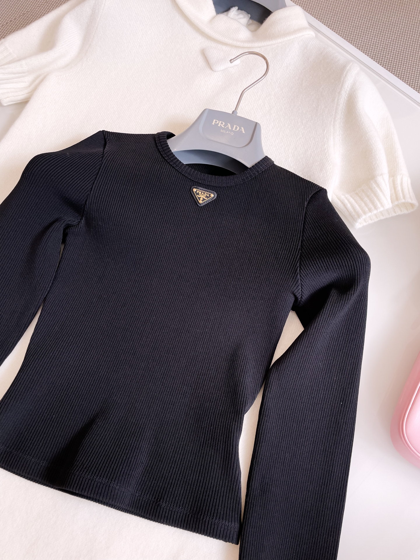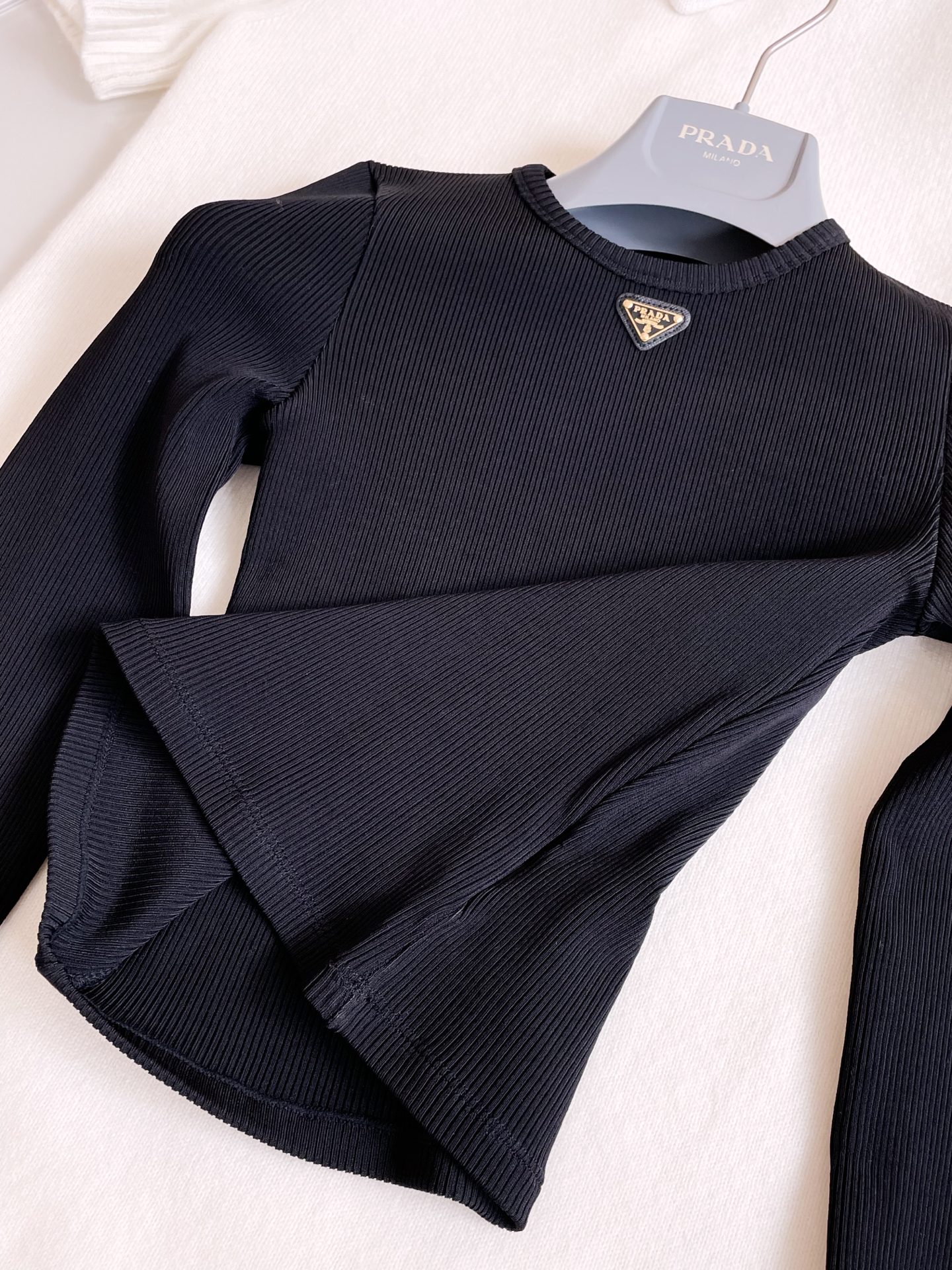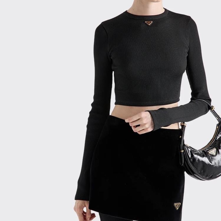 NIGO Prada Women's Spring and Autumn Solid Color Ribbed Logo Printed Round Neck Long Sleeve Knit Sweater #nigo74924
