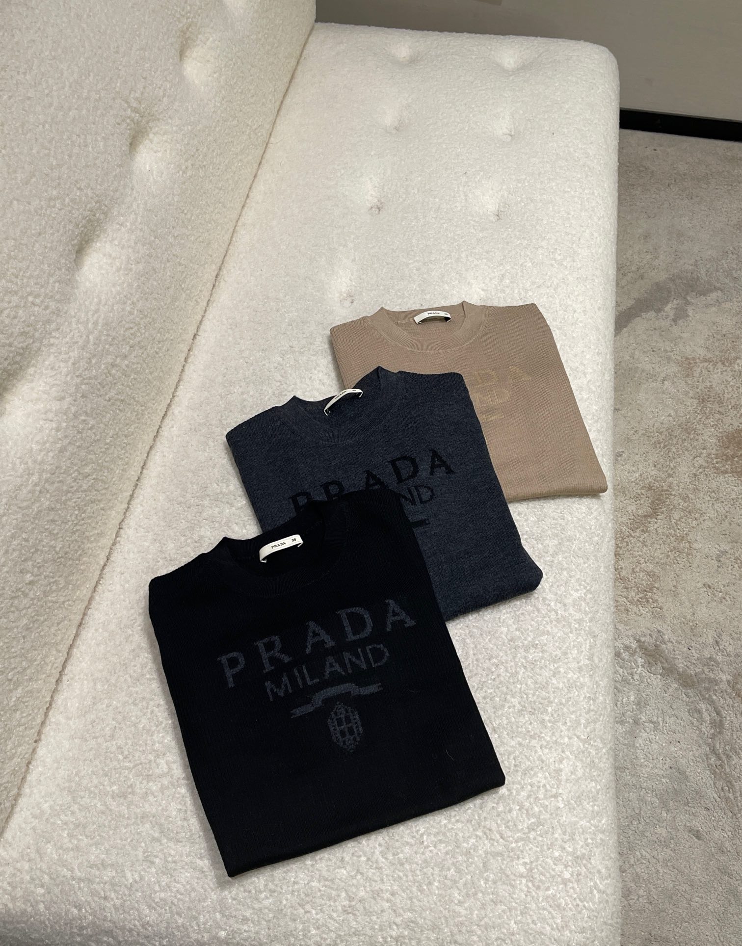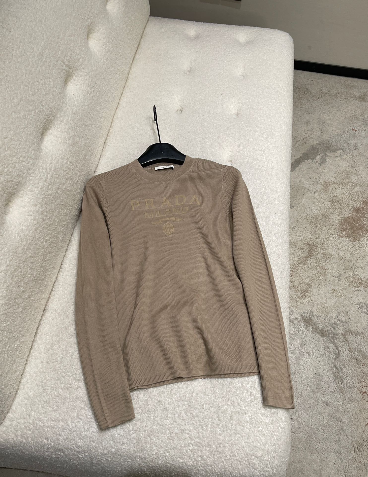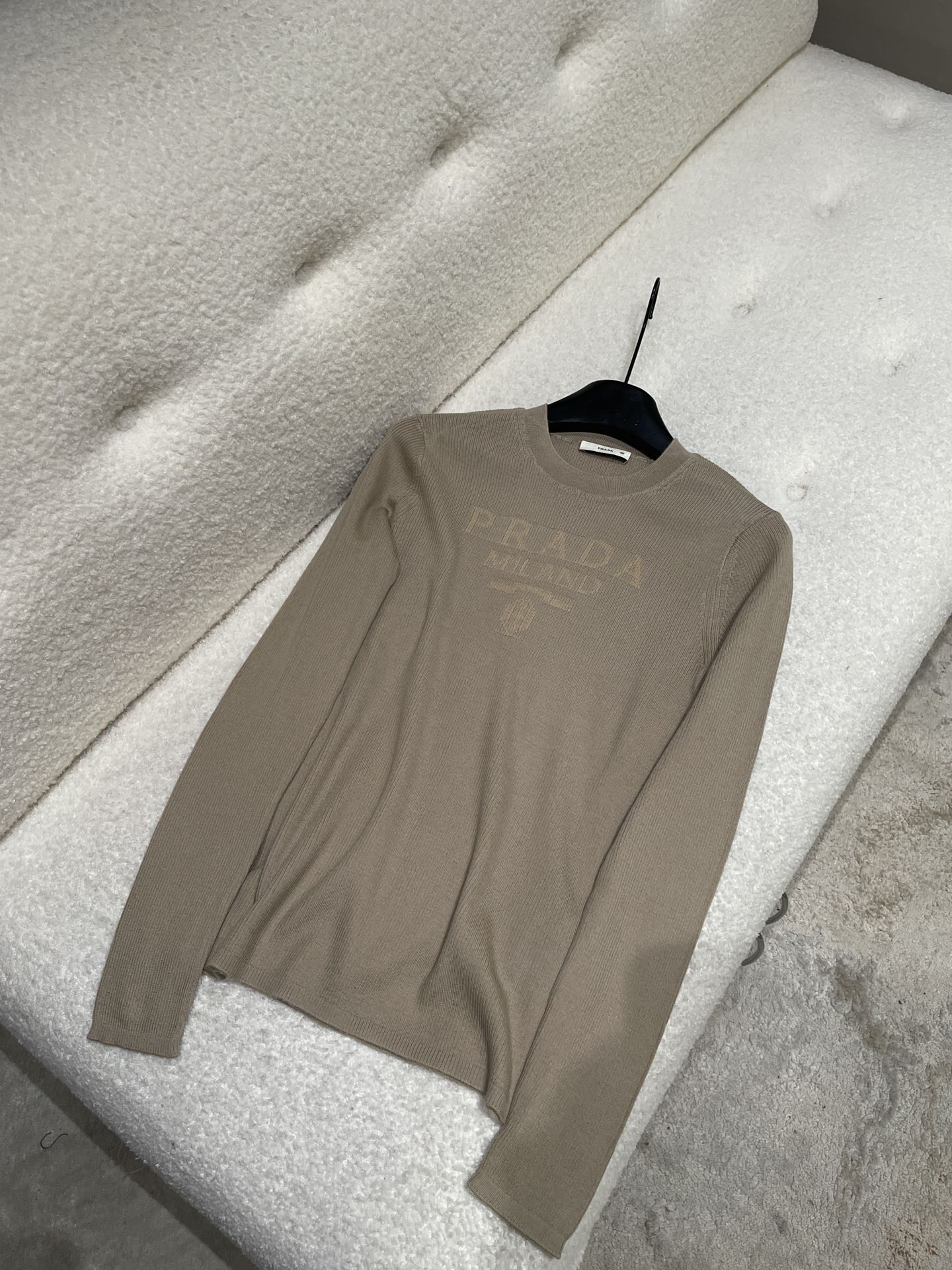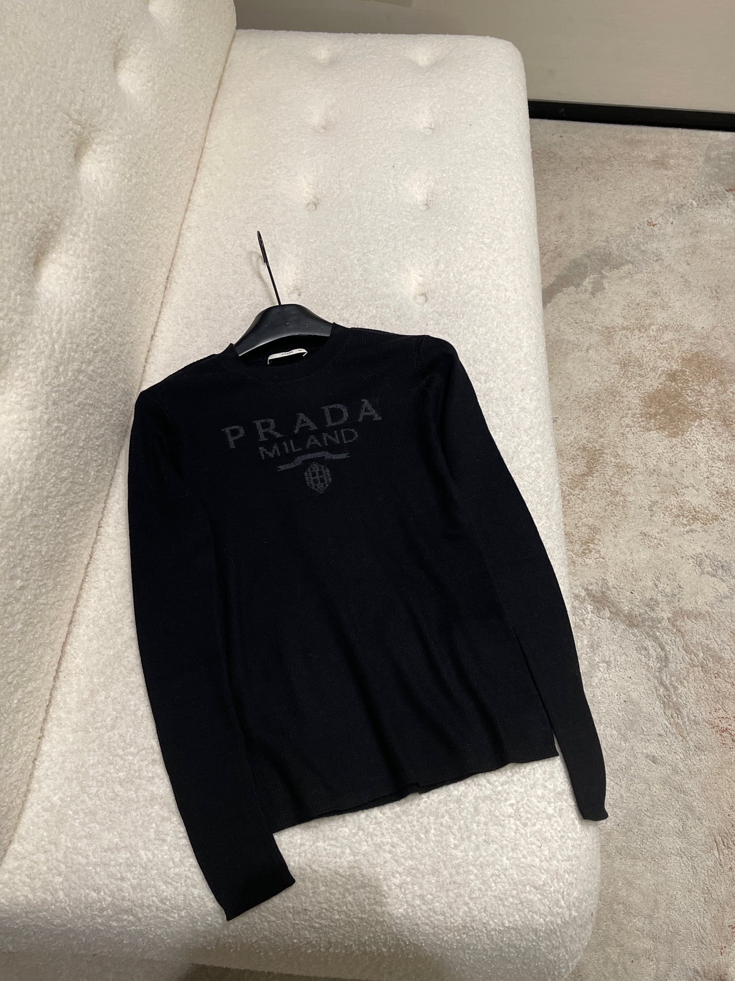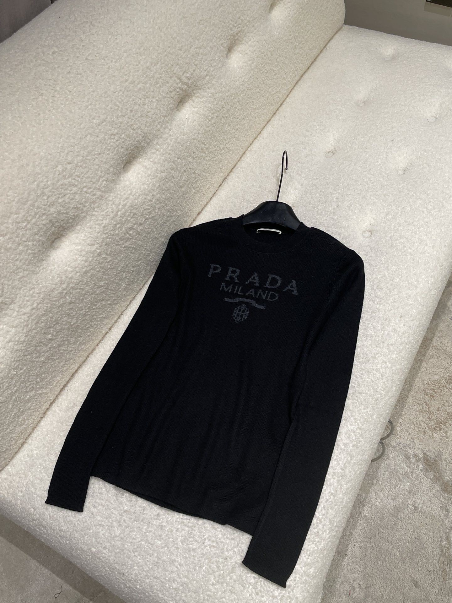 NIGO Prada Women's Spring/Summer Solid Color Monogrammed Wool Crew Neck Long Sleeve Knit Sweater #nigo74413