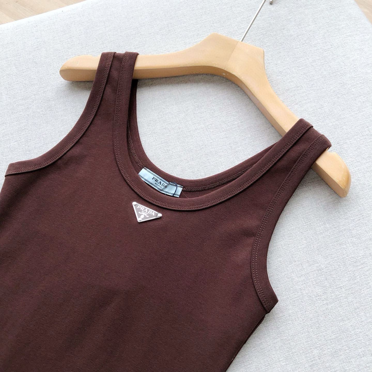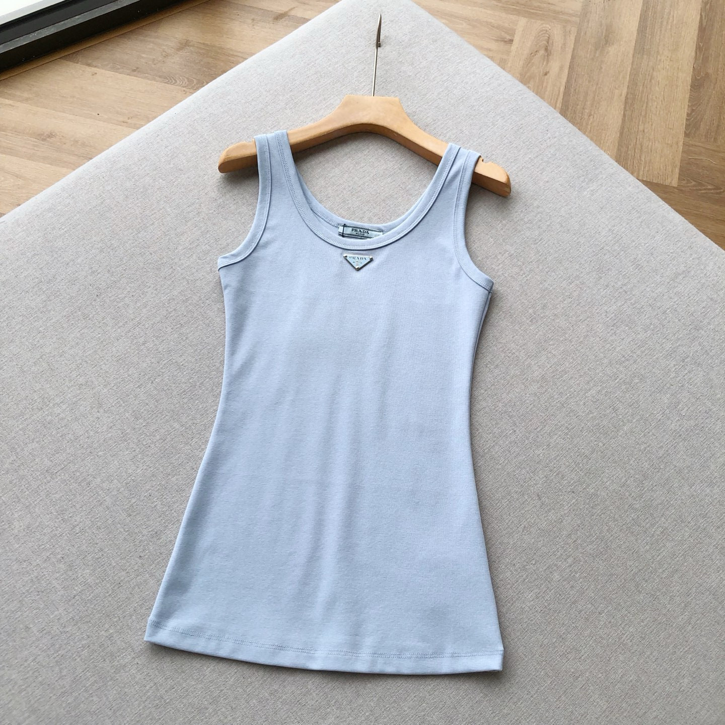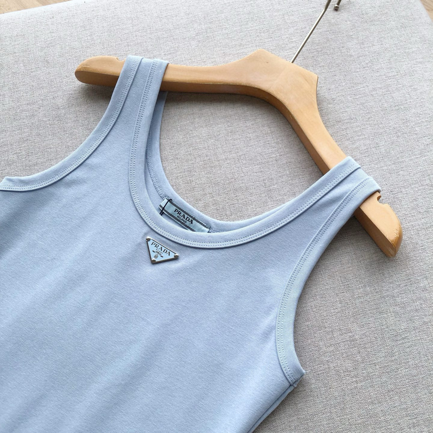 NIGO Prada Women's Summer Solid Color Metal Triangle Logo Logo Cotton Camisole Tank Top #nigo76928