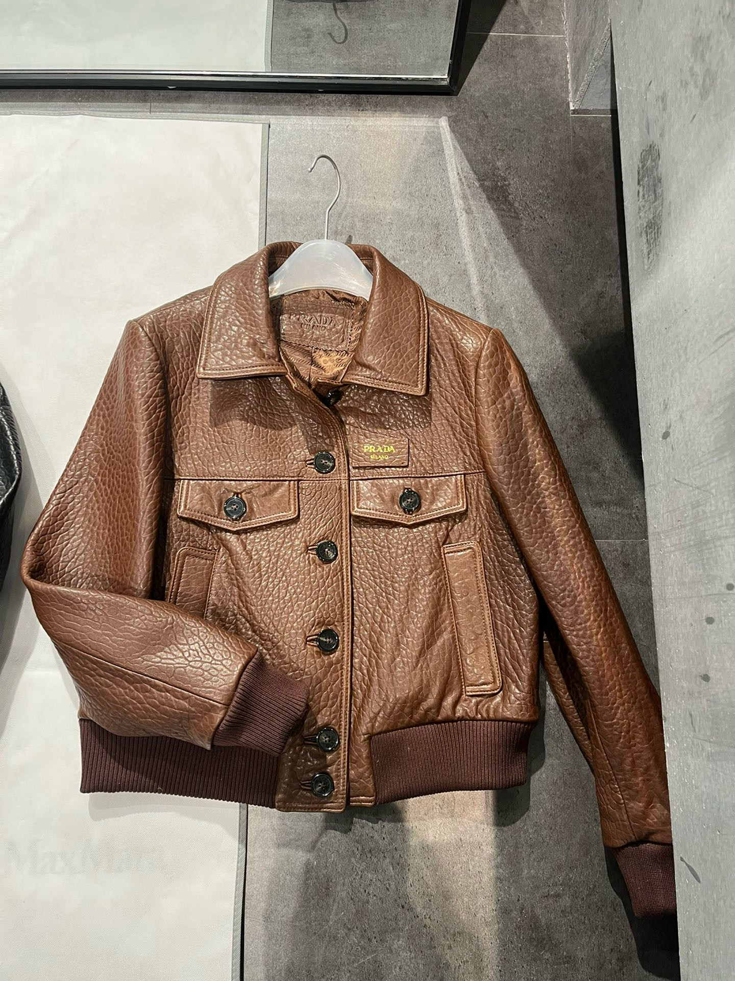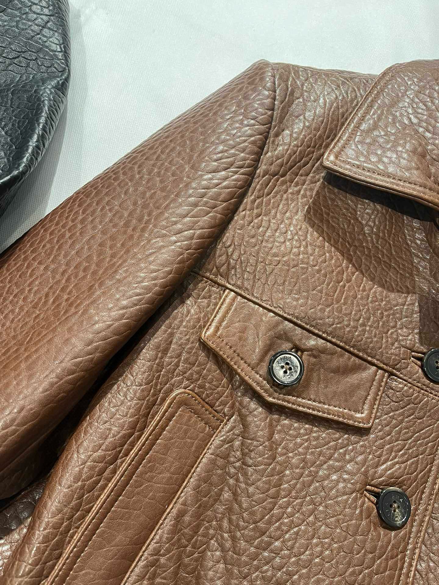 This Prada clothing showcases the brand's exceptional craftsmanship and attention to detail. Crafted from premium lambskin, this piece combines timeless luxury with modern style.