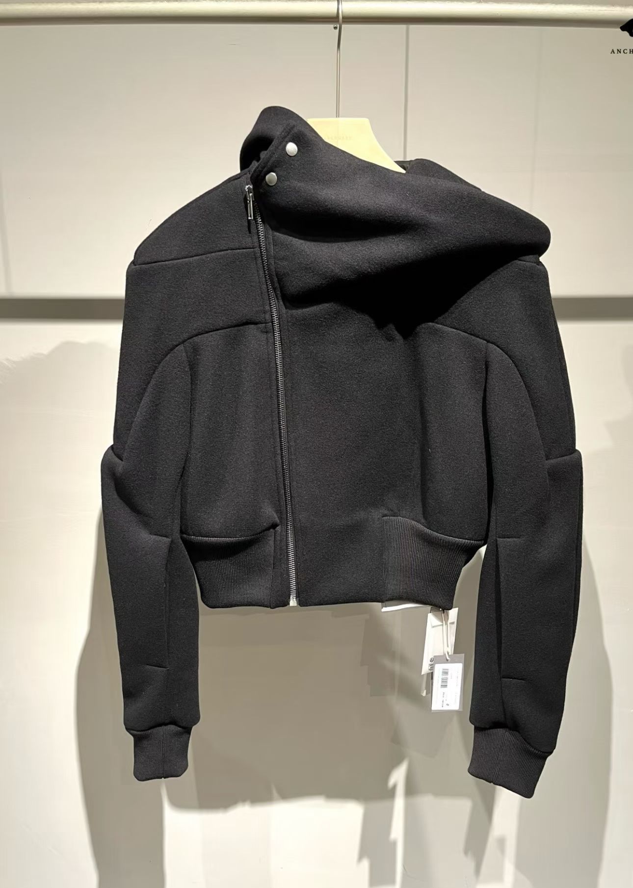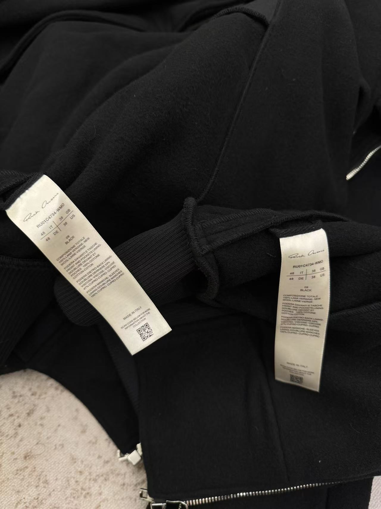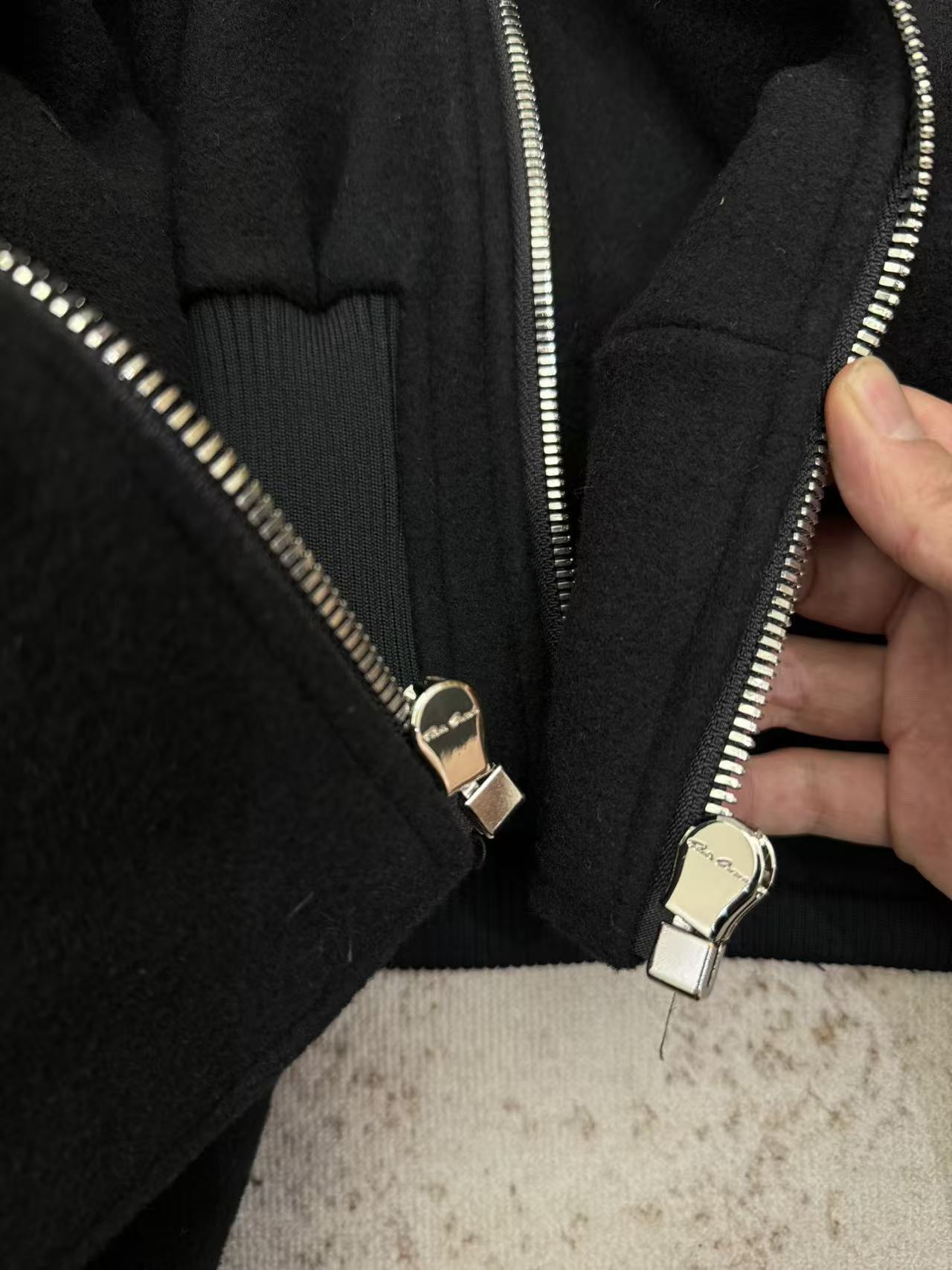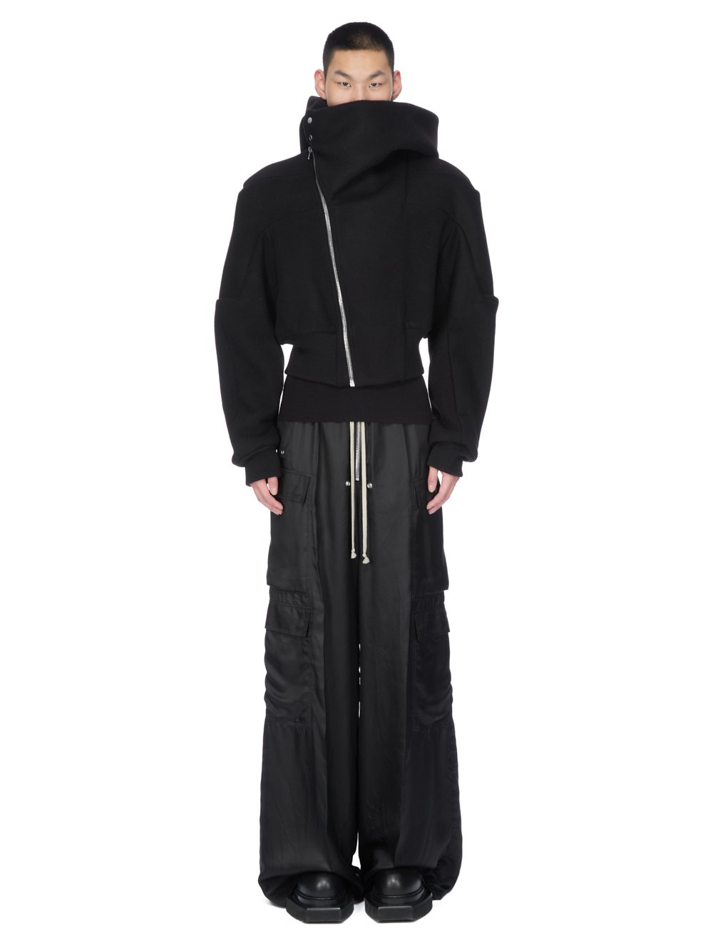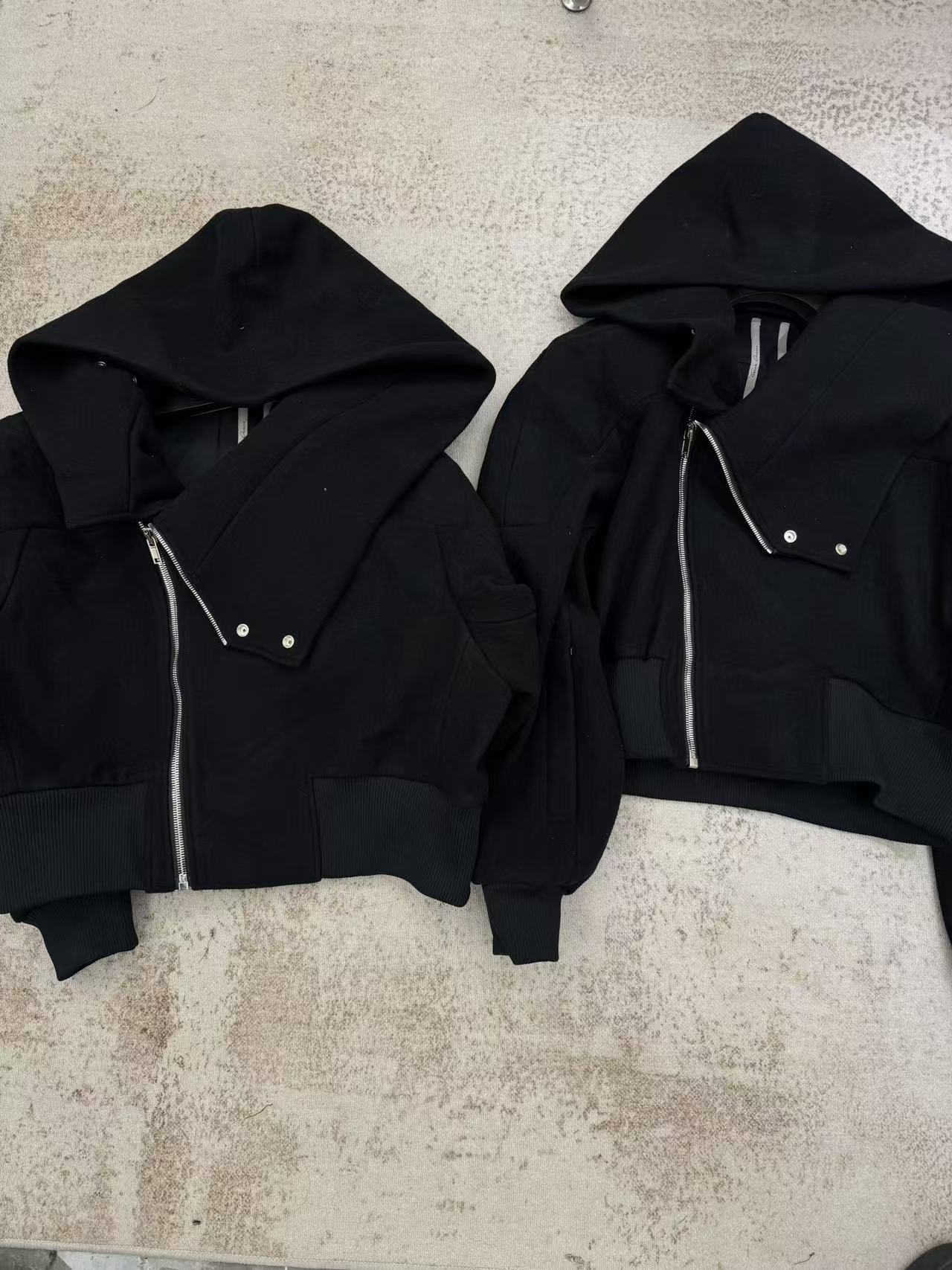 NIGO Rick Owens Cropped Hooded Fligh Jacket Black Virgin Wool Cropped Flight Jacket #nigo332196