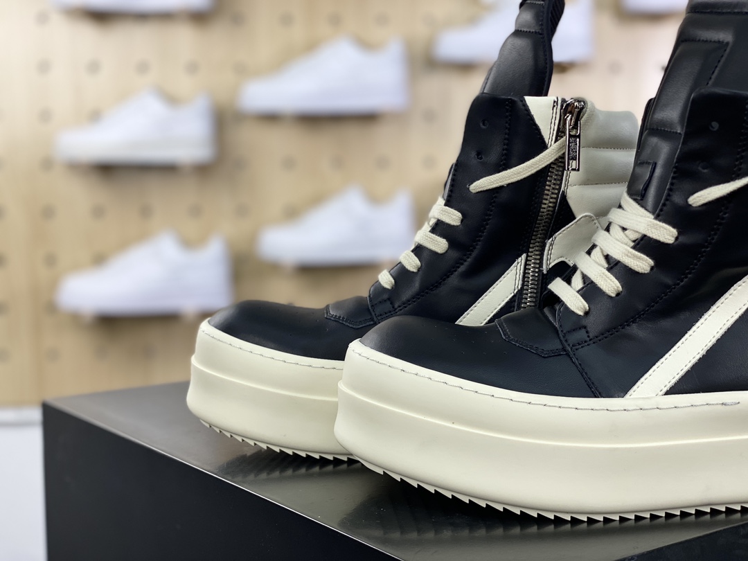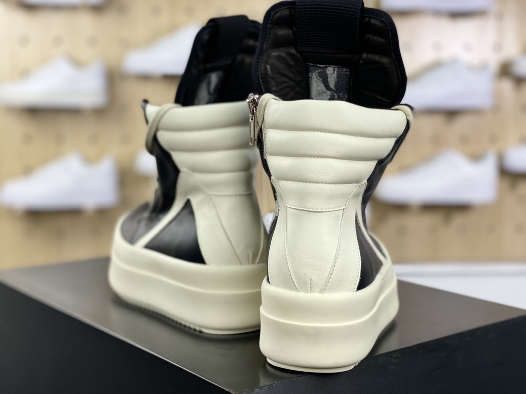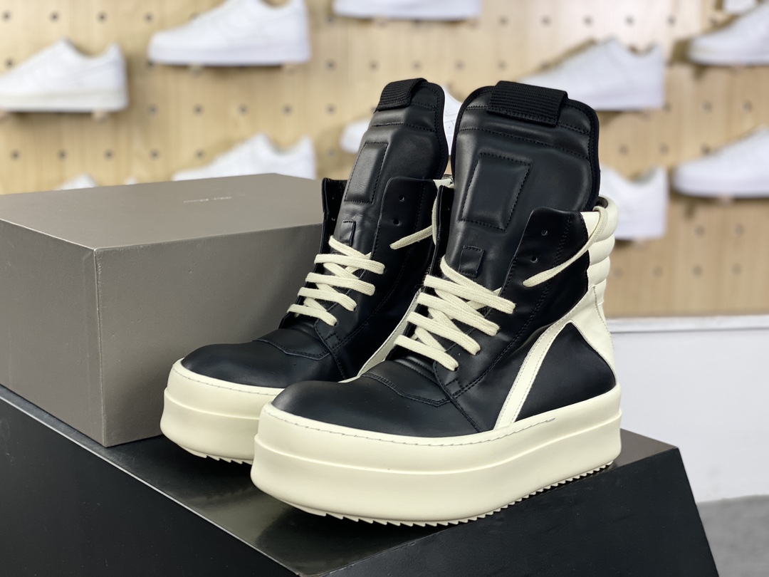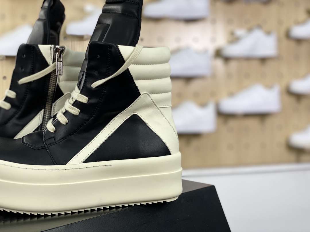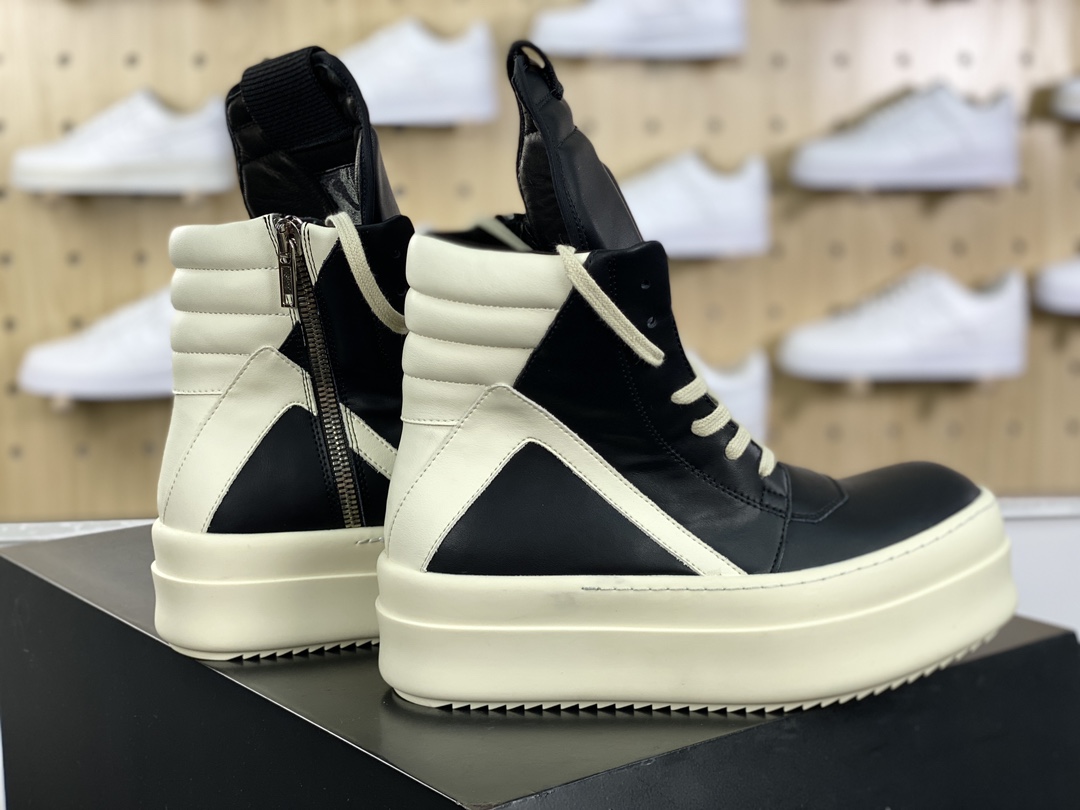 NIGO Rick Owens Men's And Women's Fall And Winter Colorblocking Round Head Overshoes Zipper Lace Up High Top Short Boots Shoes #nigo73914
