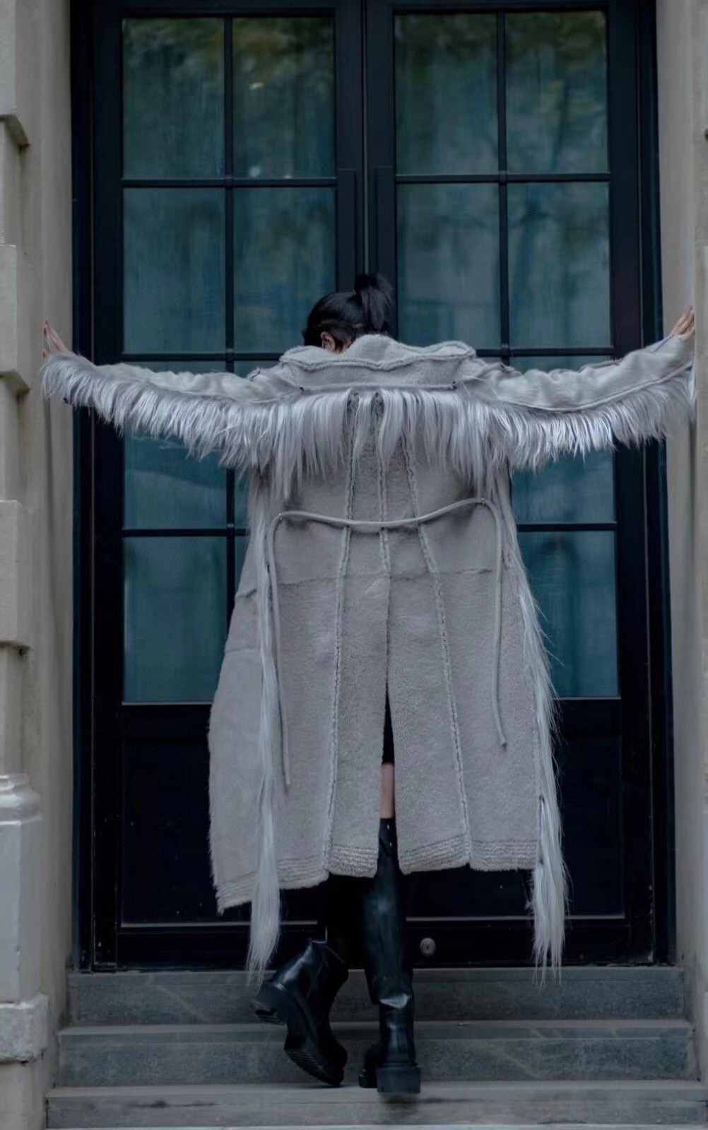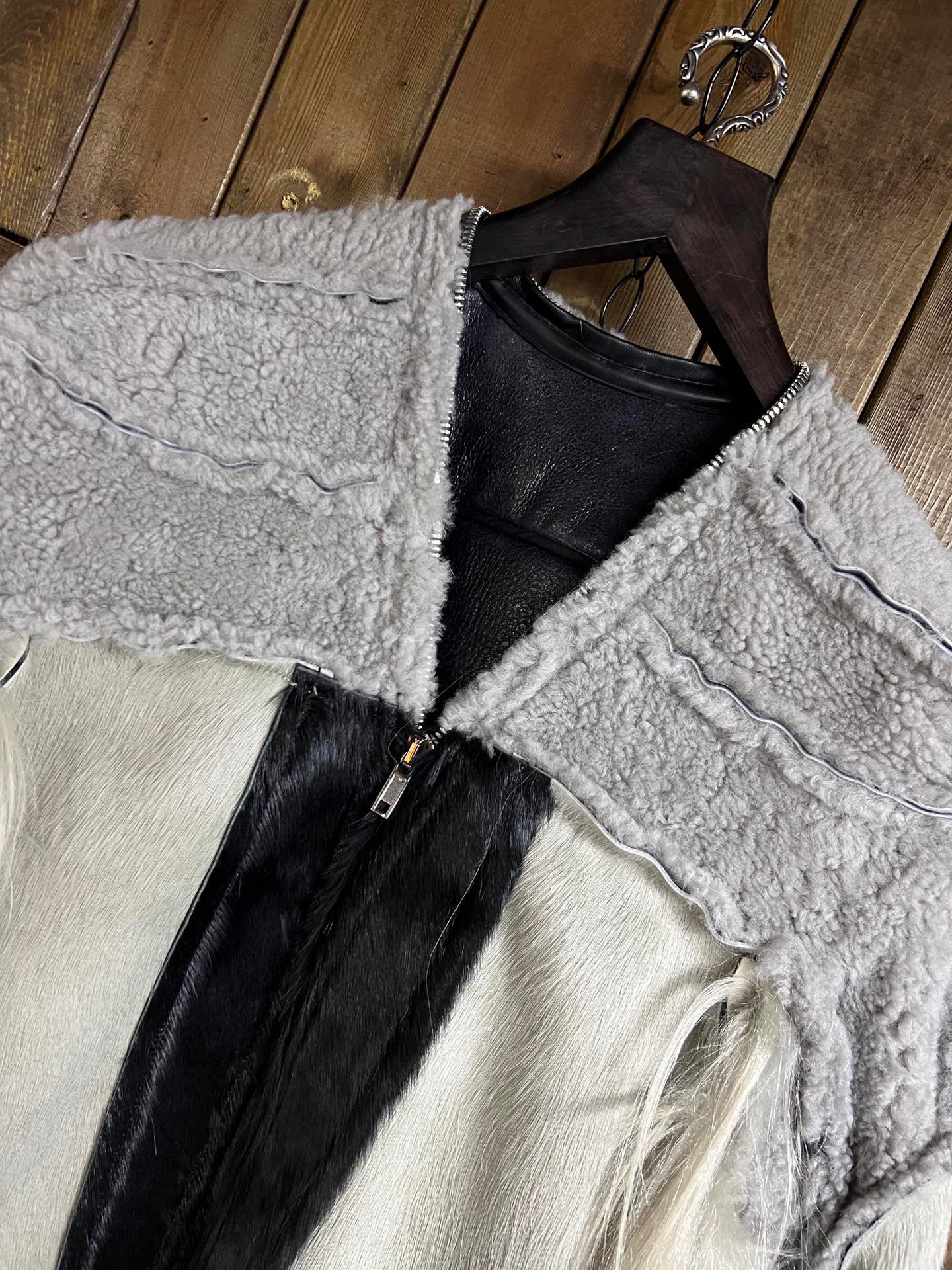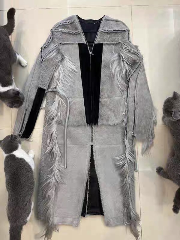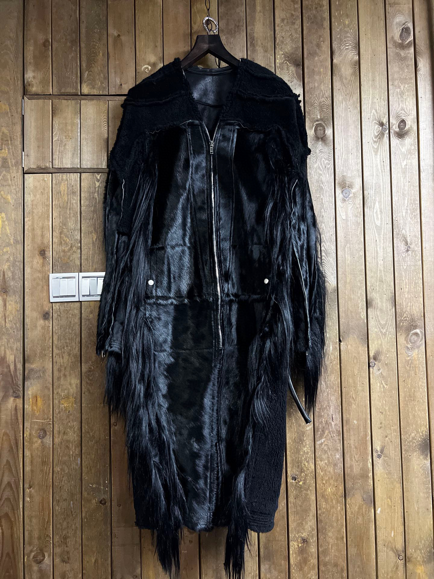 NIGO Rick Owens Men's Autumn And Winter Colorblocking Splicing Zipper Long Loose Fur Coat Ngvp #nigo6964