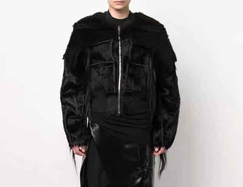 NIGO Rick Owens Men's Autumn And Winter Solid Color Fitted Zipper Short Long Sleeve Fur Jacket Ngvp #nigo6965