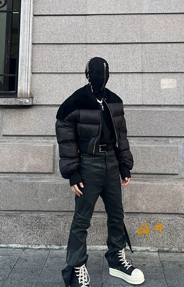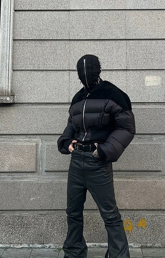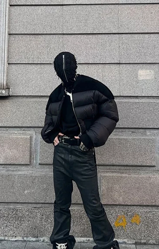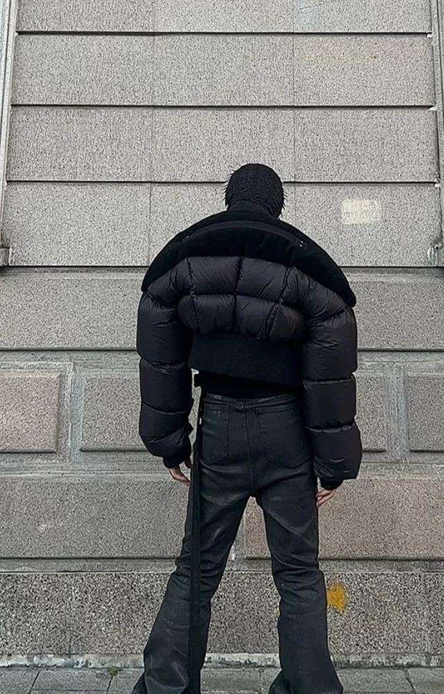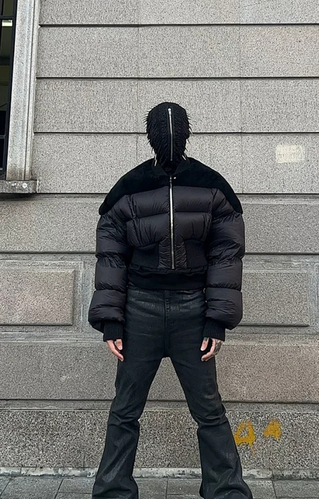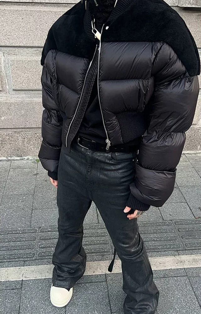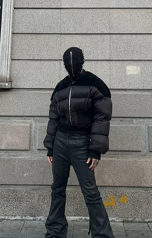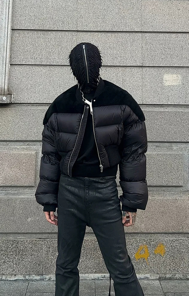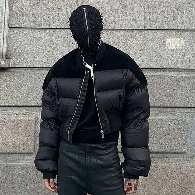 NIGO Rick Owens Men's Dark Style Short Splicing Puffer Down Jacket Autumn And Winter Solid Color Zipper Collarless Jacket #nigo81336