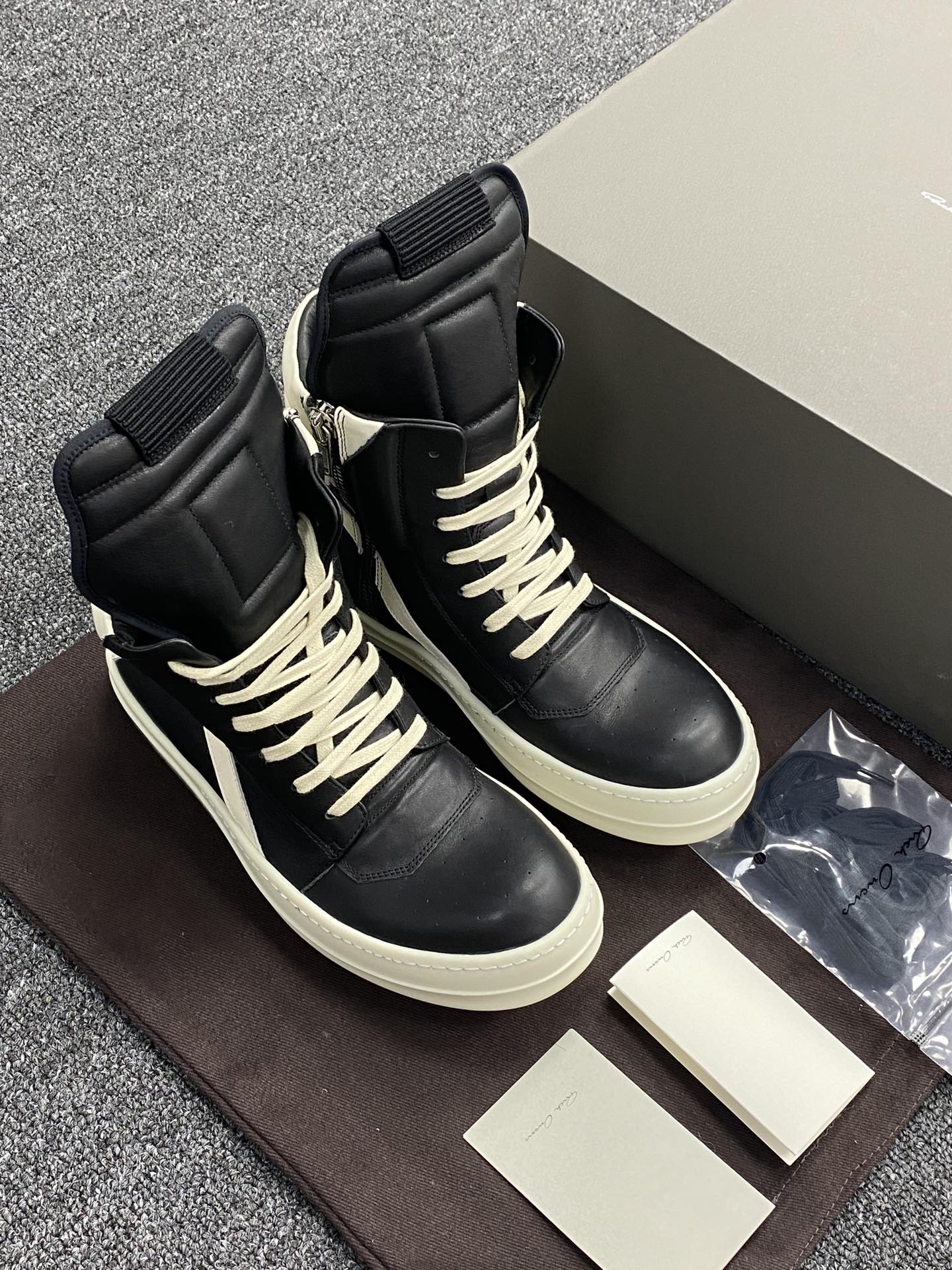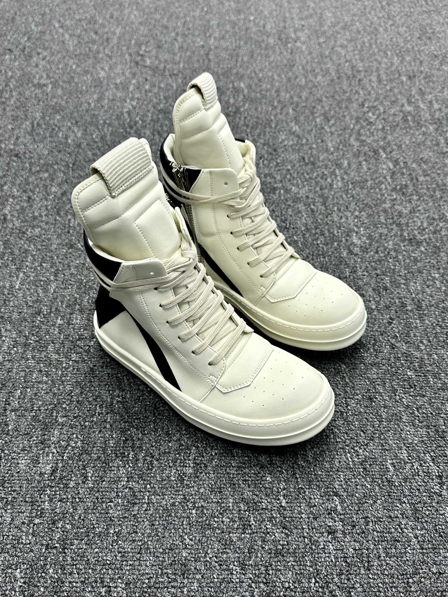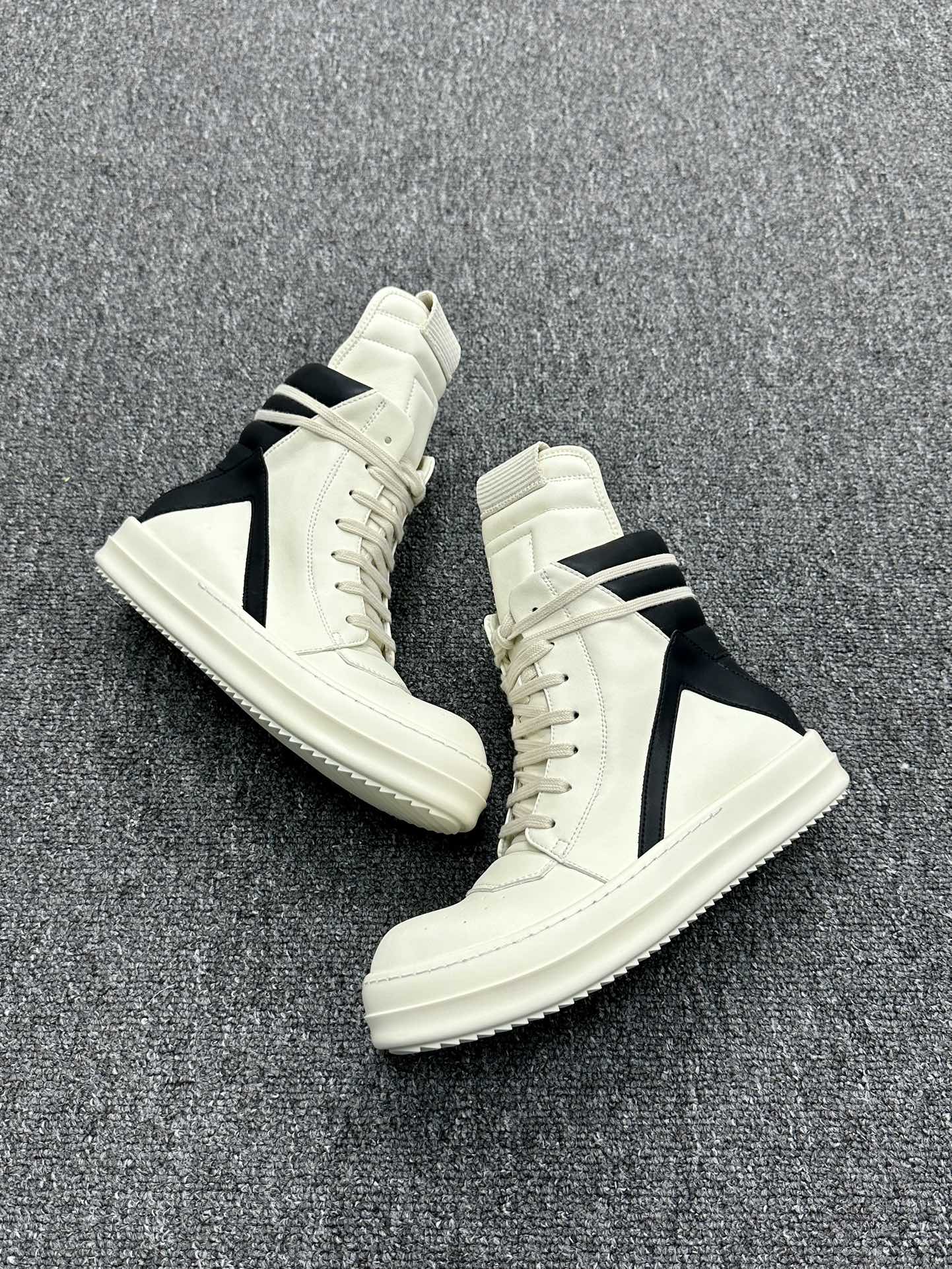 NIGO Rick Owens Men's Four Seasons Black And White Color Matching Inverted Triangle Calf Leather Fashion Comfortable Round Head Casual Plate Shoes #nigo71463